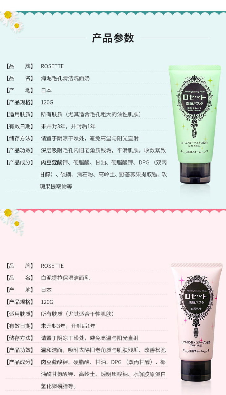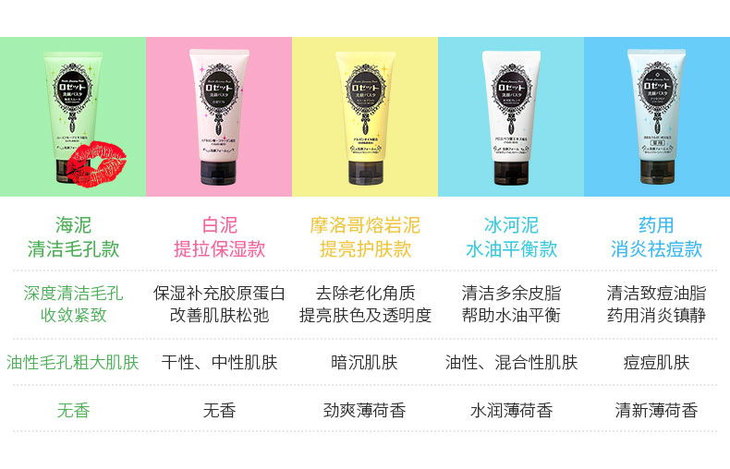 日本ROSETTE海泥洗面奶系列-绿色/黄色/粉色/蓝色/白色-120g新旧版本随机发货