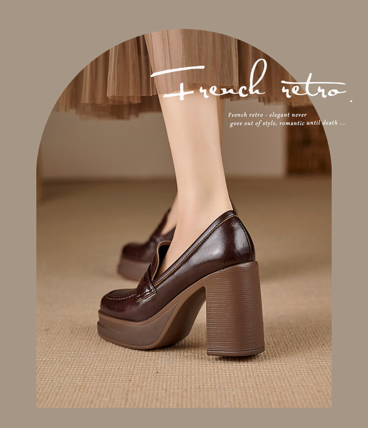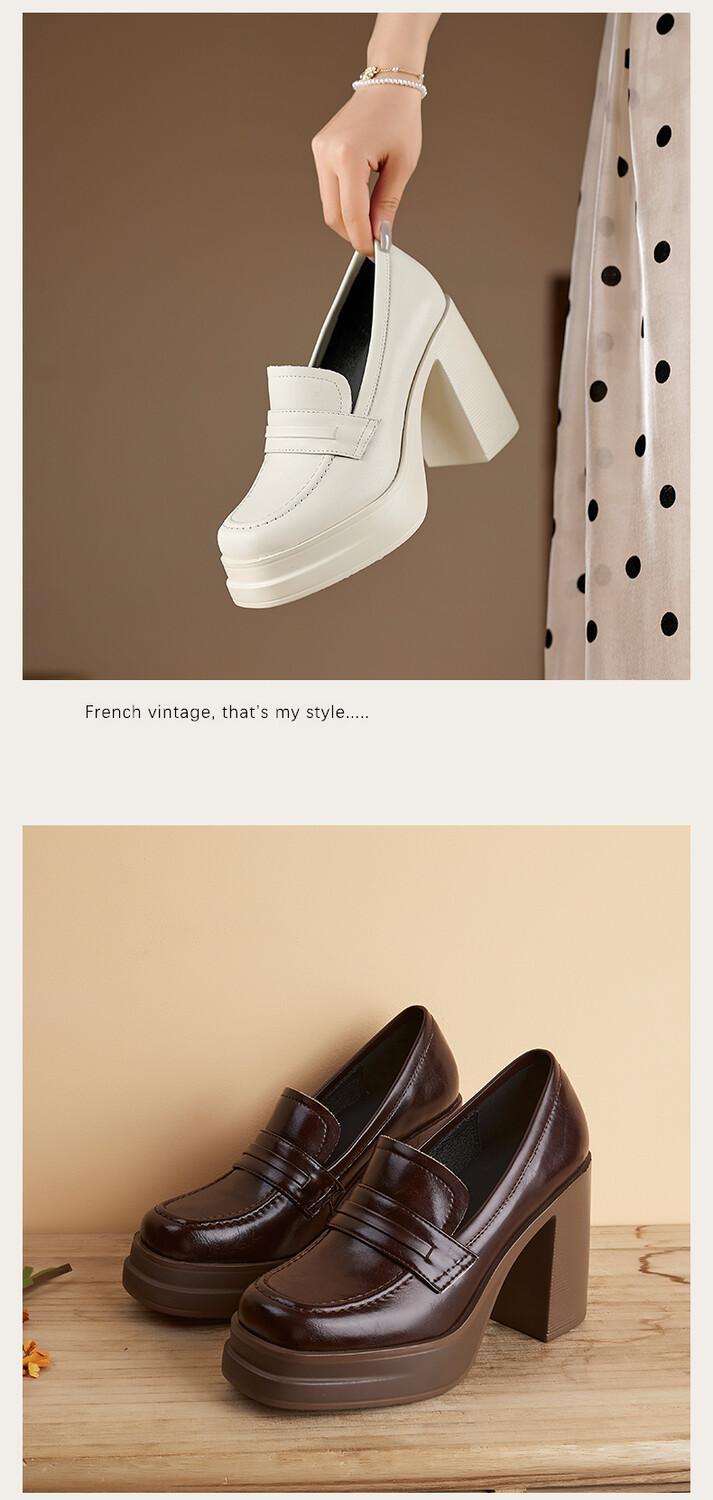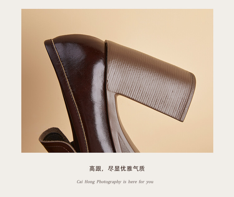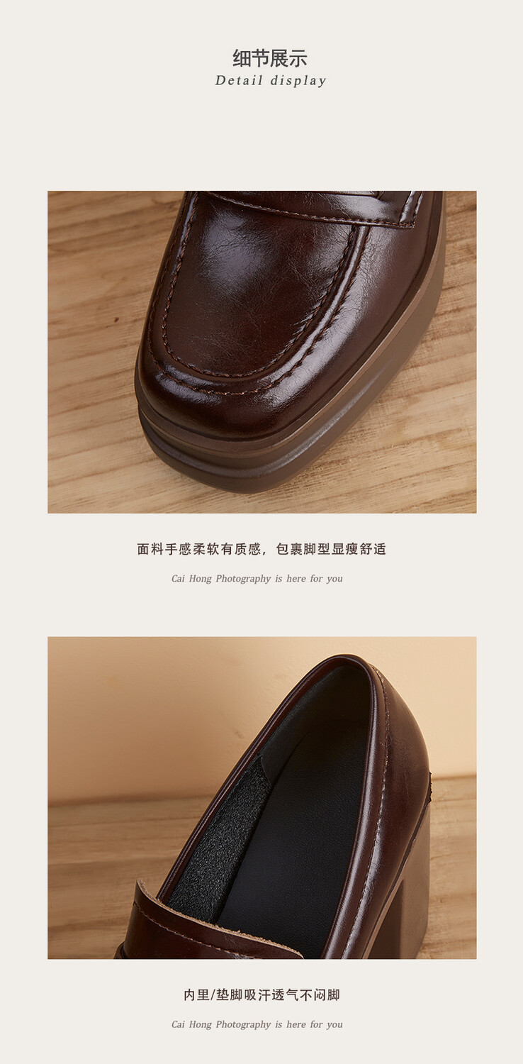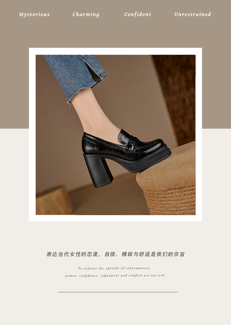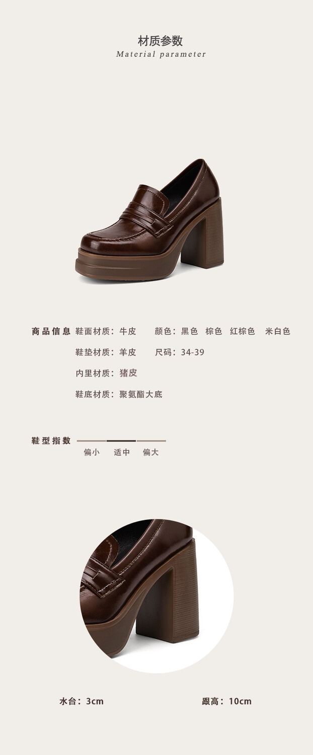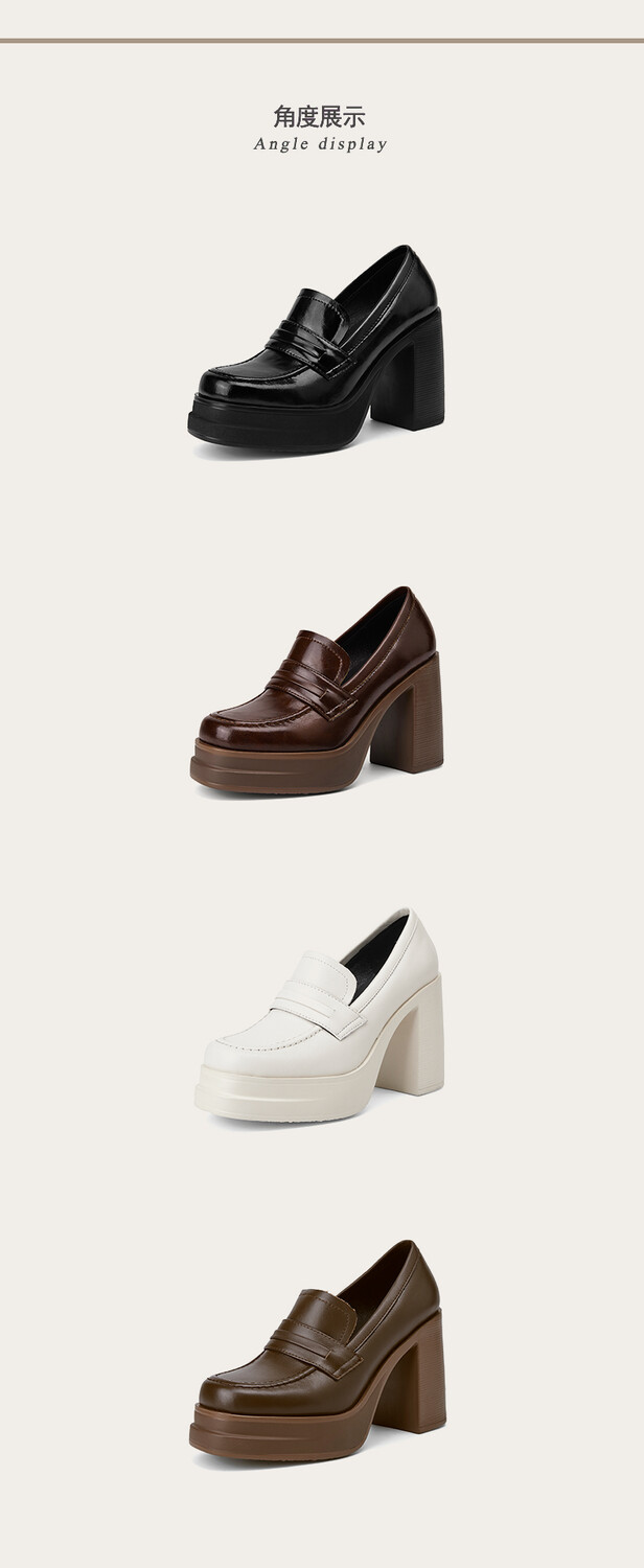 【预售5天】粗跟高跟鞋复古10cm小个子增高单鞋春秋新款真皮防水台女鞋子MQE&G85-1
