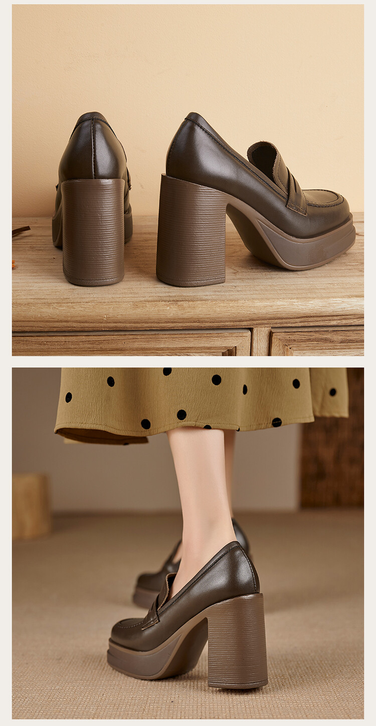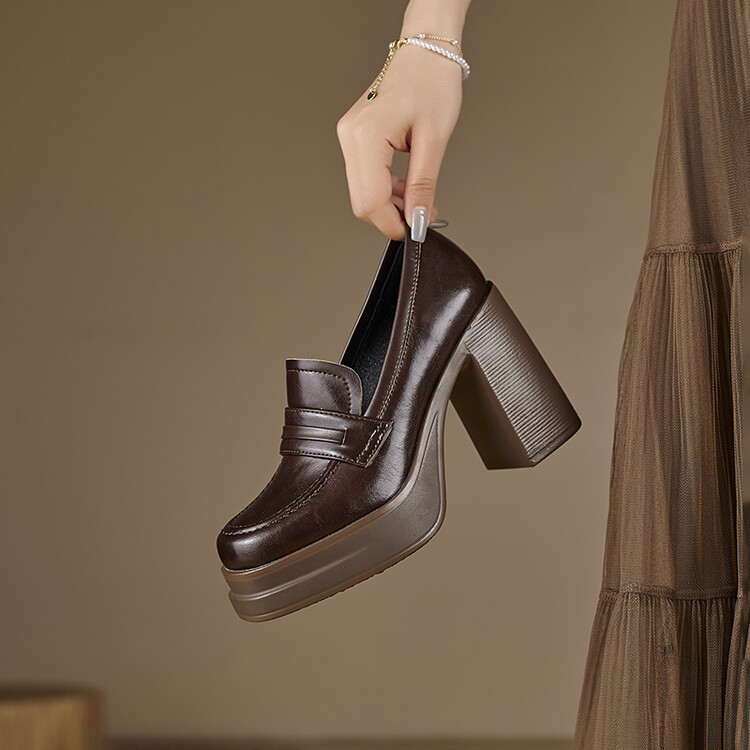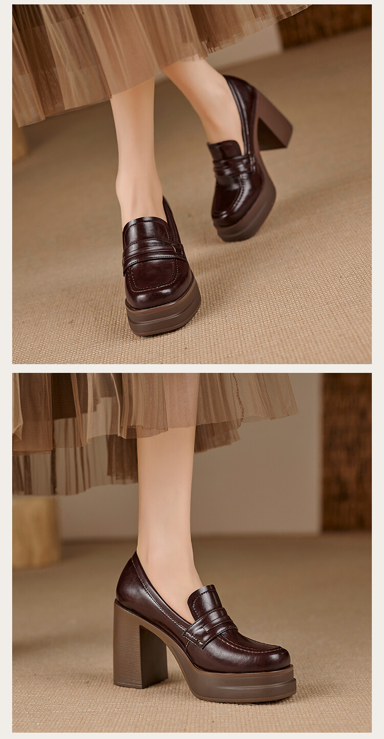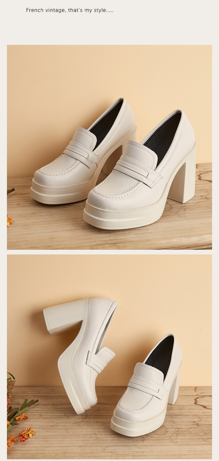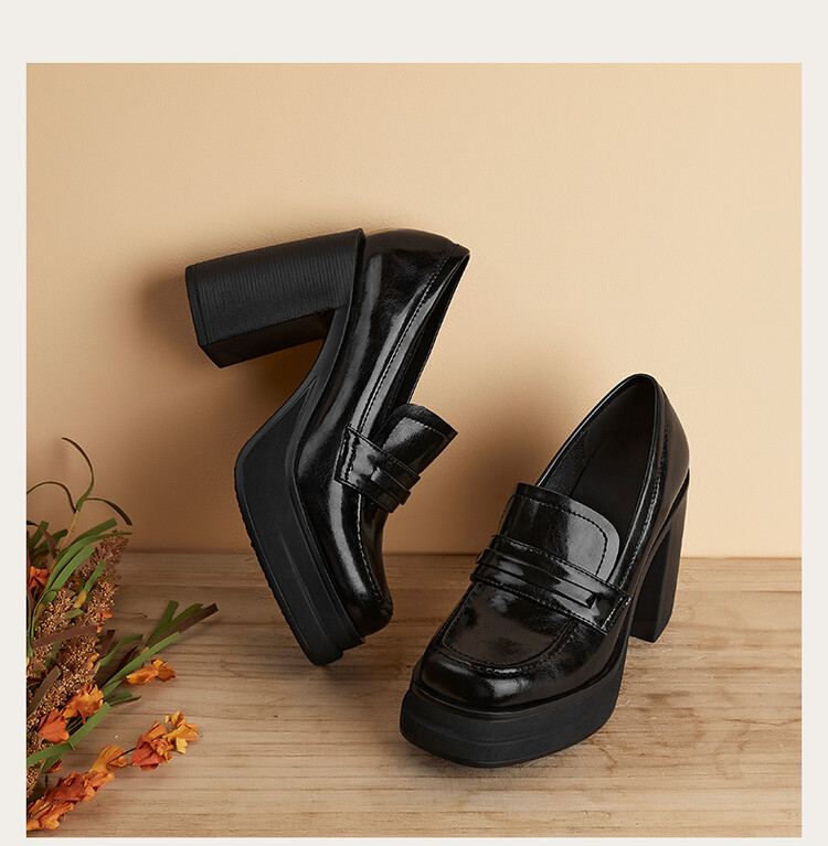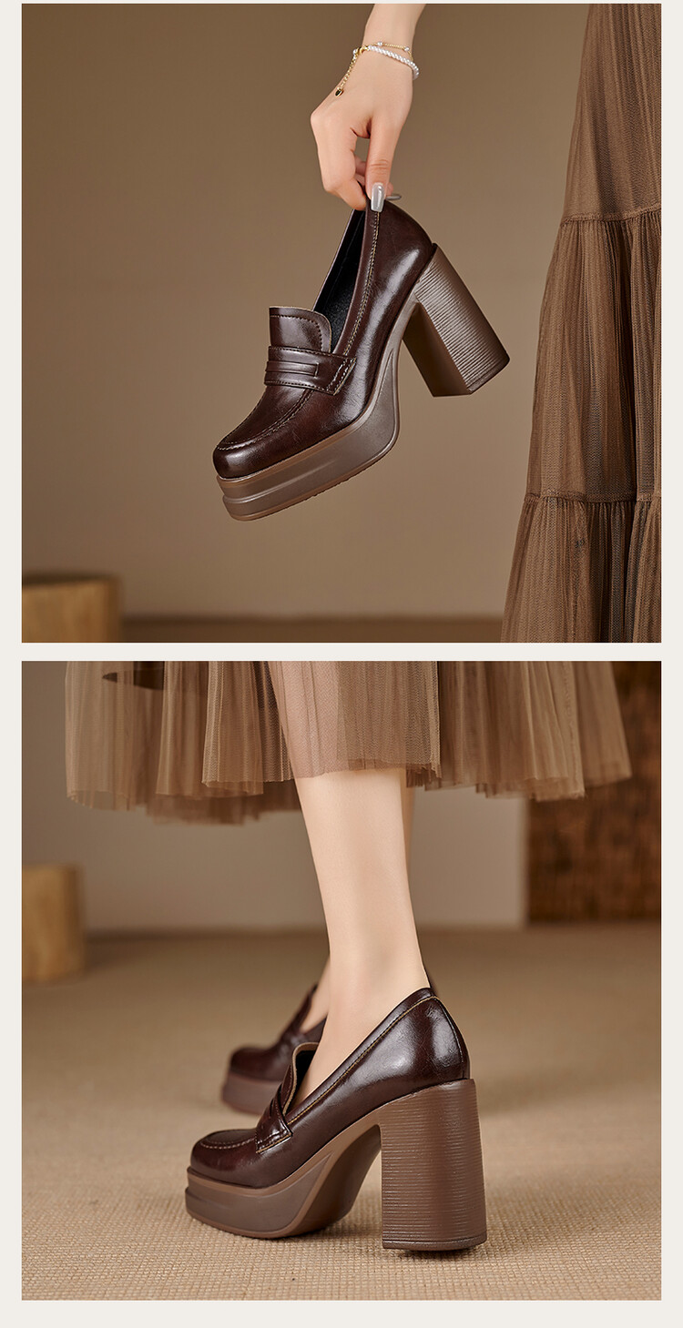 【预售5天】粗跟高跟鞋复古10cm小个子增高单鞋春秋新款真皮防水台女鞋子MQE&G85-1