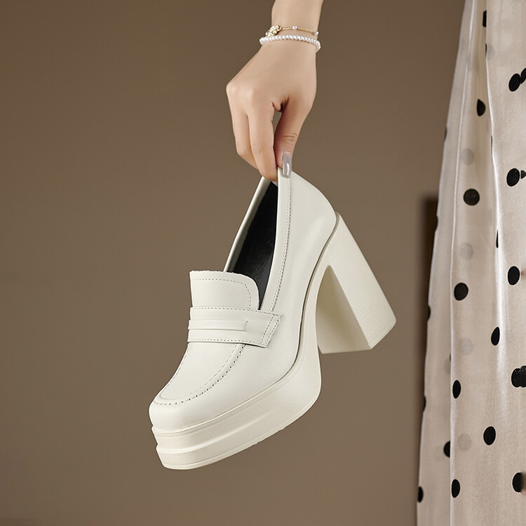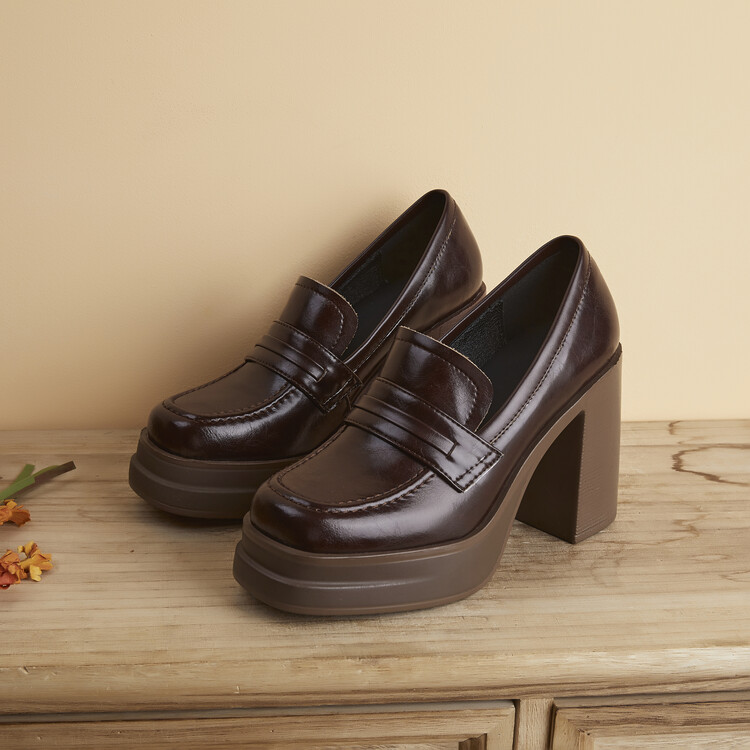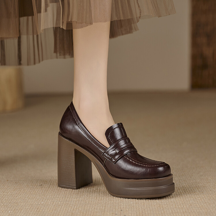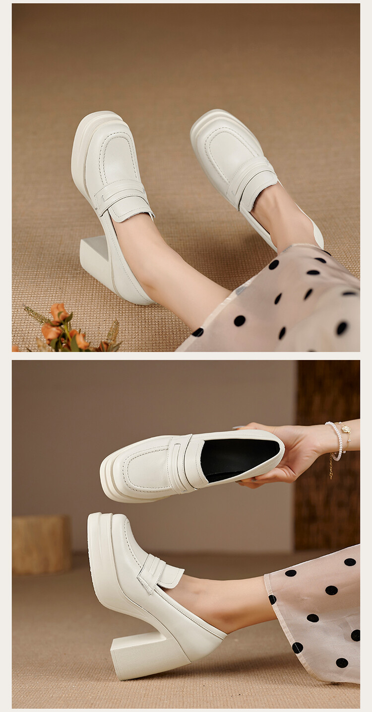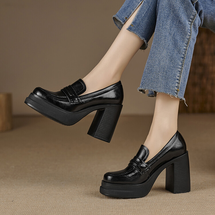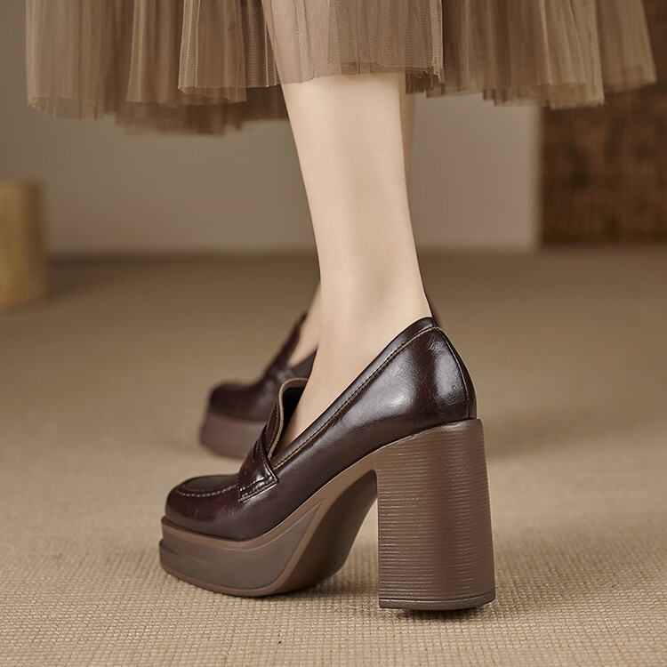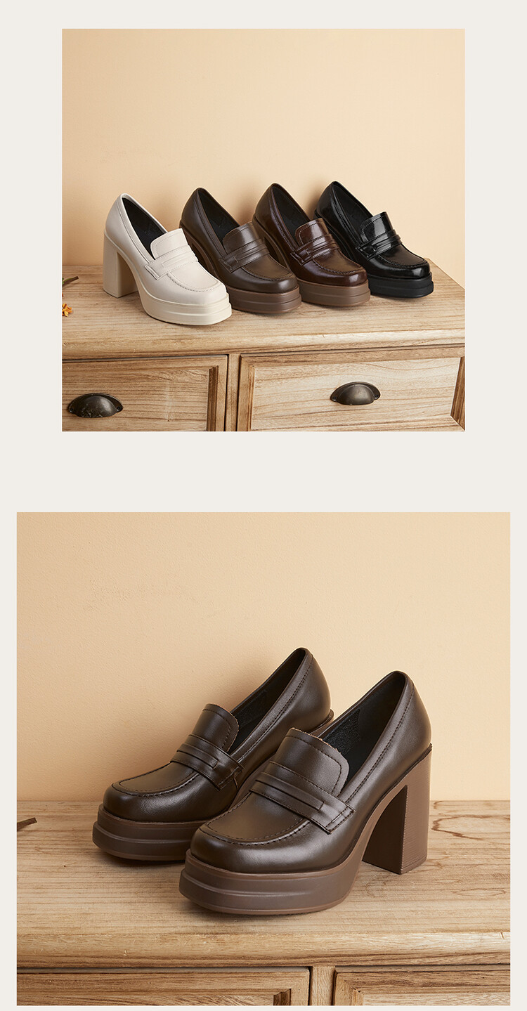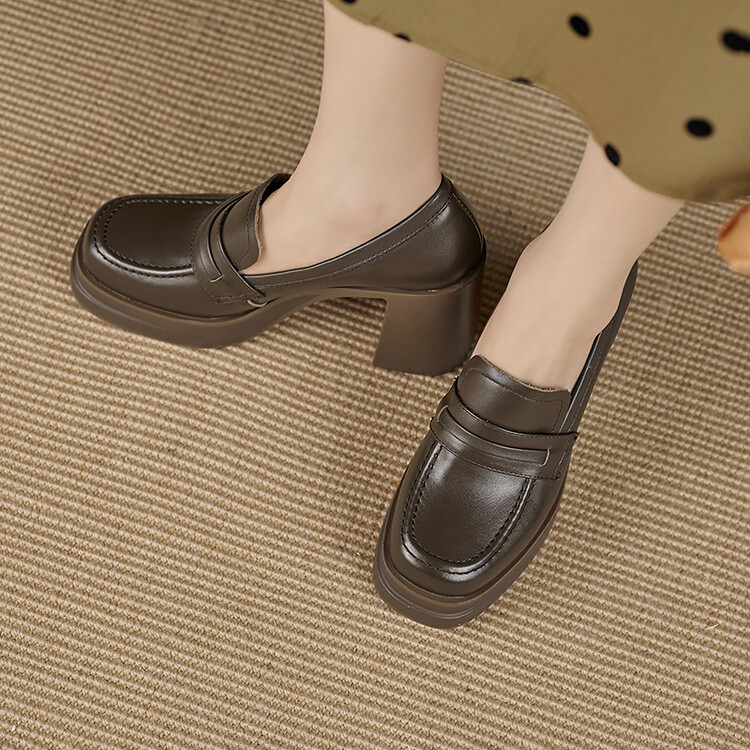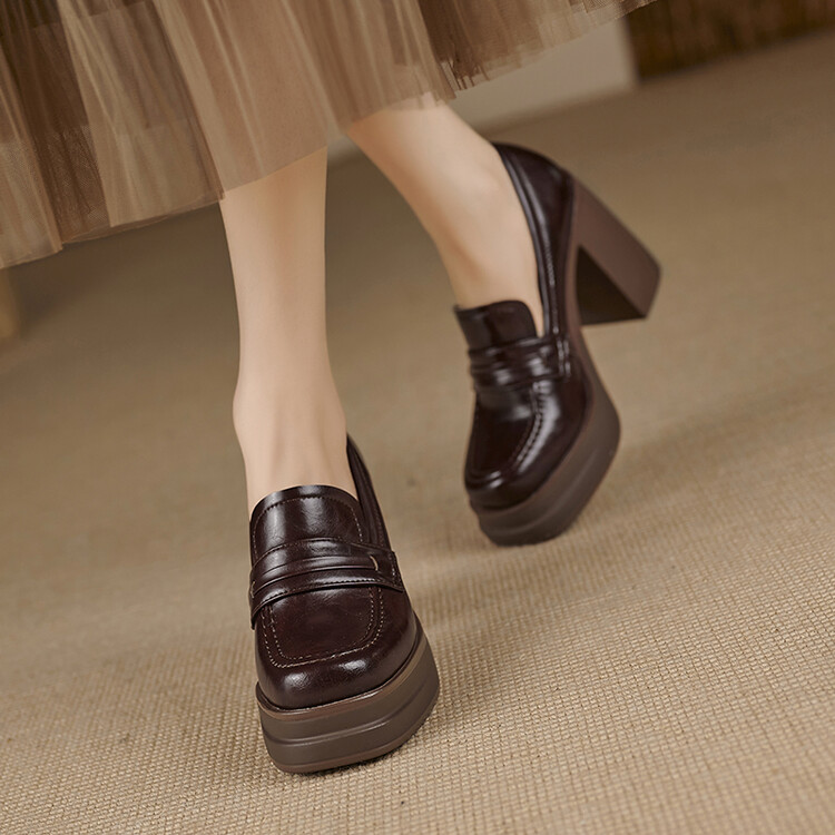 【预售5天】粗跟高跟鞋复古10cm小个子增高单鞋春秋新款真皮防水台女鞋子MQE&G85-1