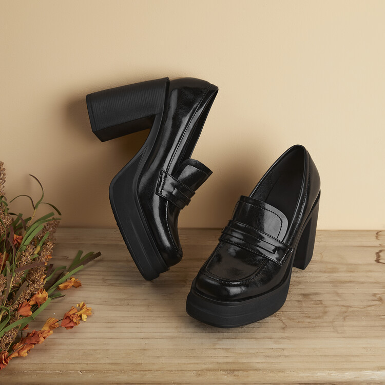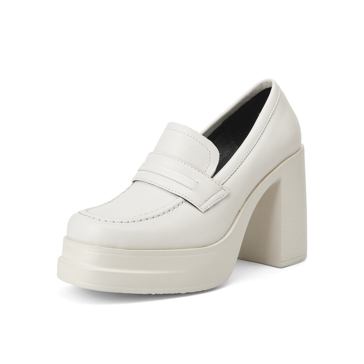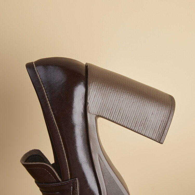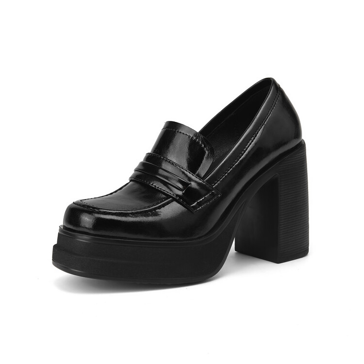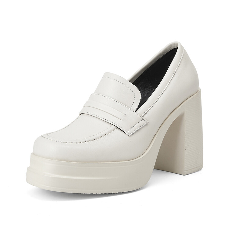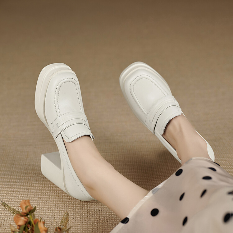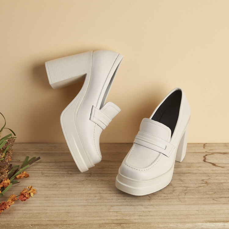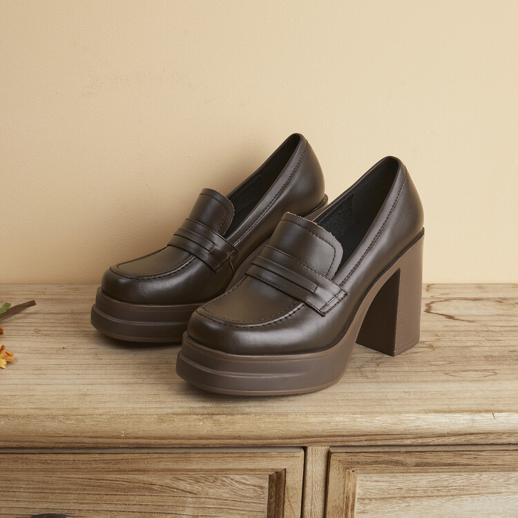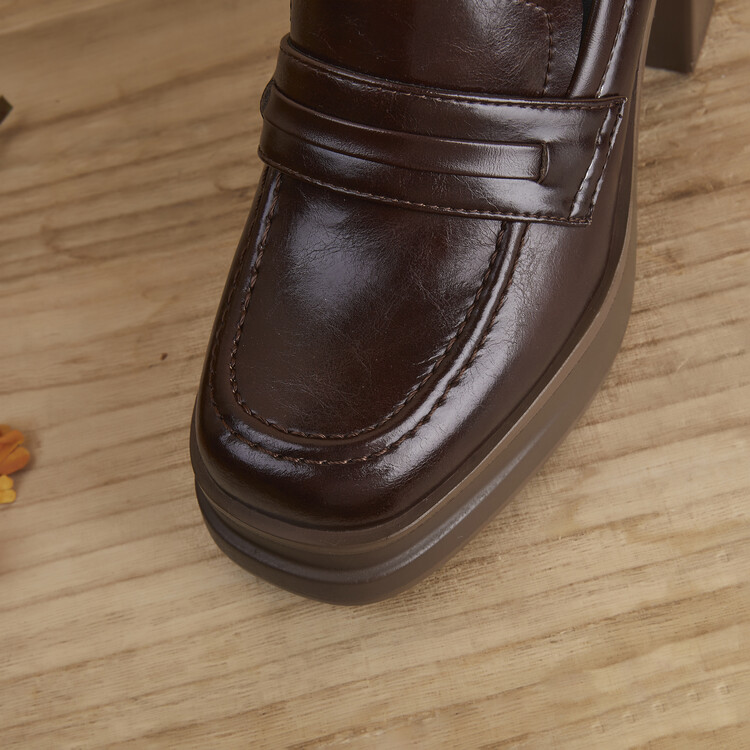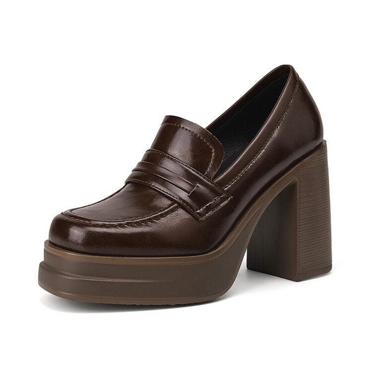 【预售5天】粗跟高跟鞋复古10cm小个子增高单鞋春秋新款真皮防水台女鞋子MQE&G85-1