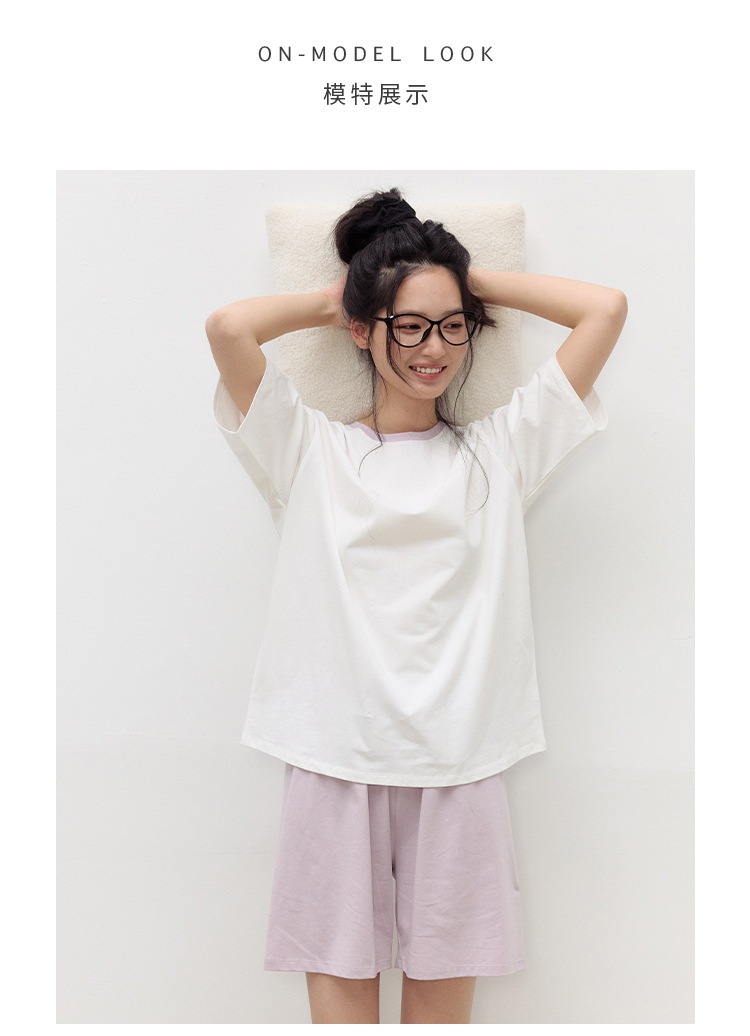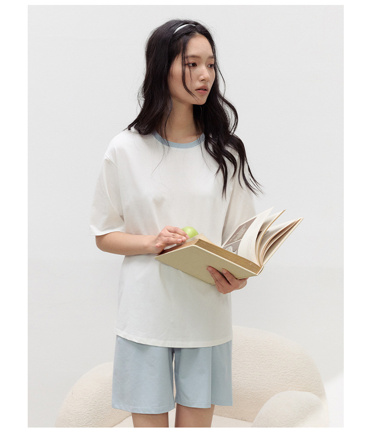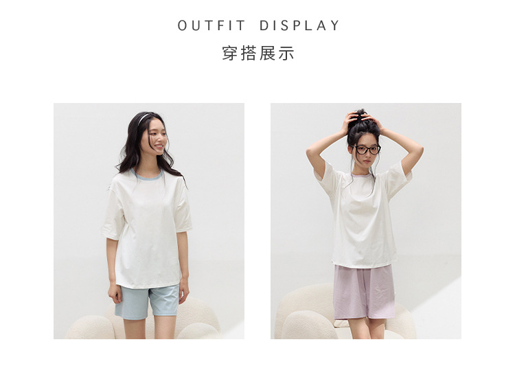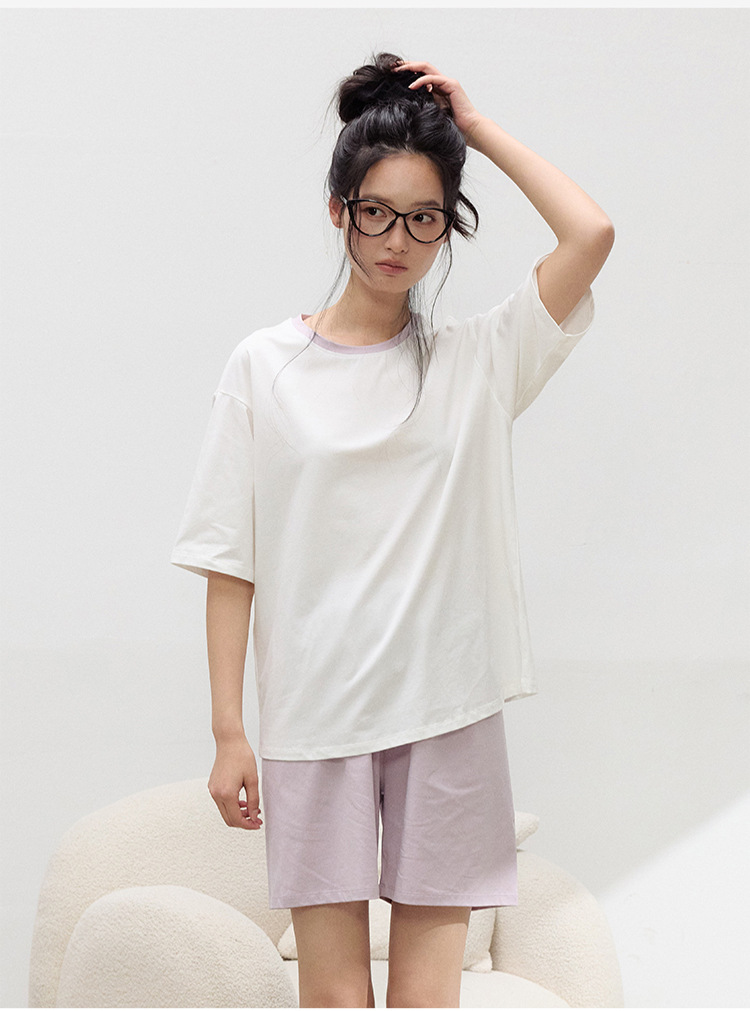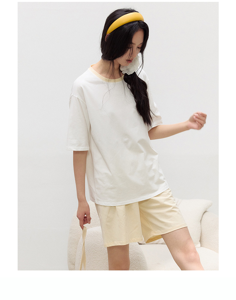 【2026夏季新品】棉柔・撞色家居服套装 可外穿棉睡衣女春夏套头亲肤舒适 简约短袖短裤套装
