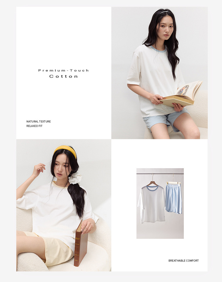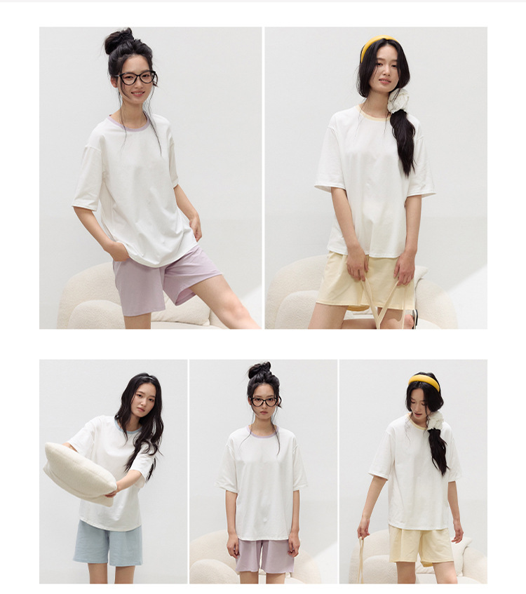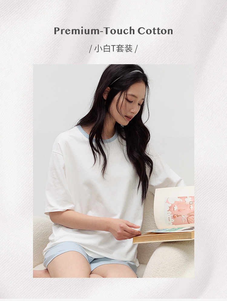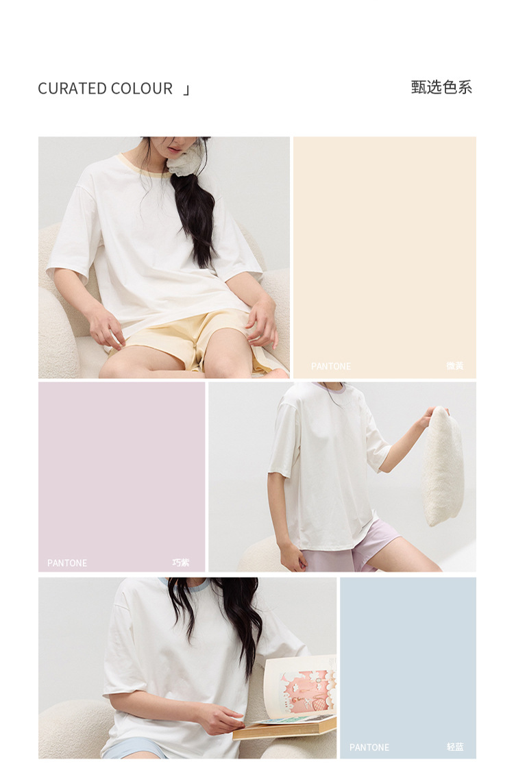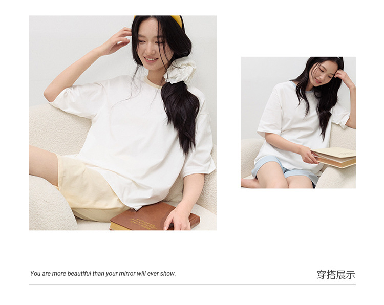 【2026夏季新品】棉柔・撞色家居服套装 可外穿棉睡衣女春夏套头亲肤舒适 简约短袖短裤套装