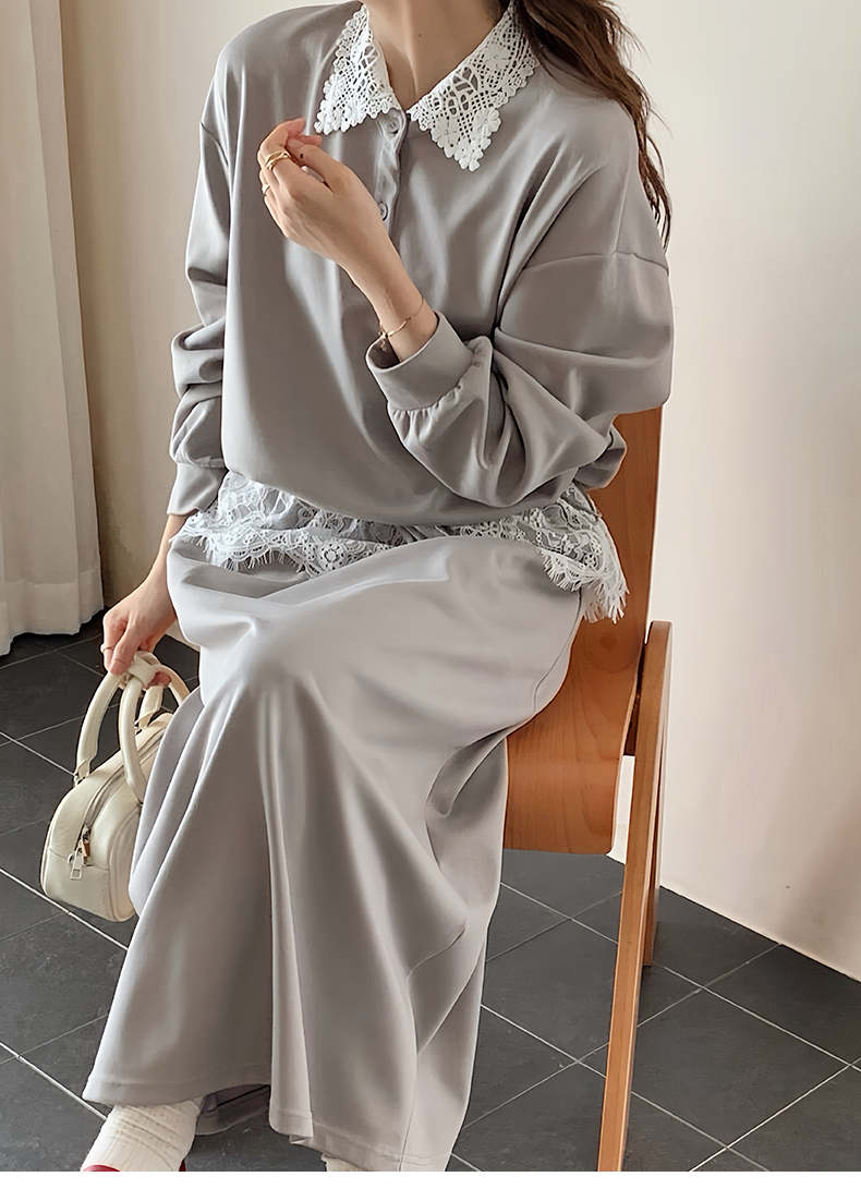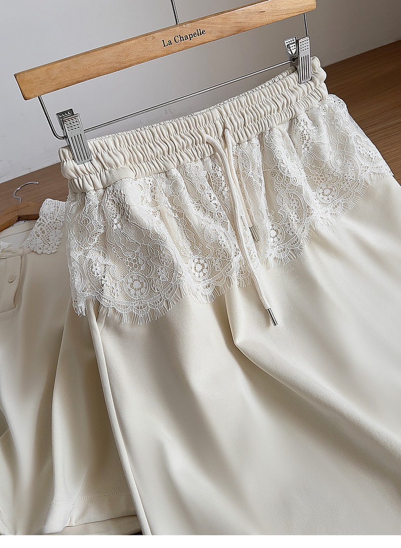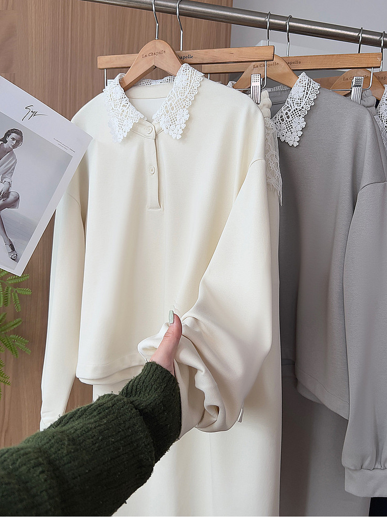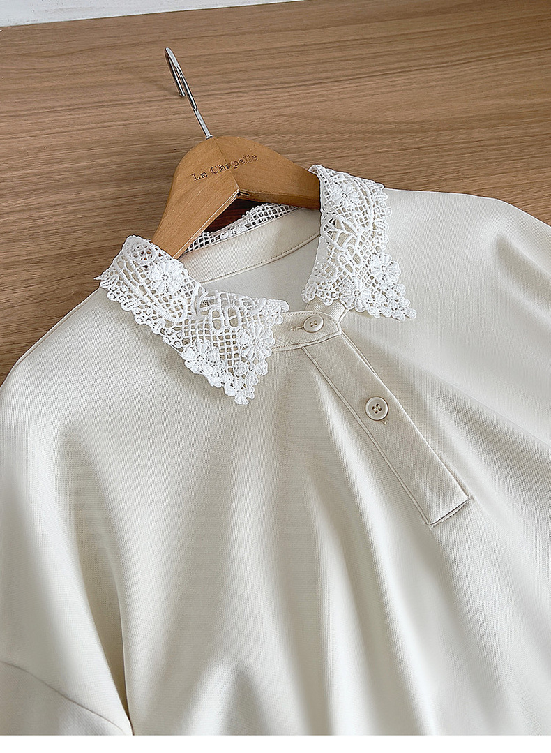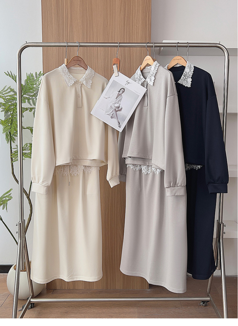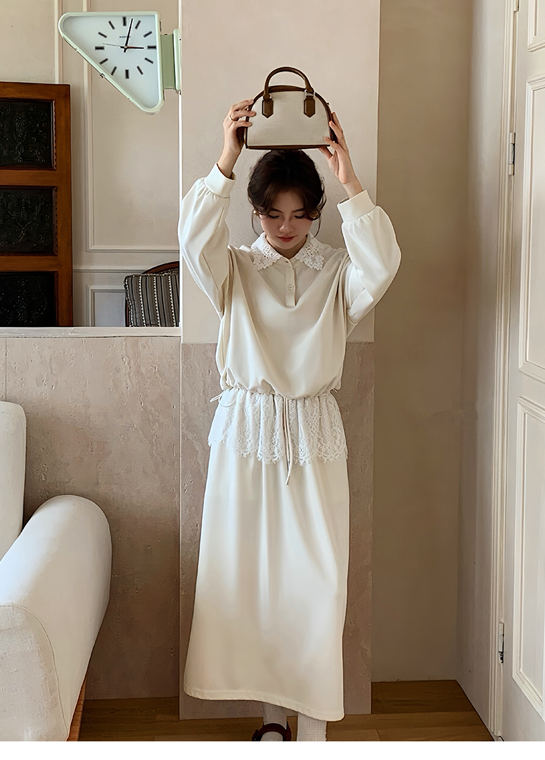 专柜实拍【卫衣+半裙!两件】拉夏贝尔/La Chapelle高知穿搭!蕾丝翻领卫衣/松紧抽绳蕾丝拼接半裙减龄套装