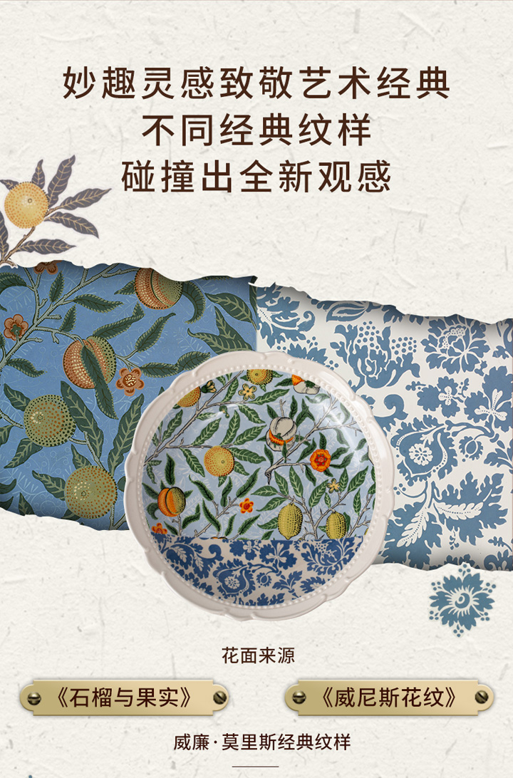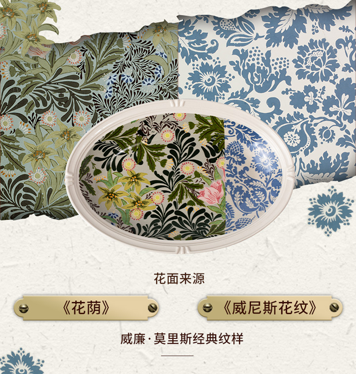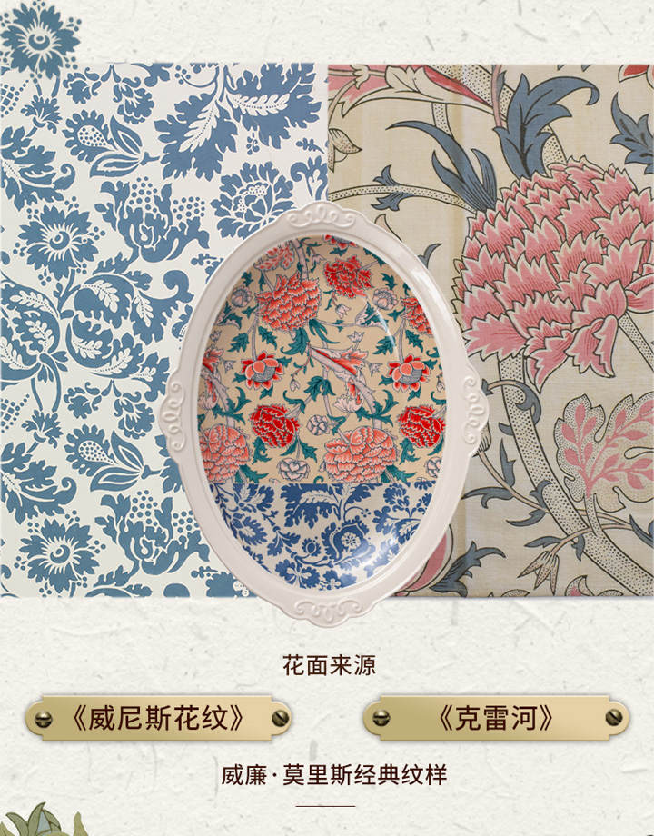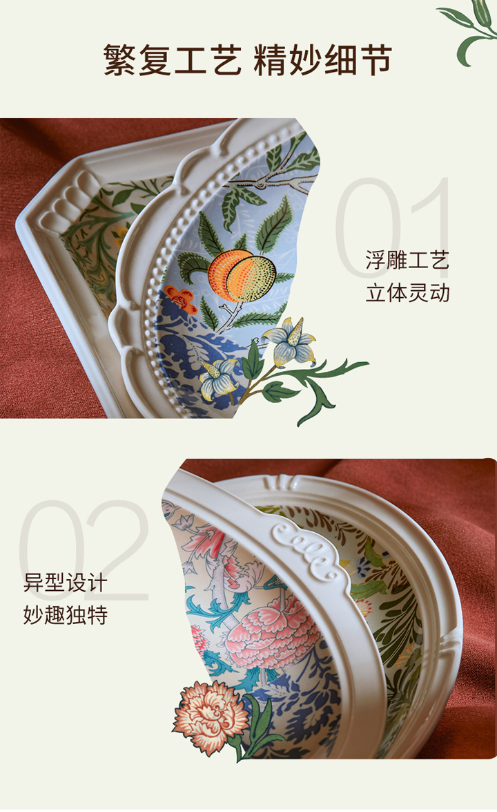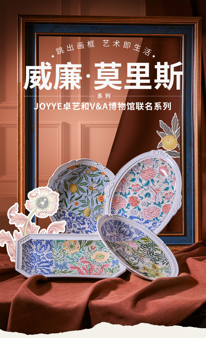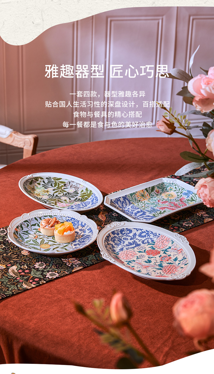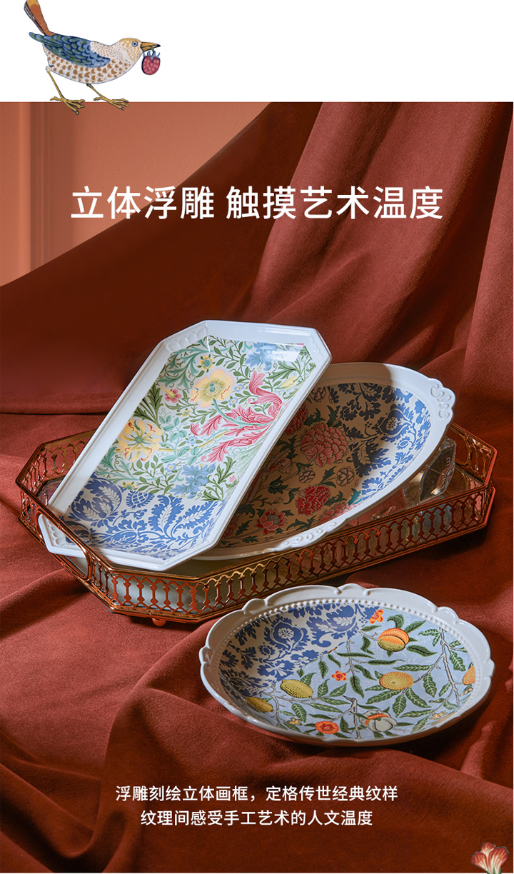 JOYYE威廉·莫里斯-浮雕复古欧式西餐盘陶瓷鱼盘套装乔迁礼物盒创意菜盘