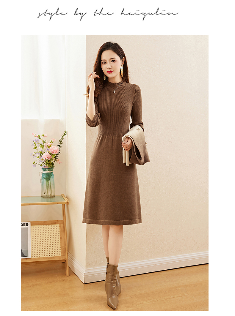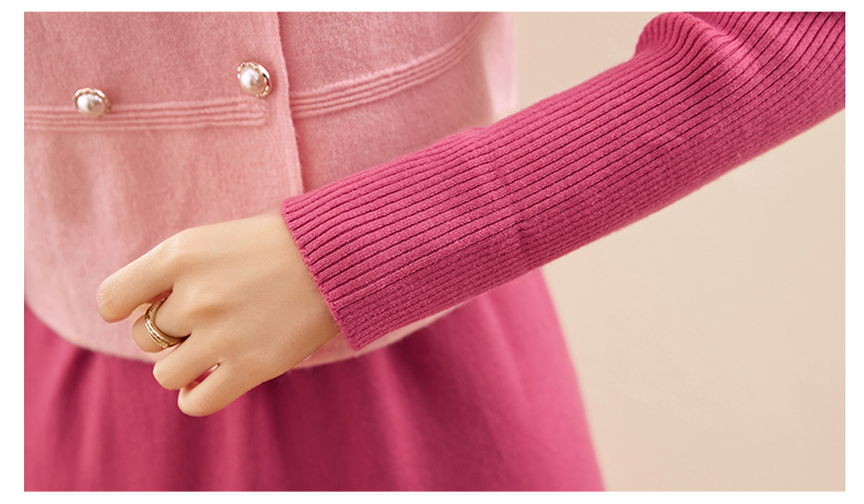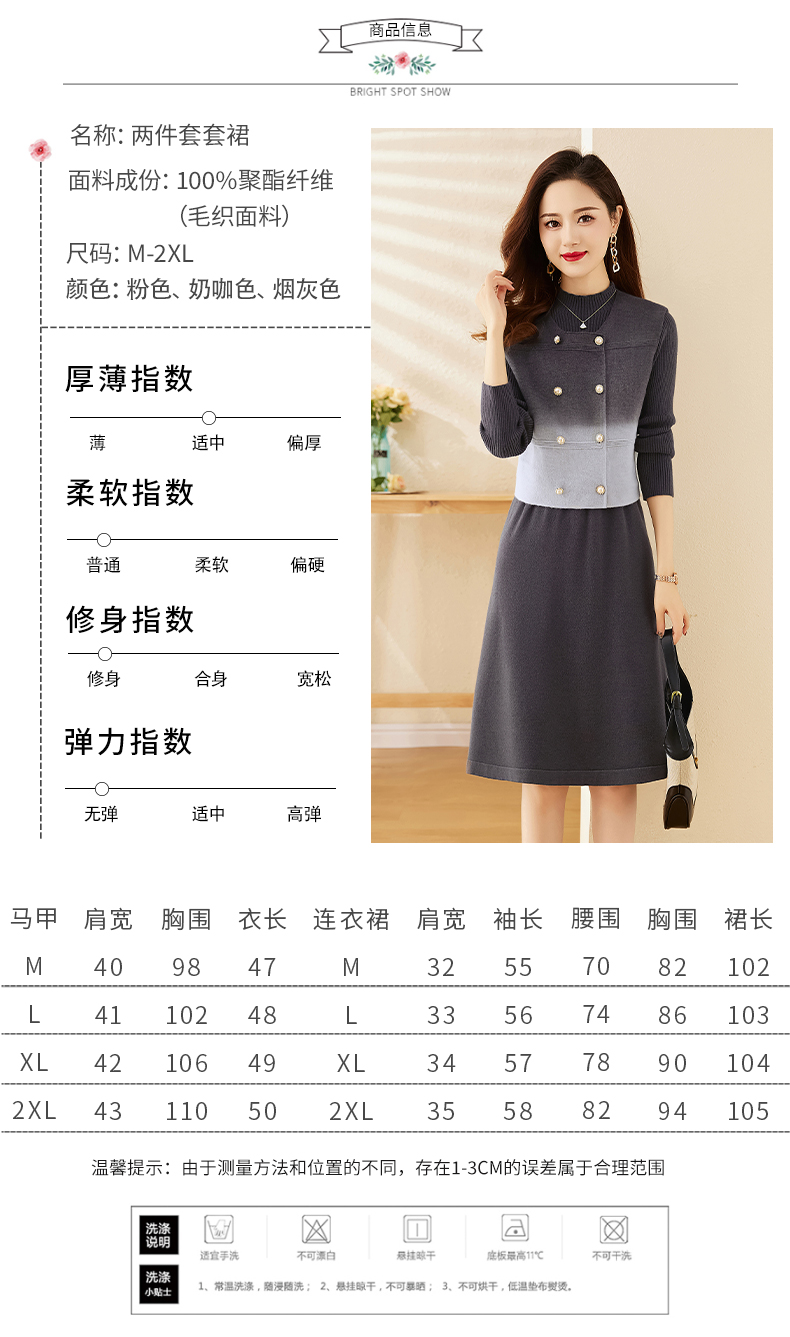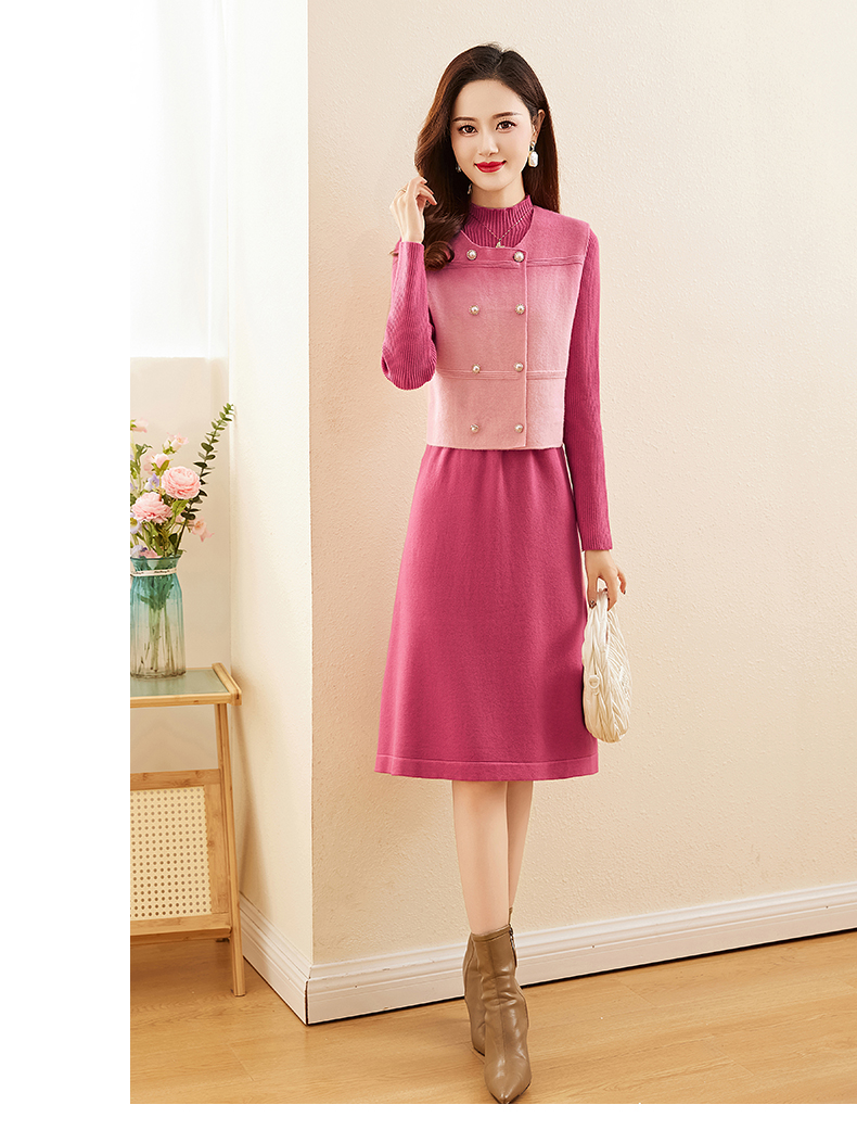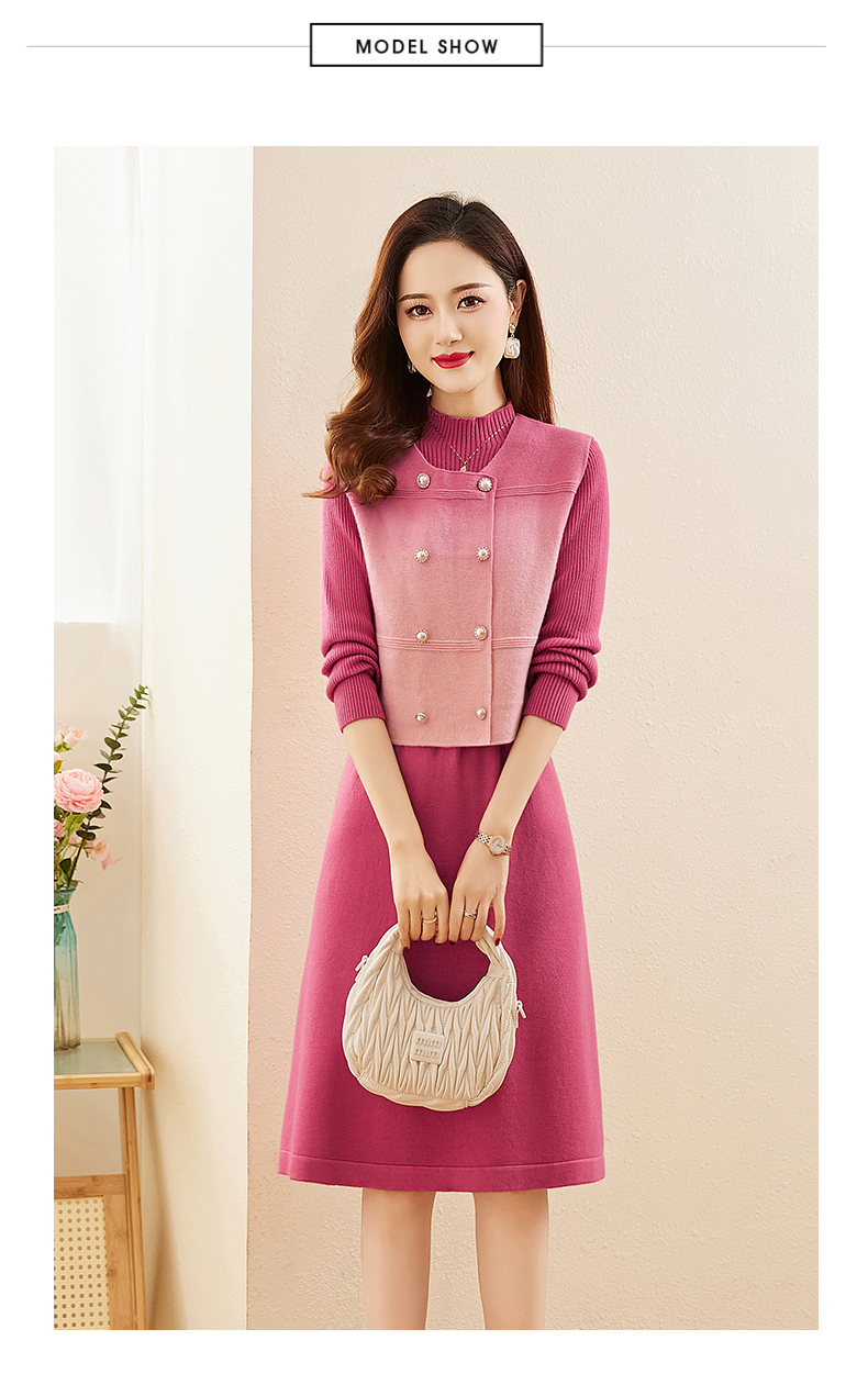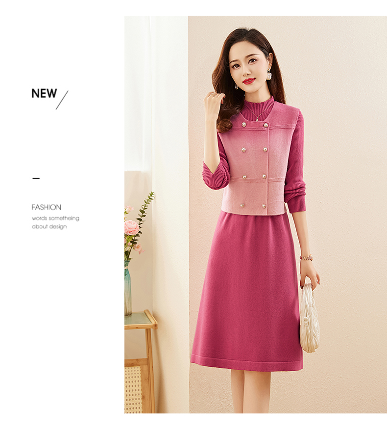 冬季新款,温柔风晕染渐变色百搭洋气双排扣两件套连衣裙HR-YBER106