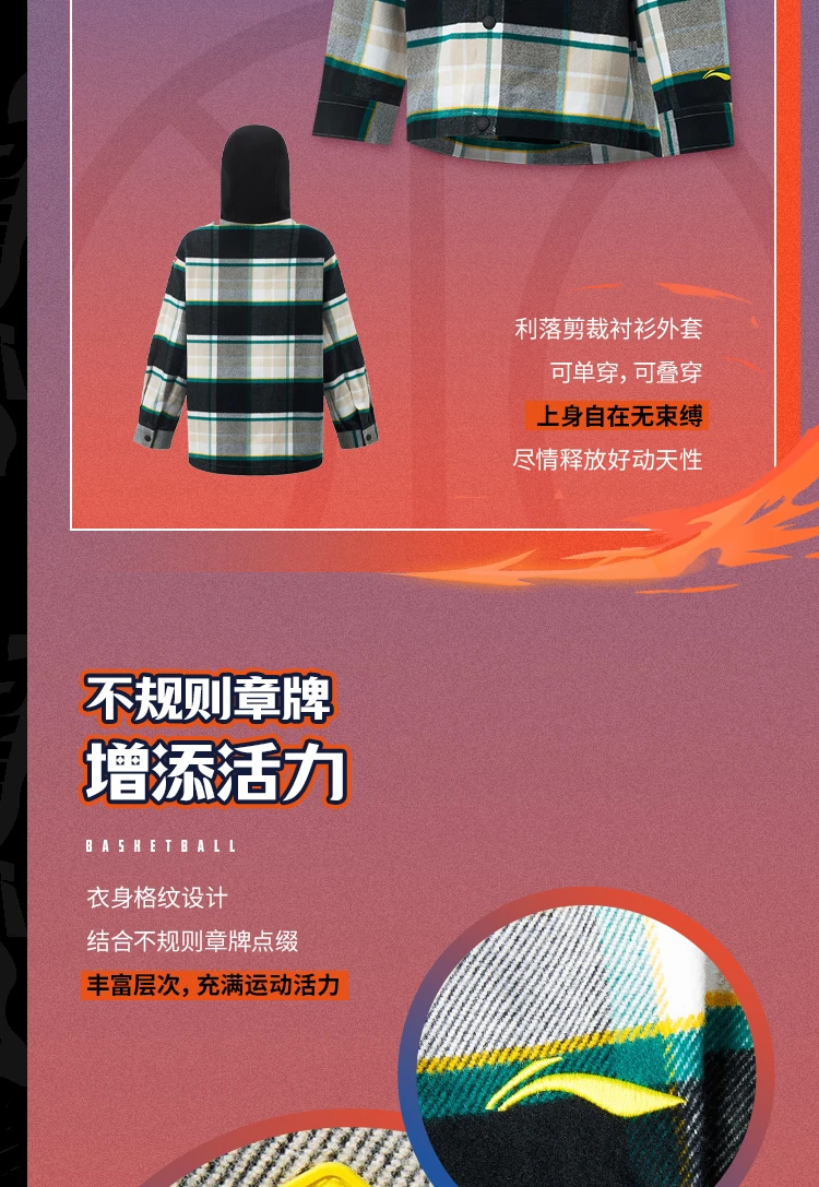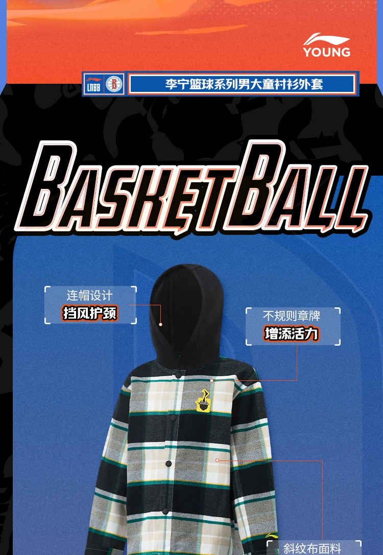 李宁男大童篮球系列宽松衬衫外套YFDV005