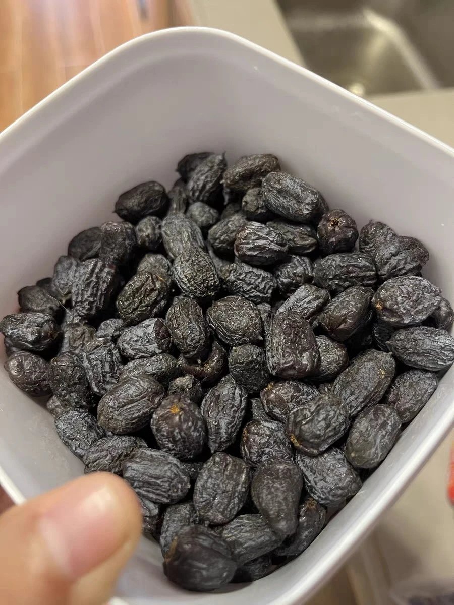 【配料】:黑枣 【产品重量】:净重120克/袋 【产品包装】:袋装 【产地】:河北 【生产日期】:2025最新 【快递说明】:普快随机 【加运费地区】:北京上海加1,甘肃宁夏内蒙古青海海南+5 【发货时间】:48-72小时内发货 【发货地】:河北 【保质期】:30天 【售后规则】: 1:请当面验收快递,如有外包装严重破损请勿签收。 2:出单号并揽收发货后不支持无理由拦截,撤单,拒收 1.产品发出不支持无理由拒收拦截撤单改地址 2.如出现异常情况,请带面单+产品拍照+产品包装照片与我们联系,我们会第一时间处理,如产品有质量问题可在收货24小时之内,联系客服进行售后或者补发 注意事项: 1. 黑枣不宜空着肚子吃哦!忌与柿子同食;忌与海鲜、奶类同食。 2. 枣子吃多了会涨气,如果有腹胀现象就不要吃枣了。 温馨提示: 1.为了大家健康,我们不添加防腐剂,收到后如果一时吃不完,最~好冷藏保存,也可以拆袋把黑枣倒出平铺阴凉通风处散放,可以保存30天 2. 本产品为无核黑枣品种,自然生长,可能偶尔会有个别有核,食用时需要注意