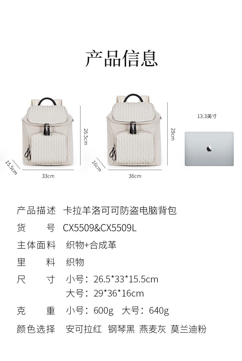 【通勤旅游必备】卡拉羊X锦囊COCO云朵防盗电脑双肩背包抑菌CN5495/L