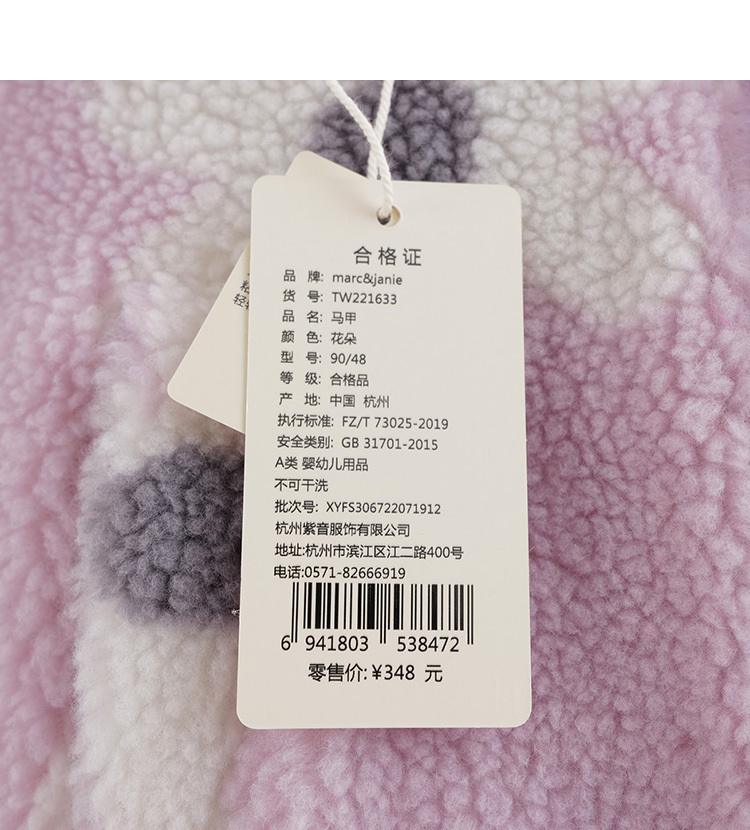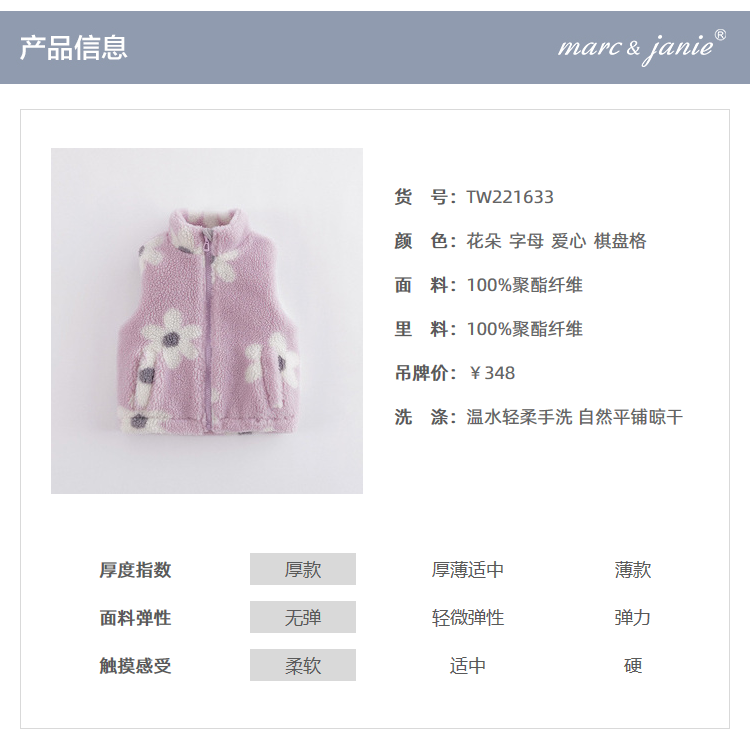马克珍妮秋装新款 男女童仿羊羔毛立领马甲 儿童背心221633