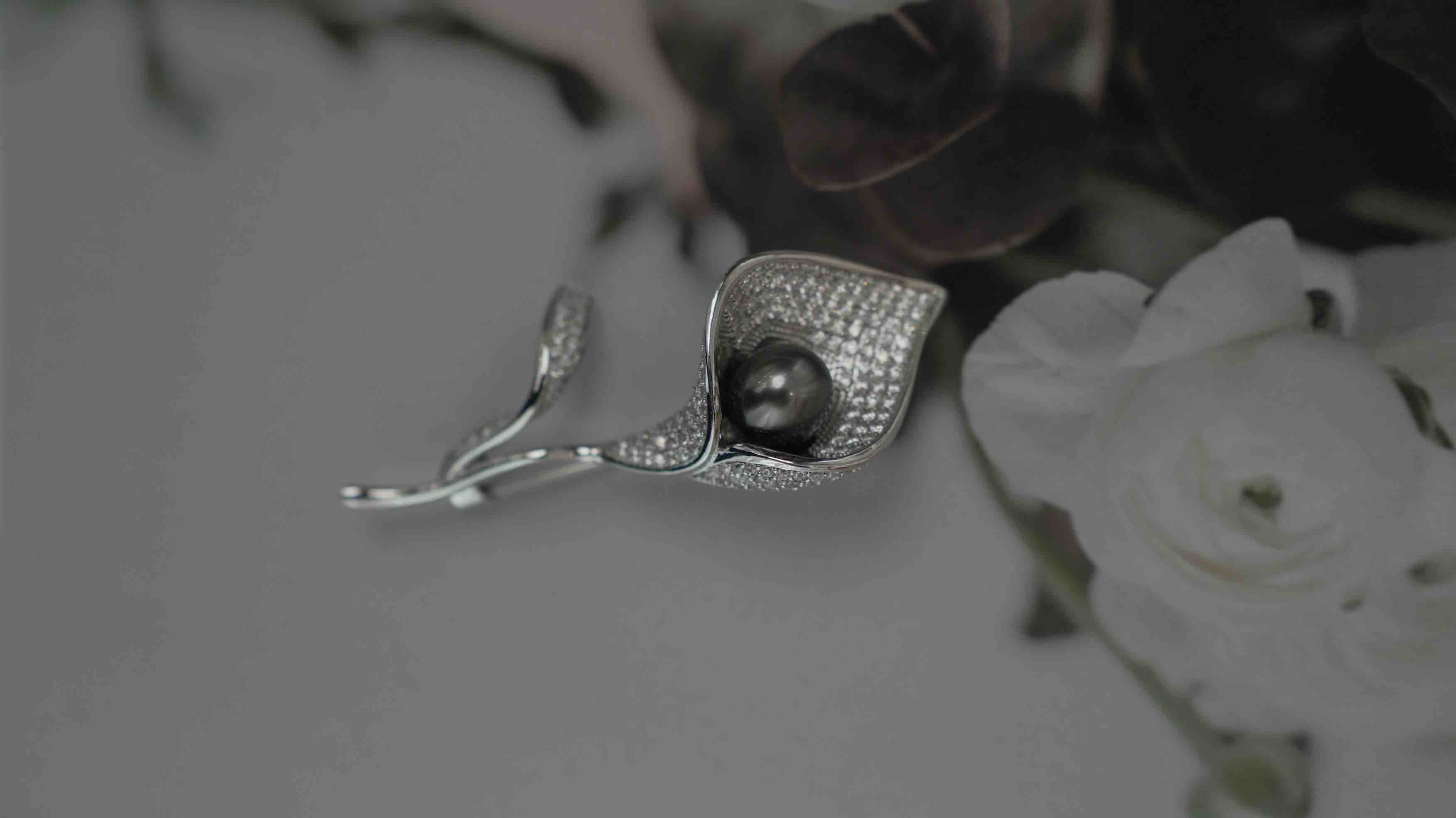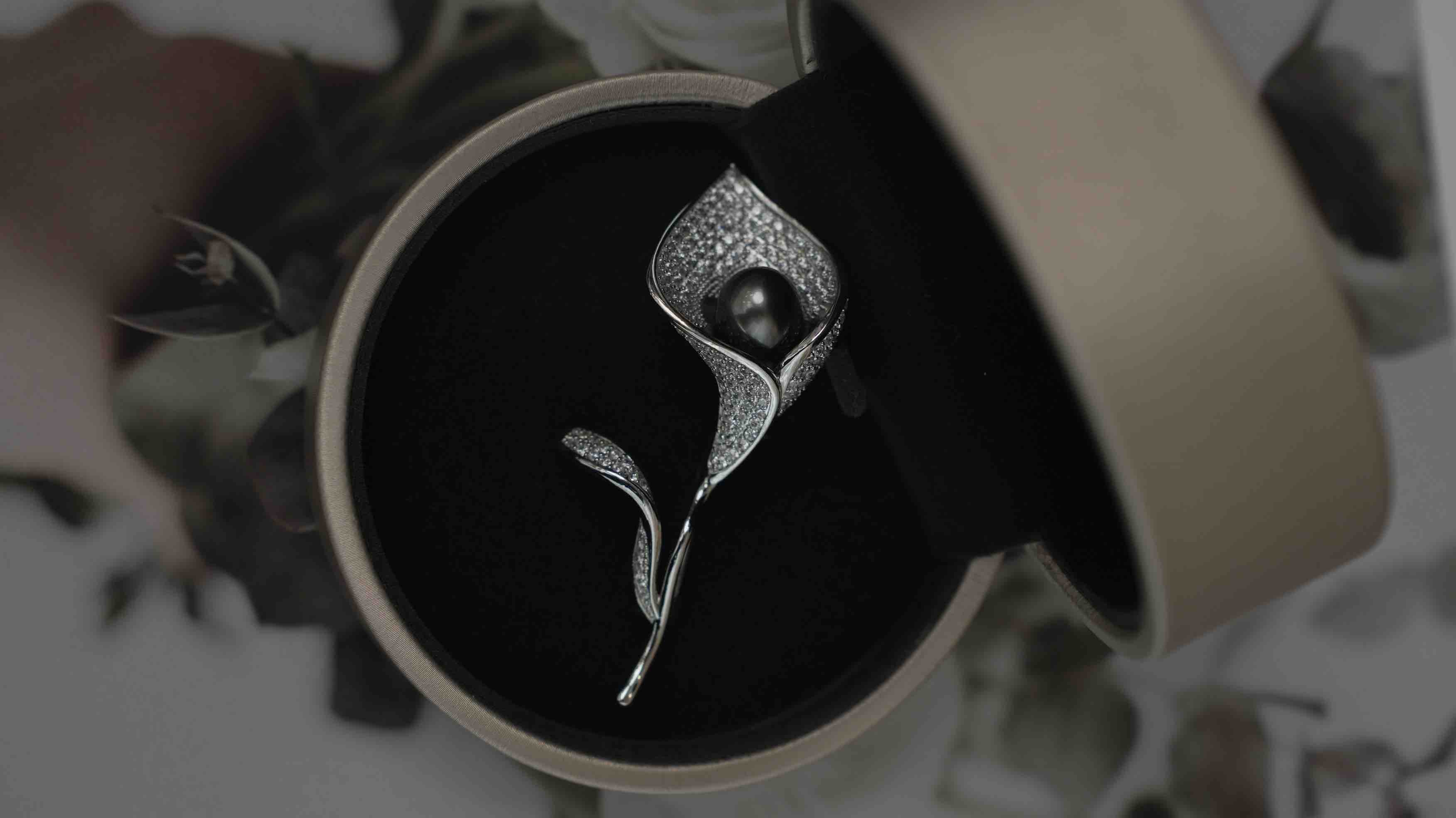 甄珠贝 【马蹄莲】精品胸针 大溪地9-10mm