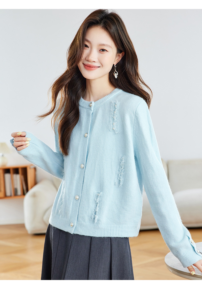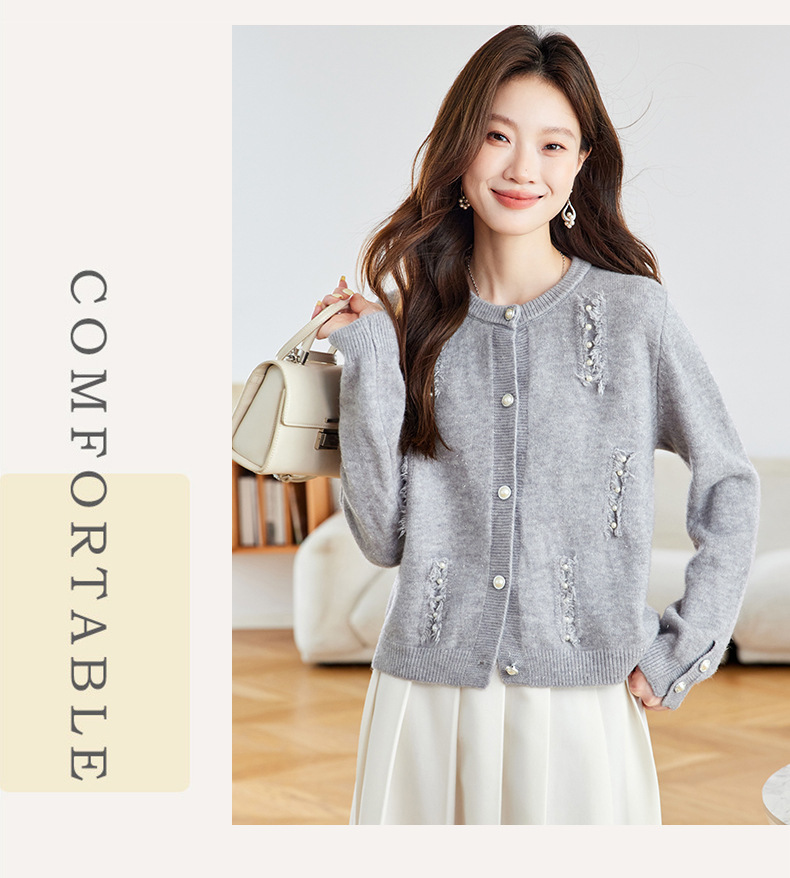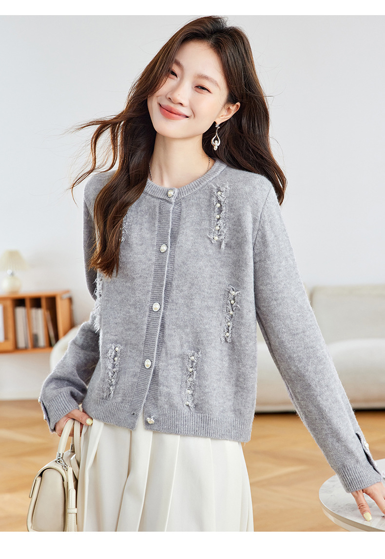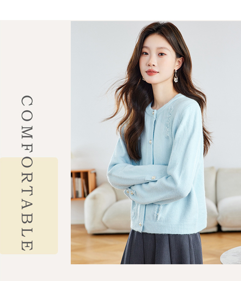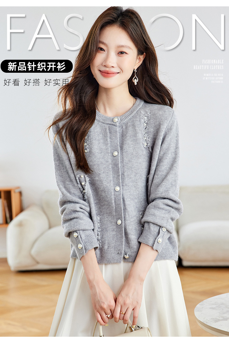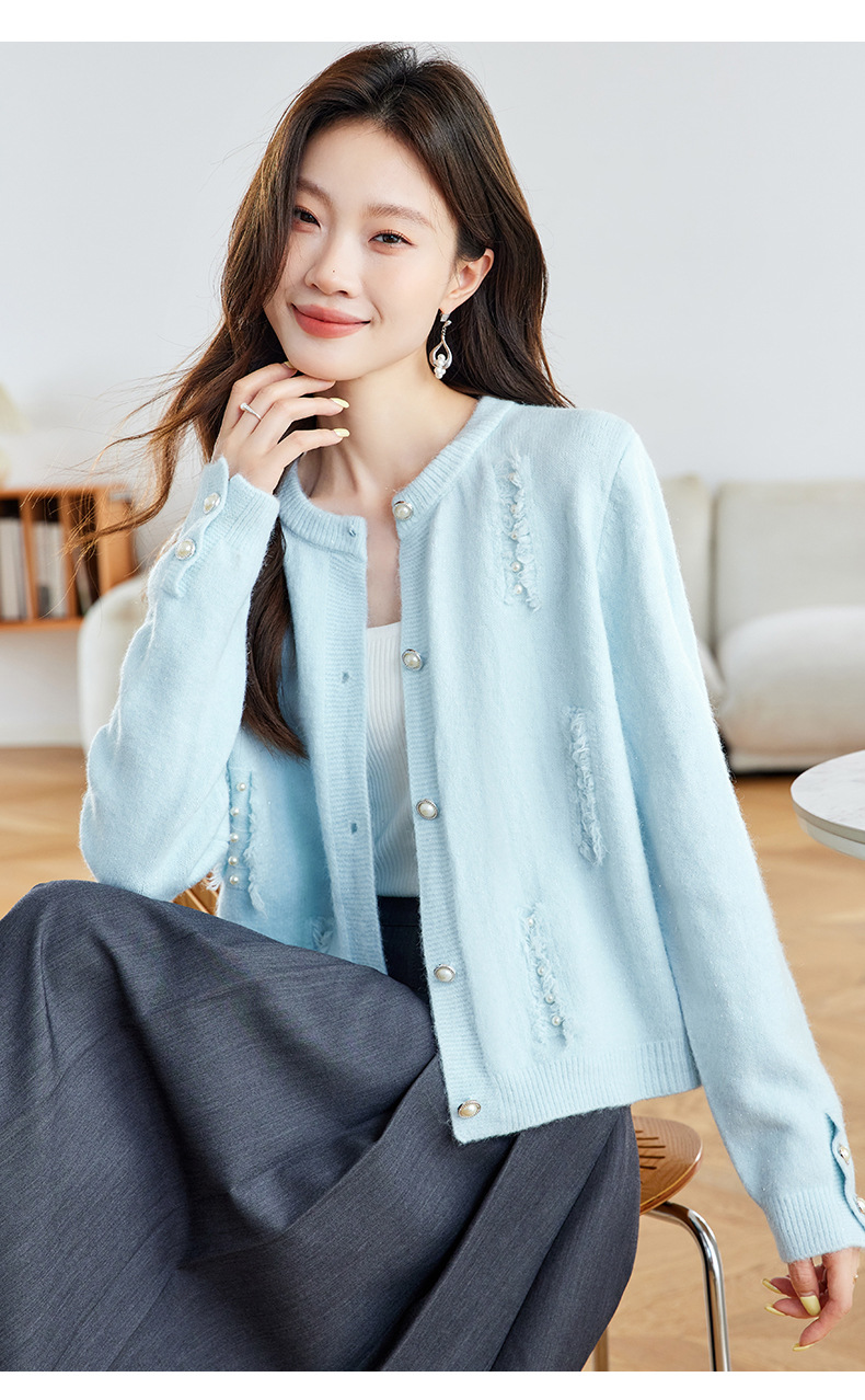 CC本命年羊毛针织开衫女春秋外搭宽松短款洋气上衣休闲圆领毛衣外套