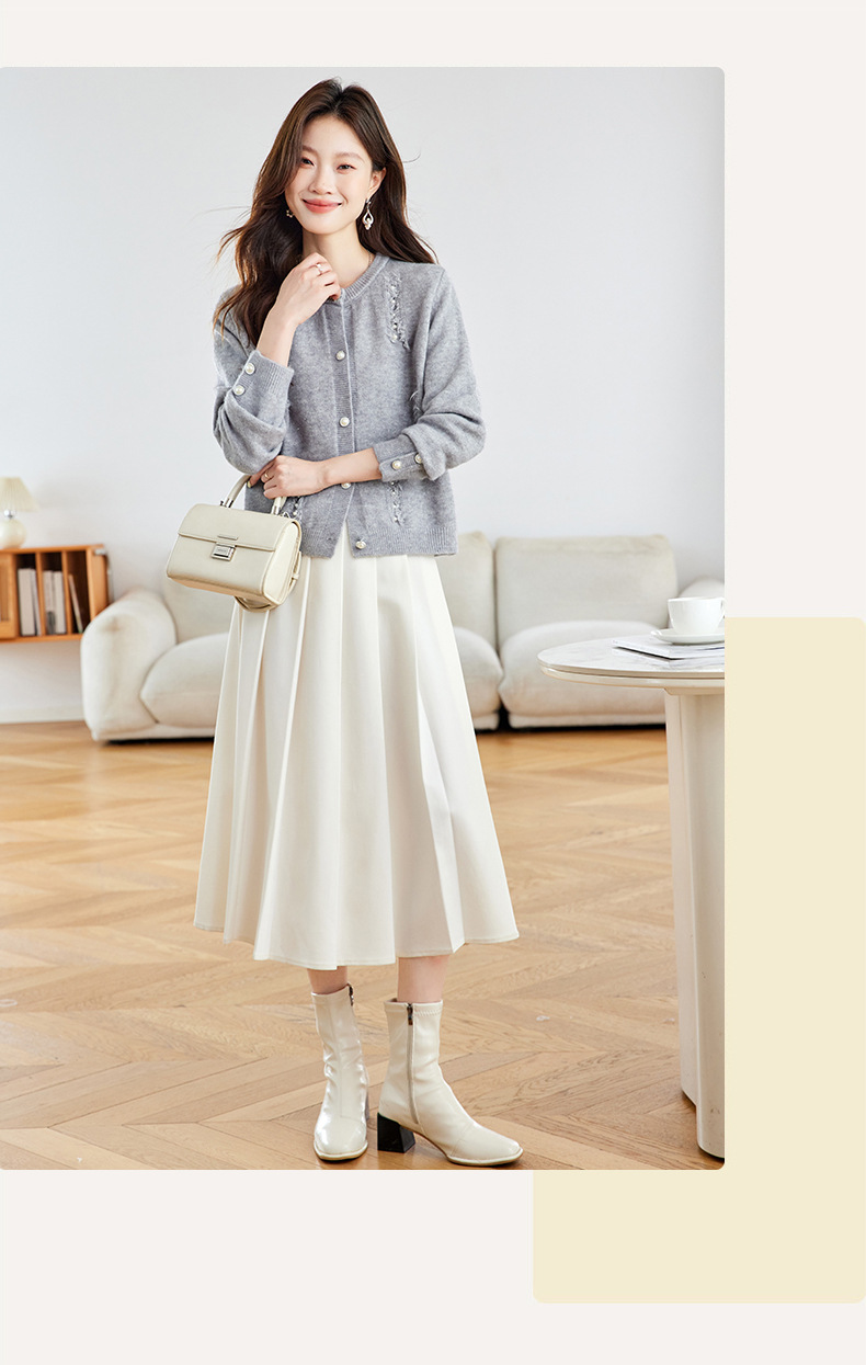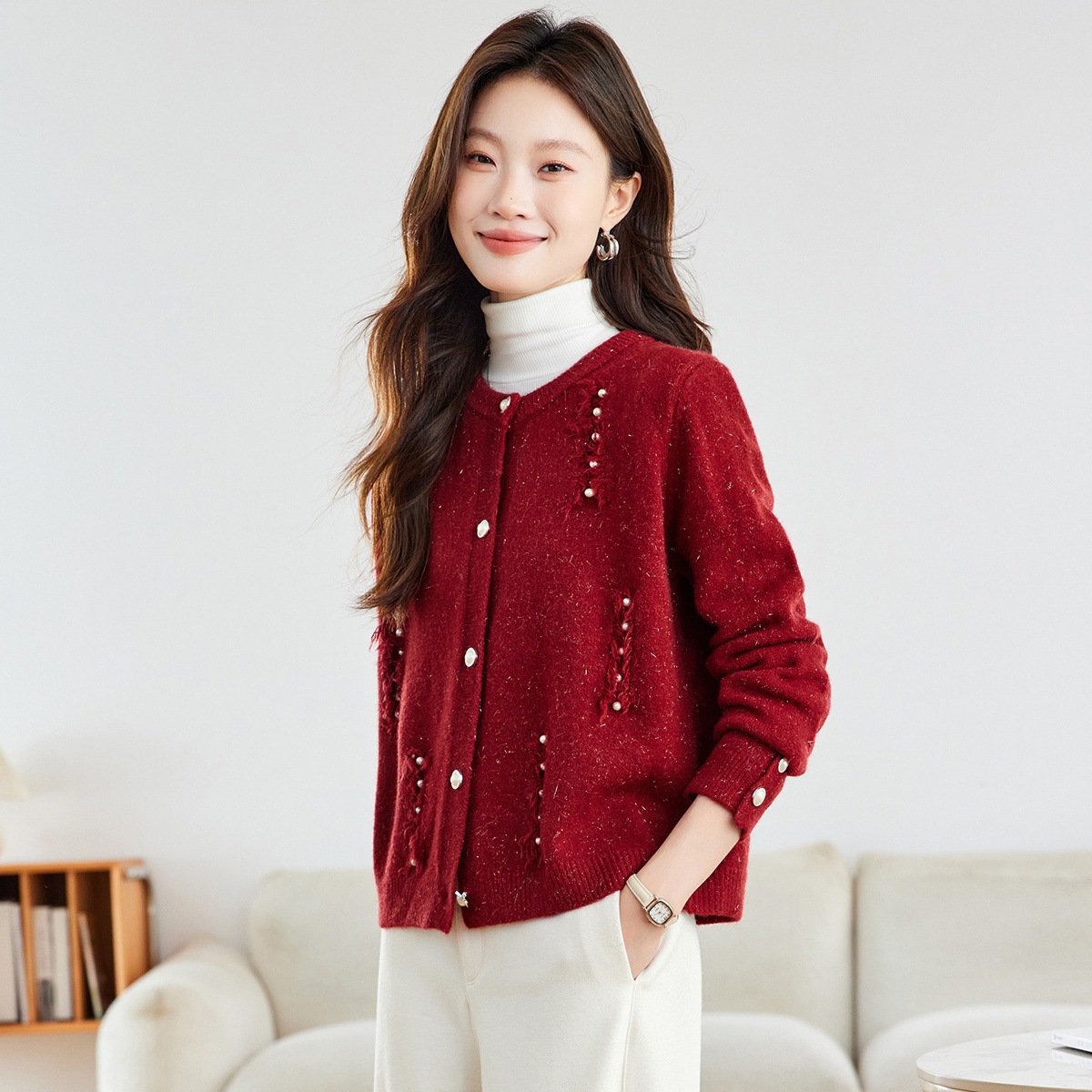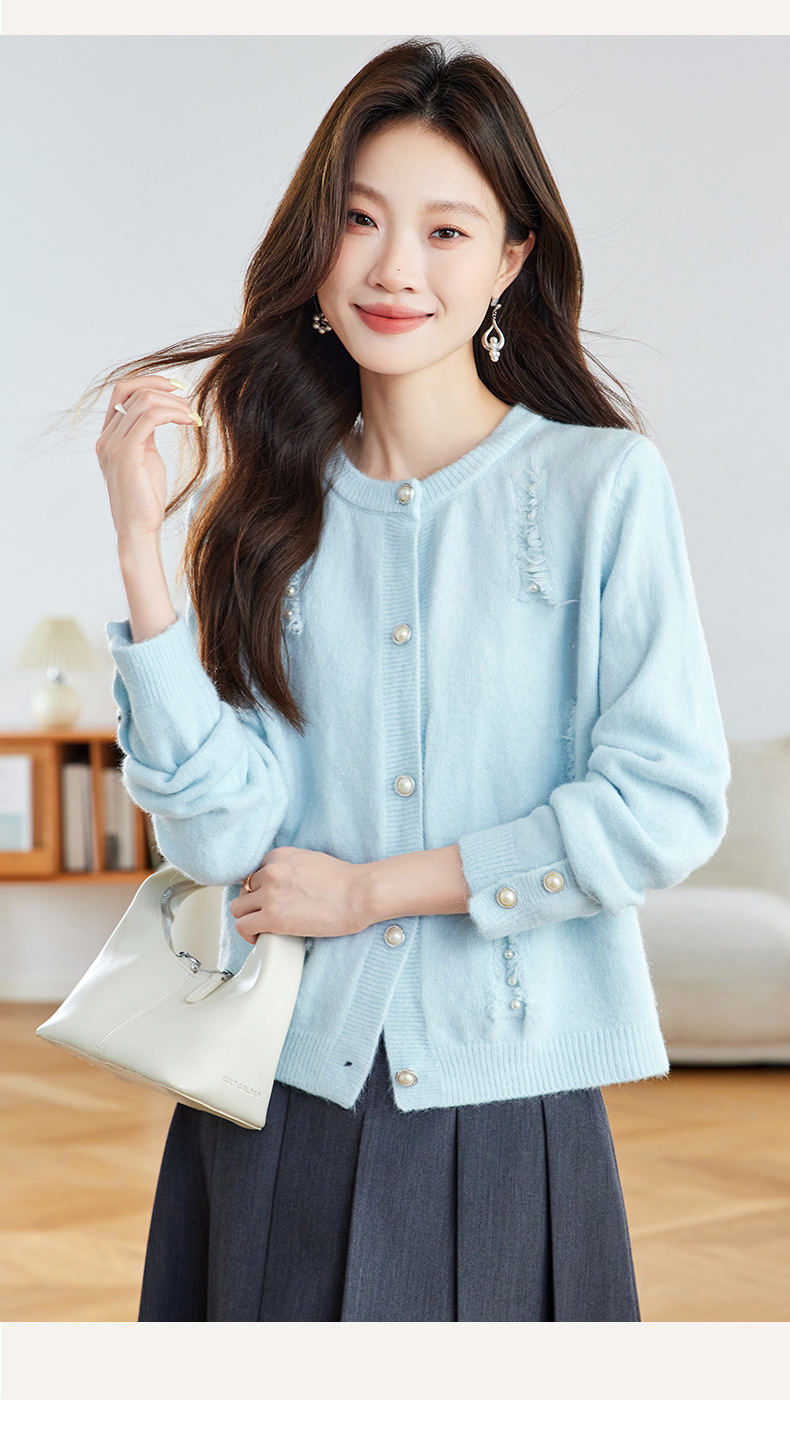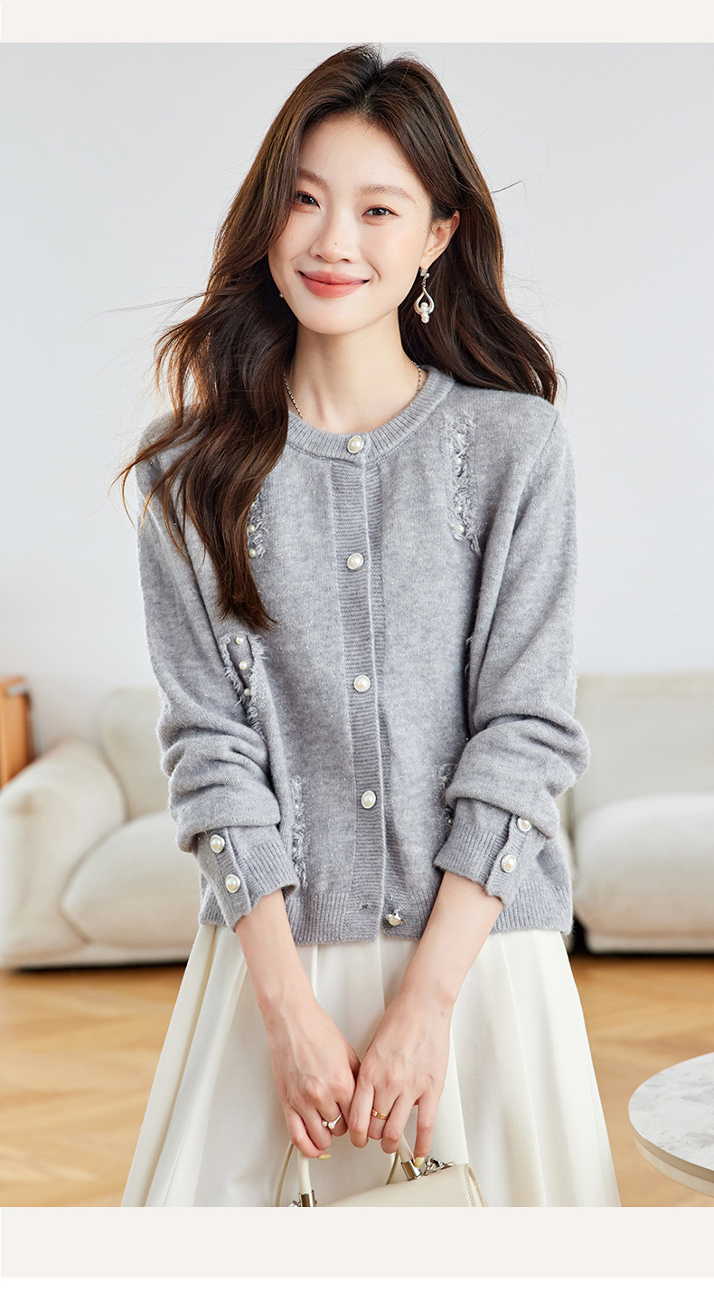 CC本命年羊毛针织开衫女春秋外搭宽松短款洋气上衣休闲圆领毛衣外套