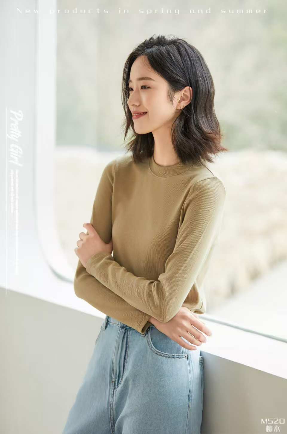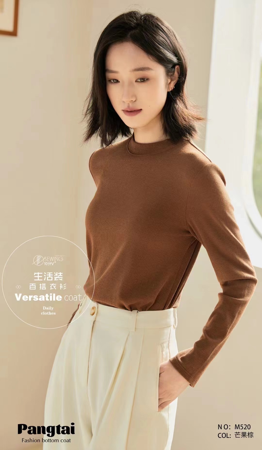 【品名】LS竹纤维女士简约中领打底衫520