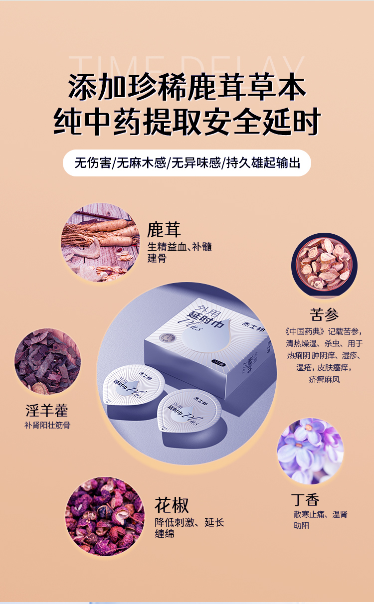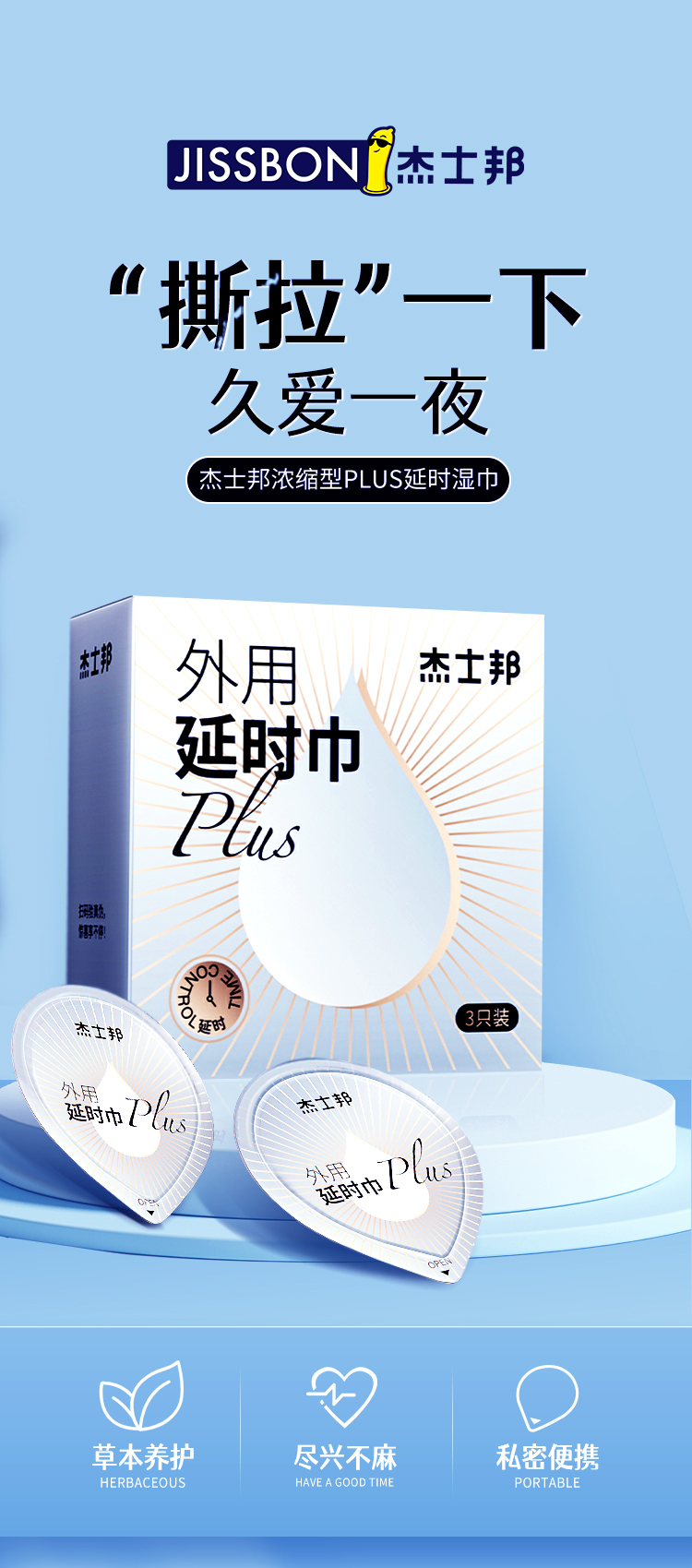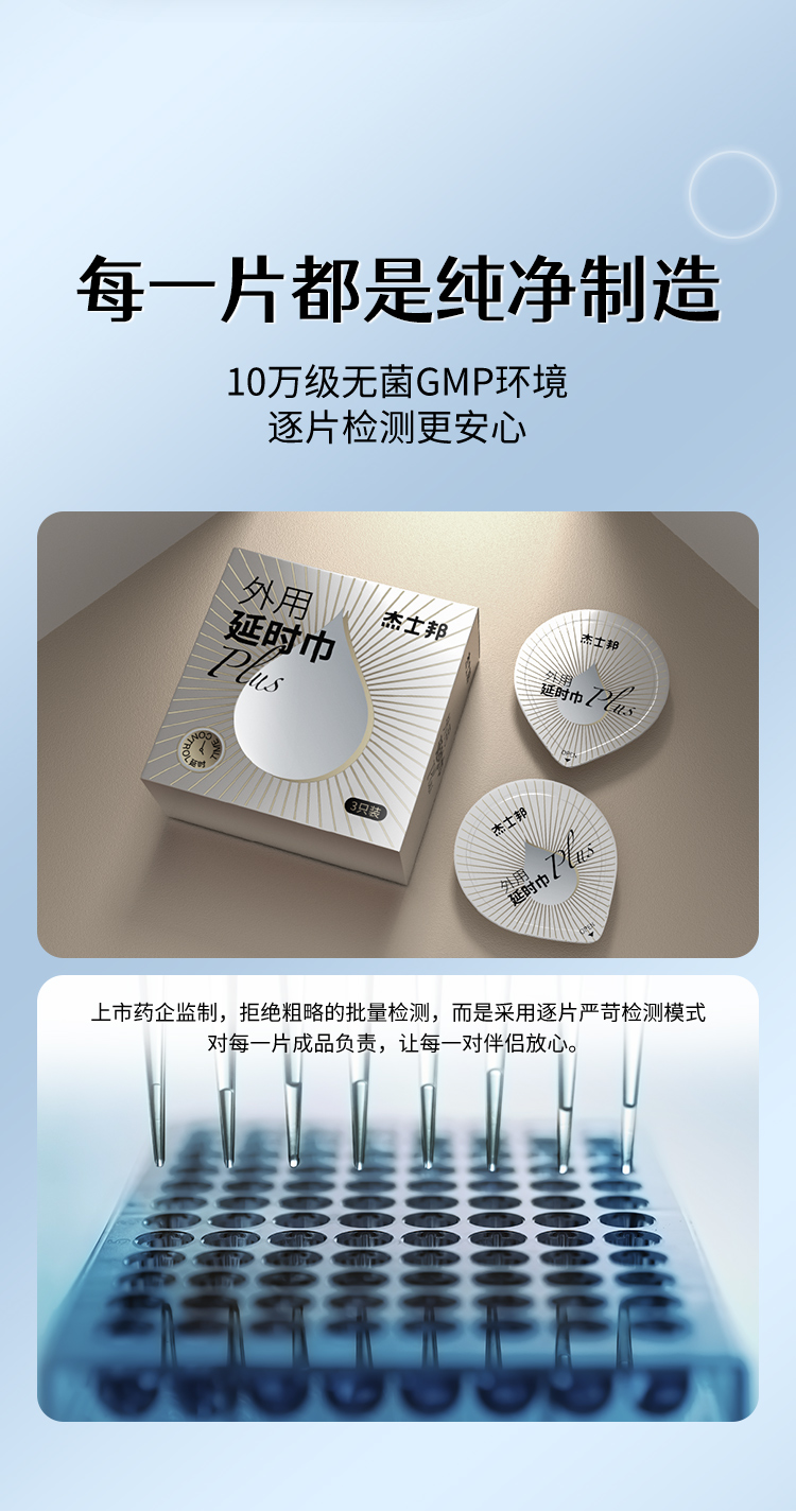 杰士邦延时巾PLUS3只装外用延时湿巾