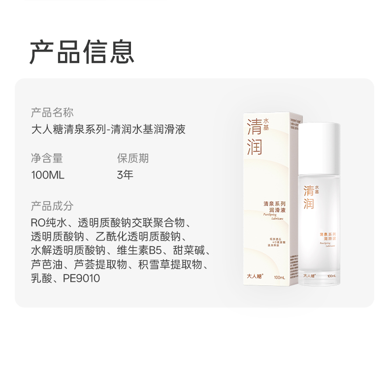【华熙生物玻尿酸】大人糖-清泉系列-清润水基润滑液100ml
