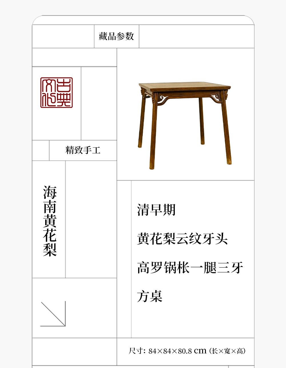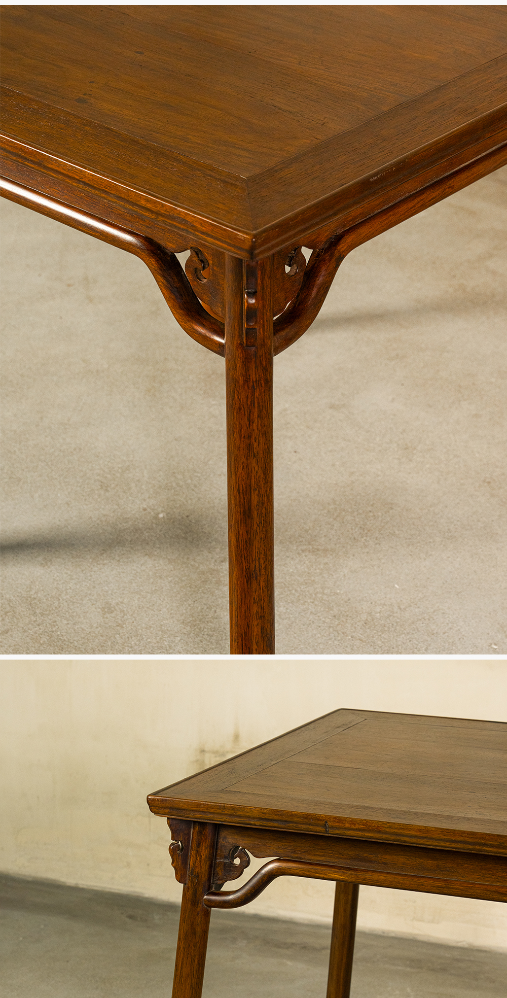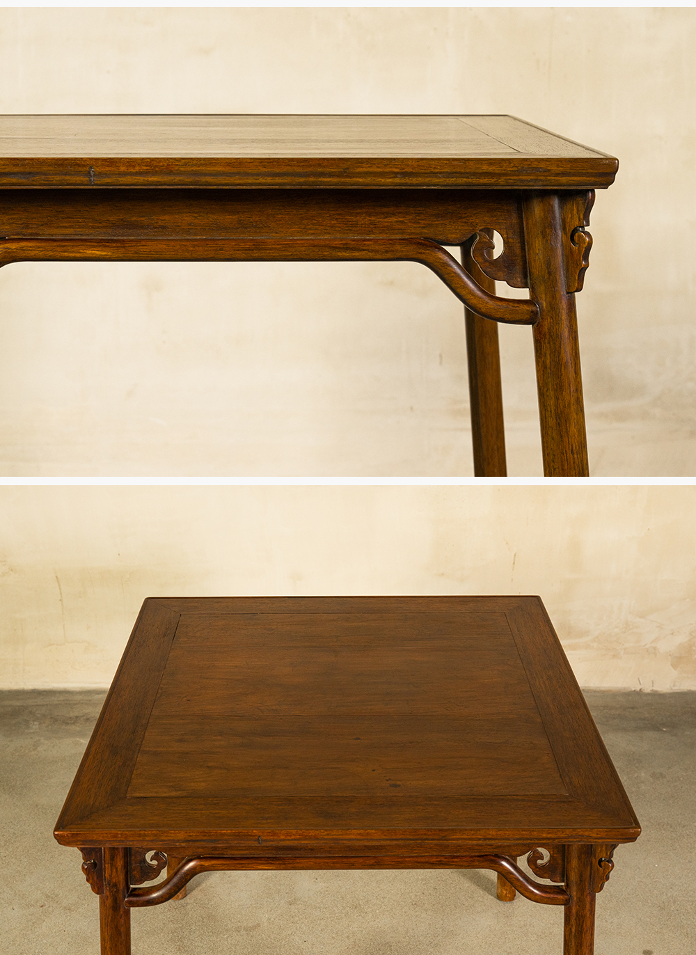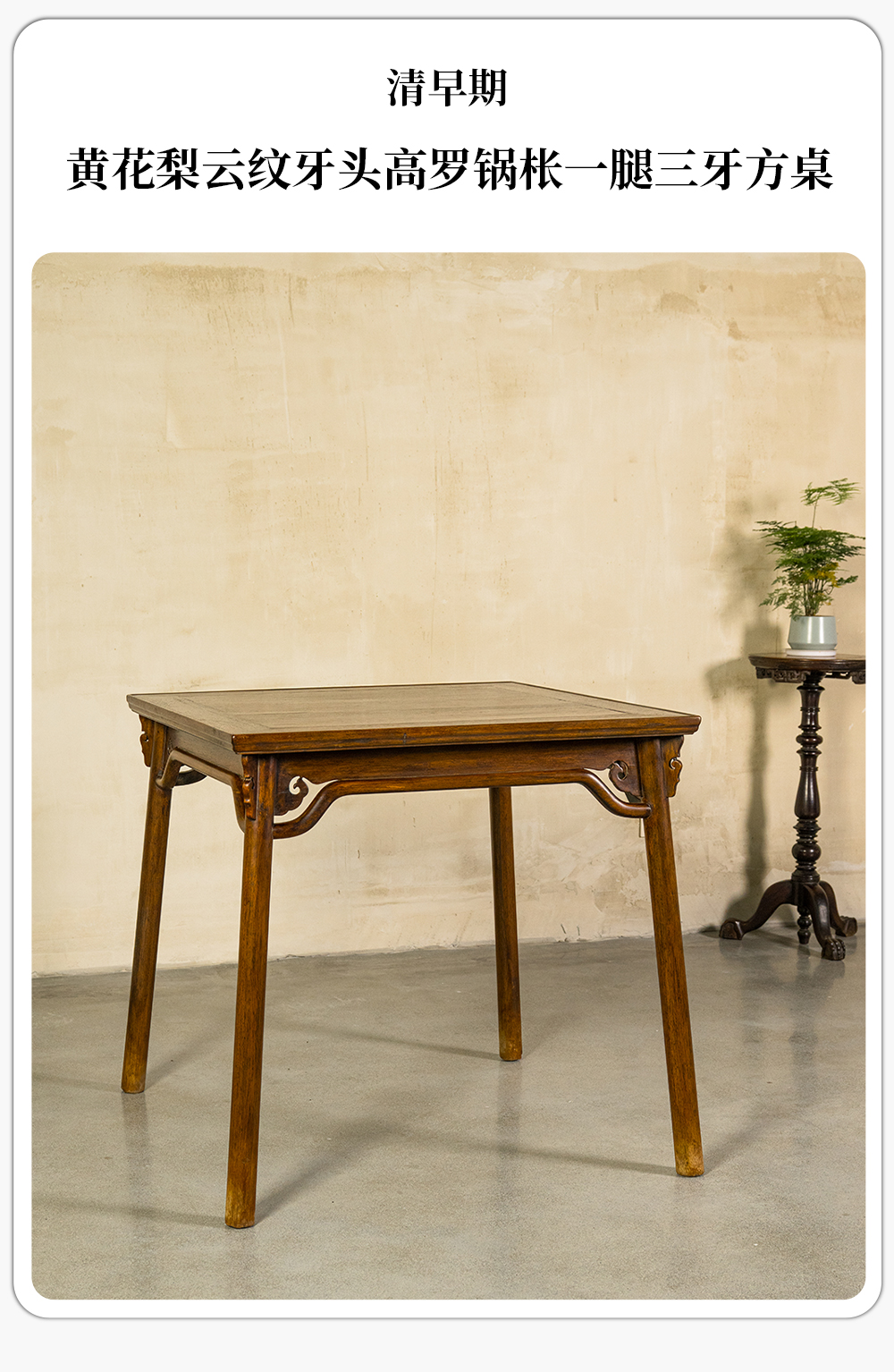 清早期 黄花梨云纹牙头高罗锅枨一腿三牙方桌