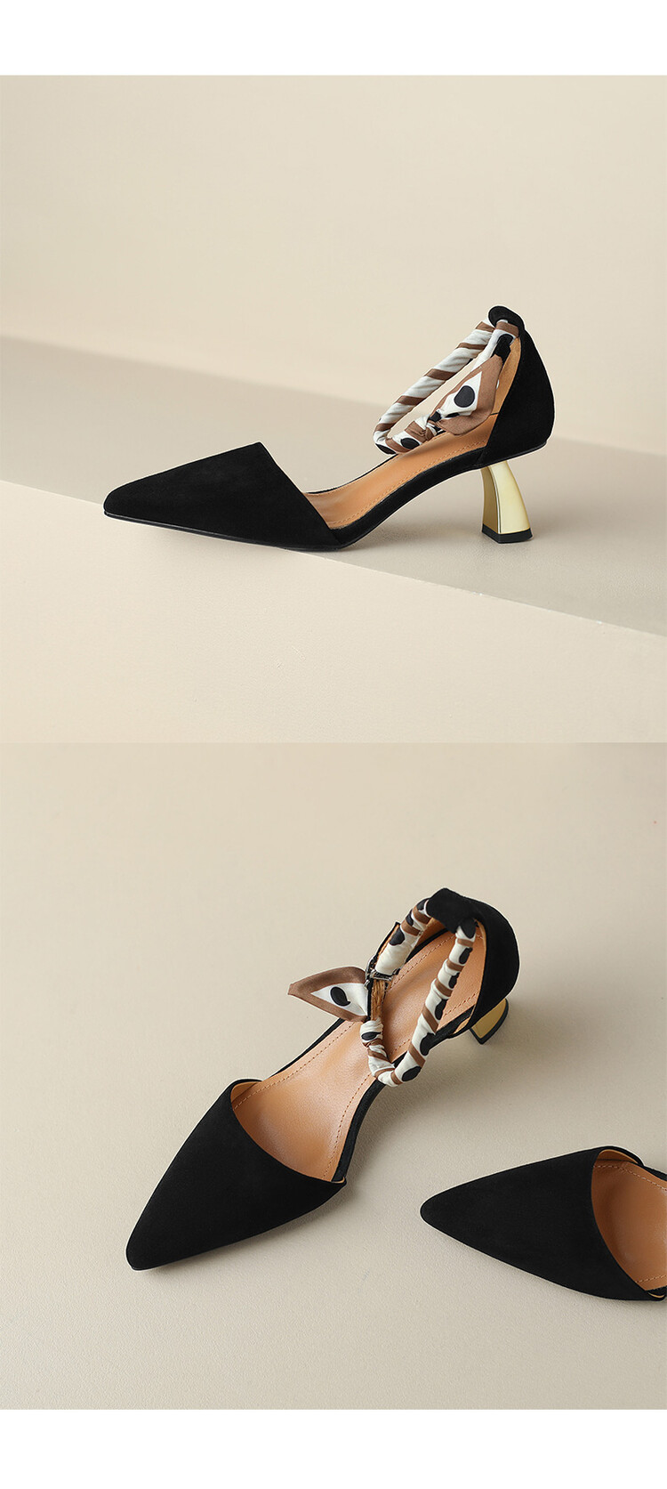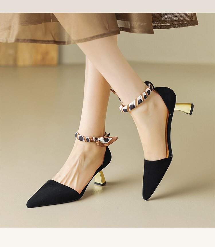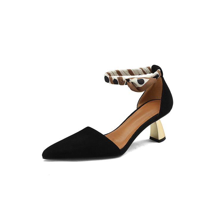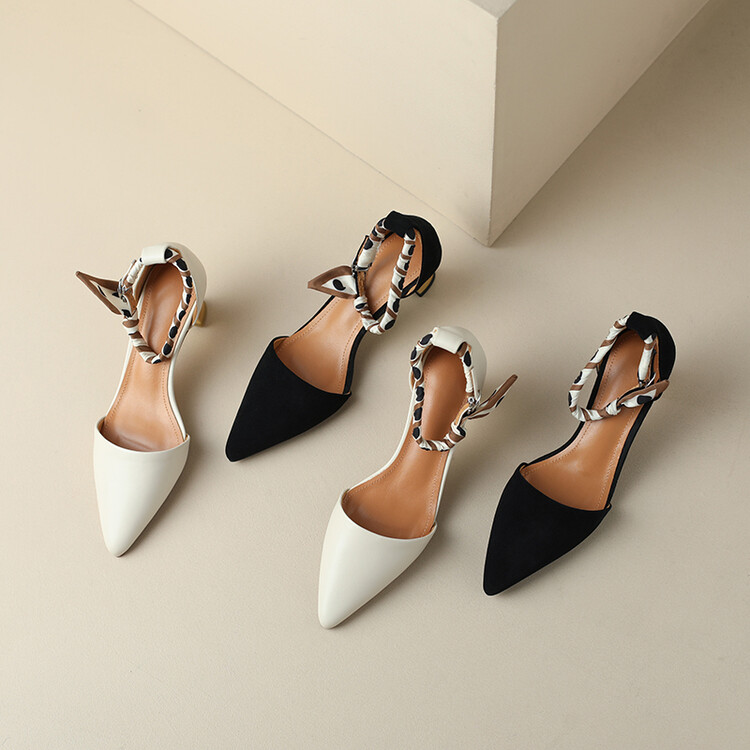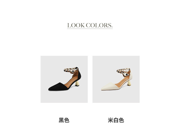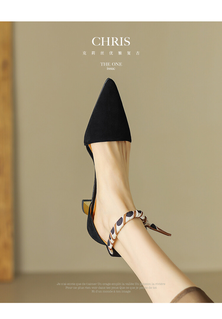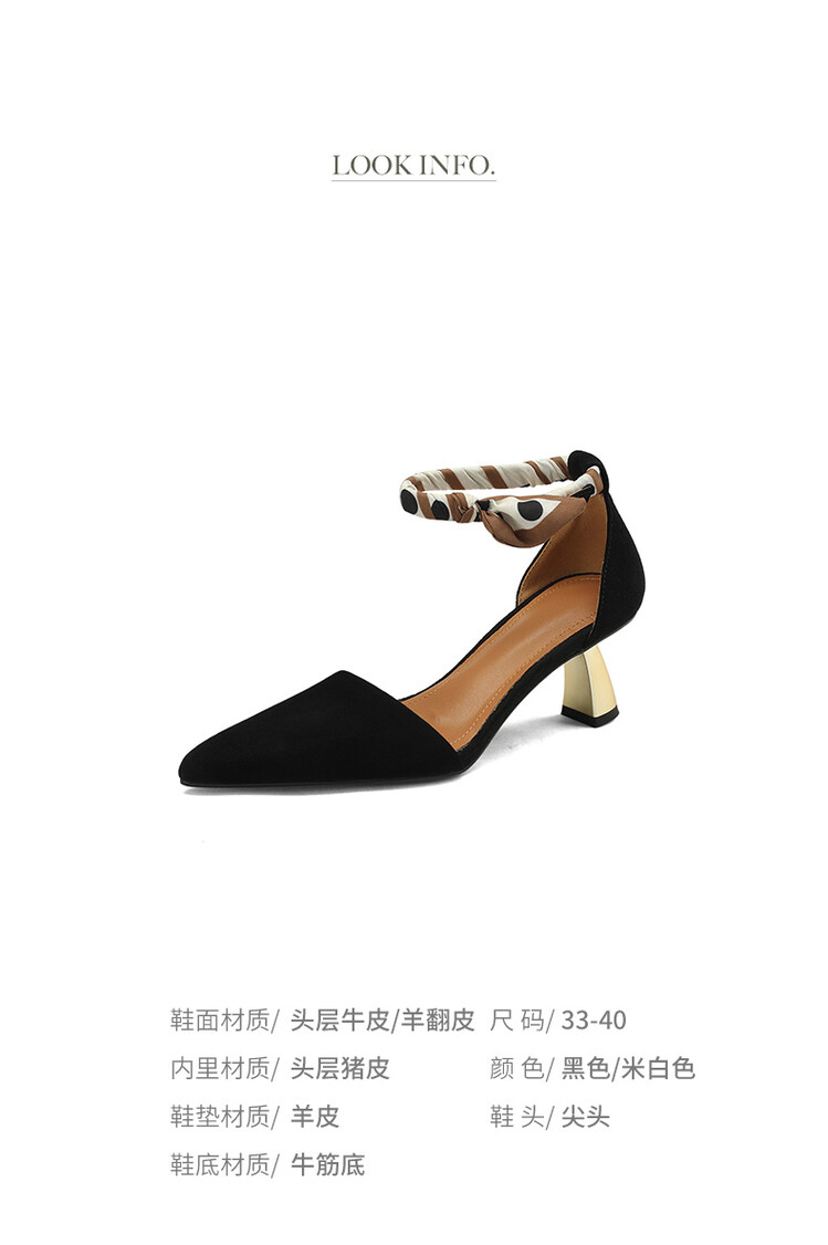 【预售5天】法式包头凉鞋女新款尖头包跟女鞋中空丝带一字扣带中跟单鞋HB&A138-1