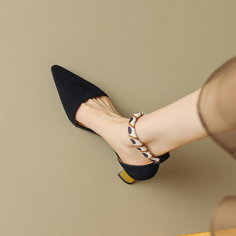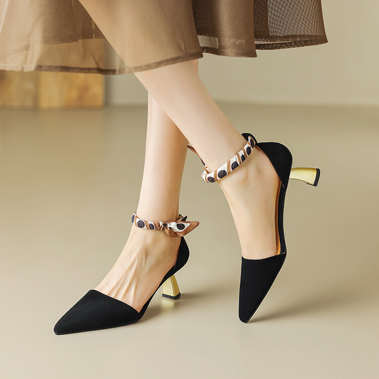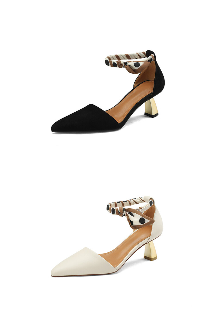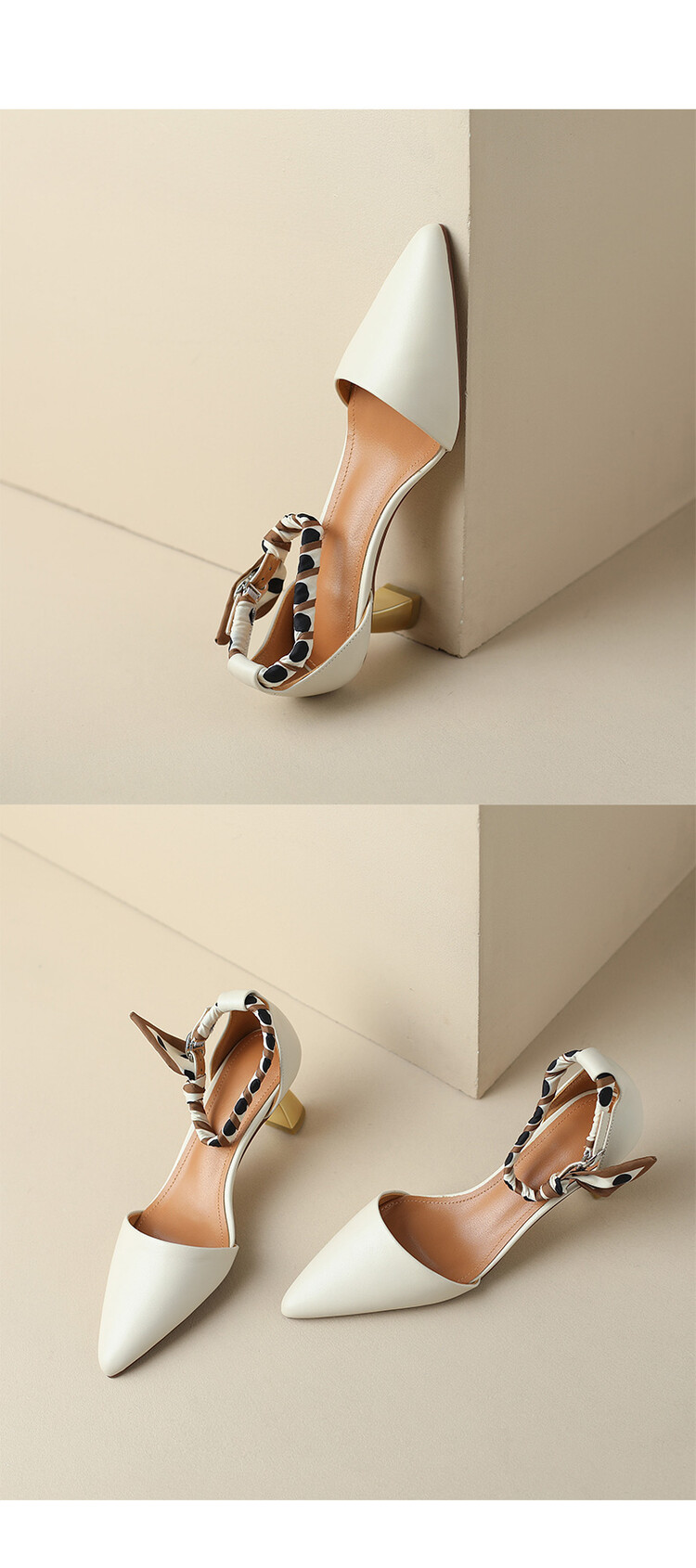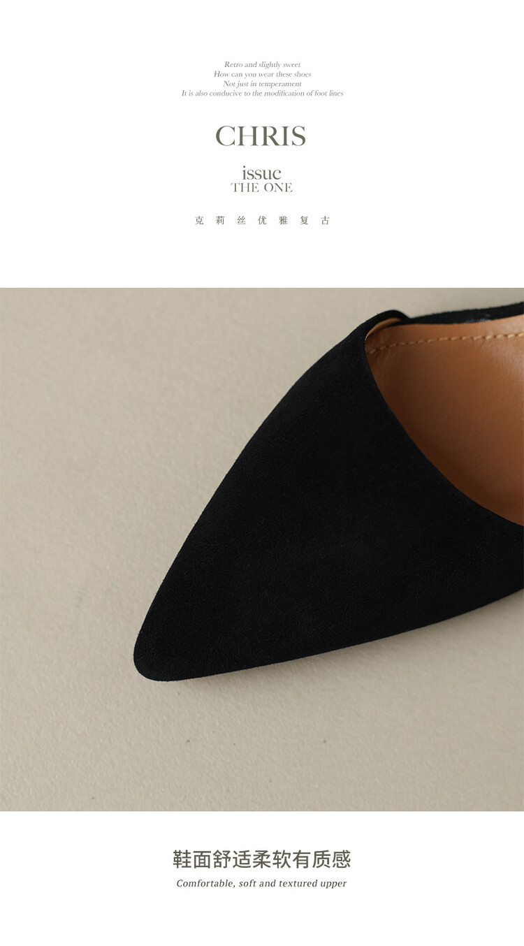 【预售5天】法式包头凉鞋女新款尖头包跟女鞋中空丝带一字扣带中跟单鞋HB&A138-1