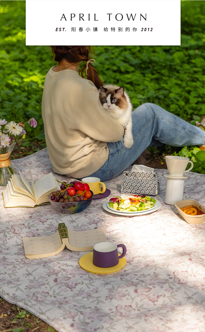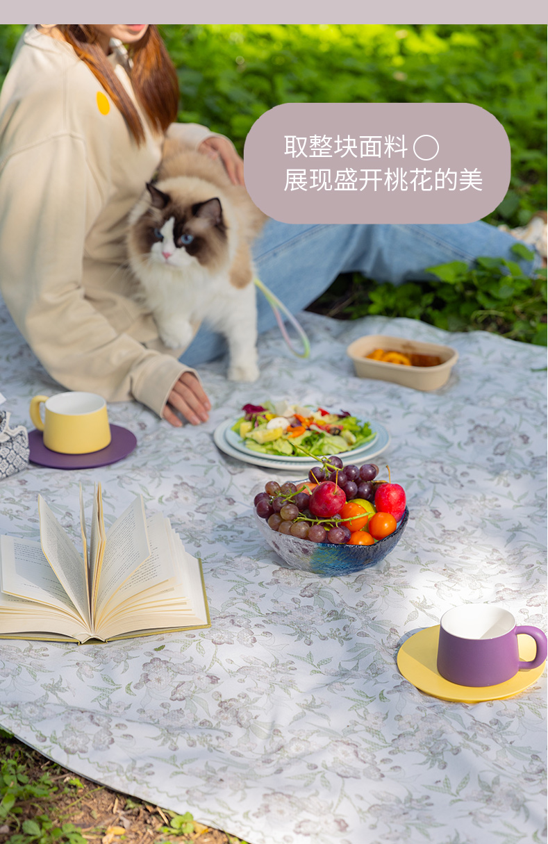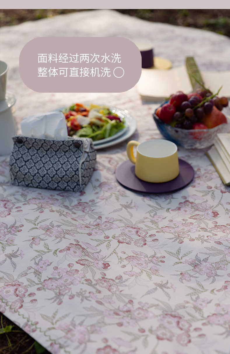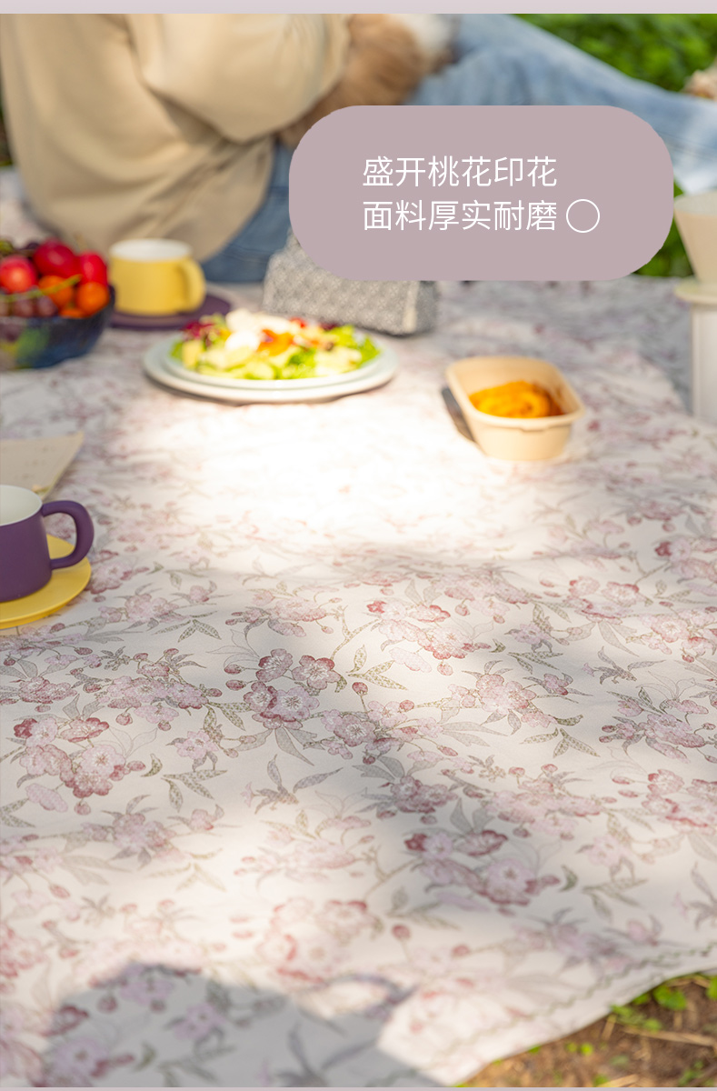 桃花夭夭野餐垫防潮垫便携加厚草地春游草坪轻便秋游高级感棉