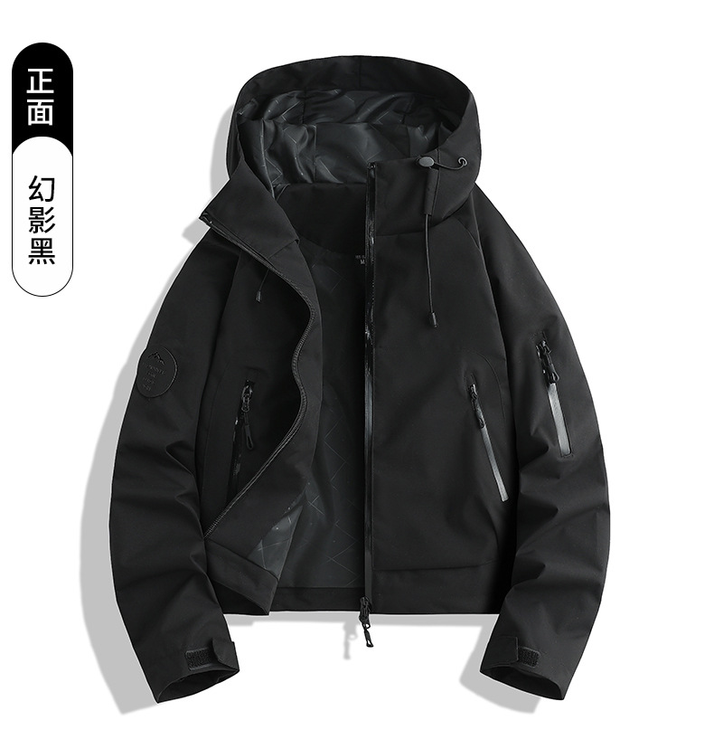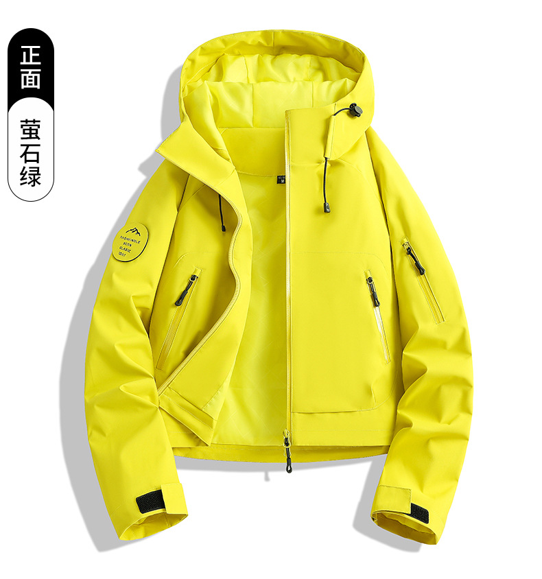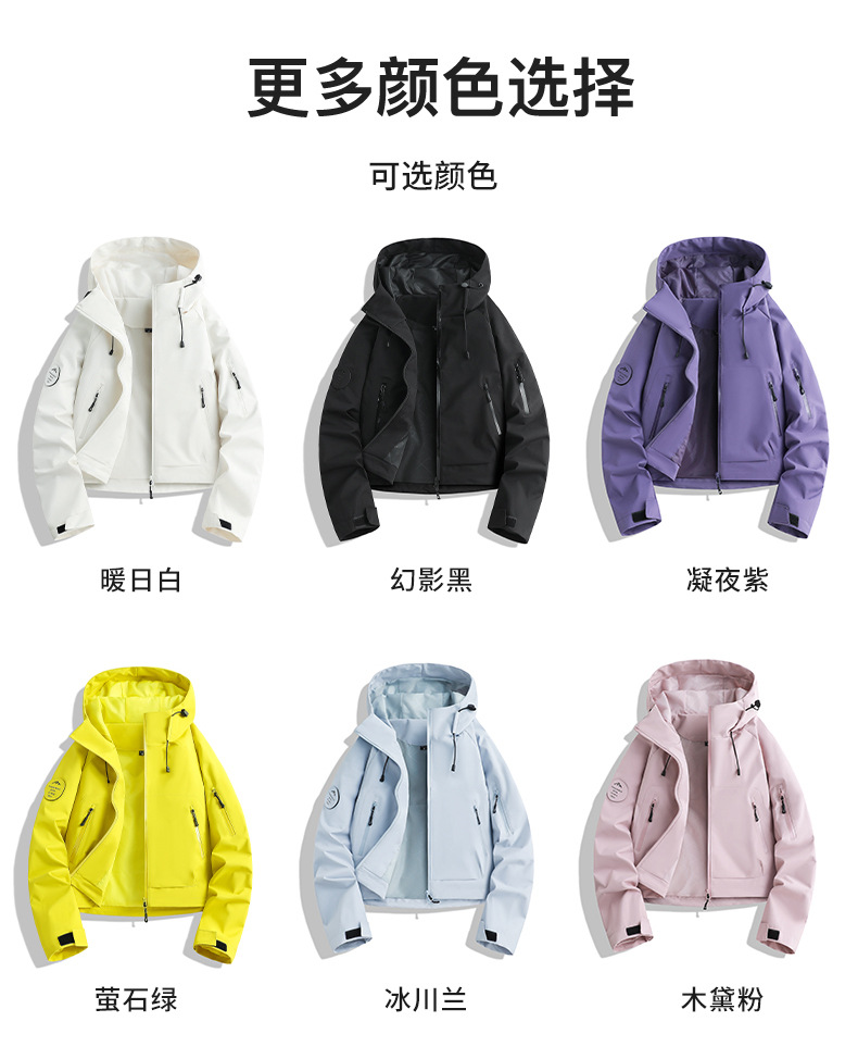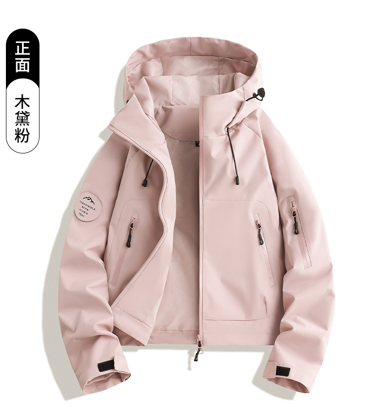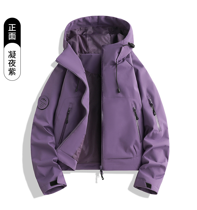 百媚生 户外女休闲冲锋衣运动紫色连帽登山服短款外套2689