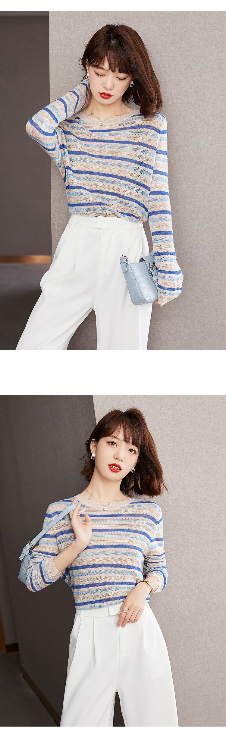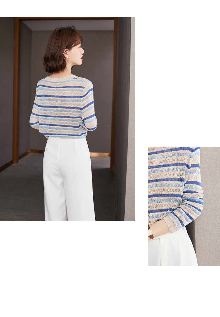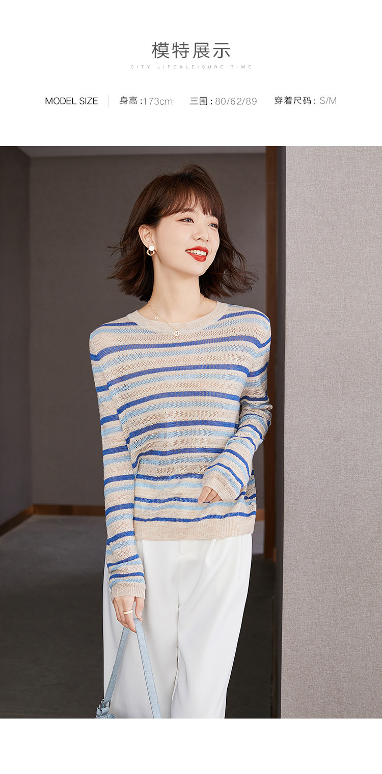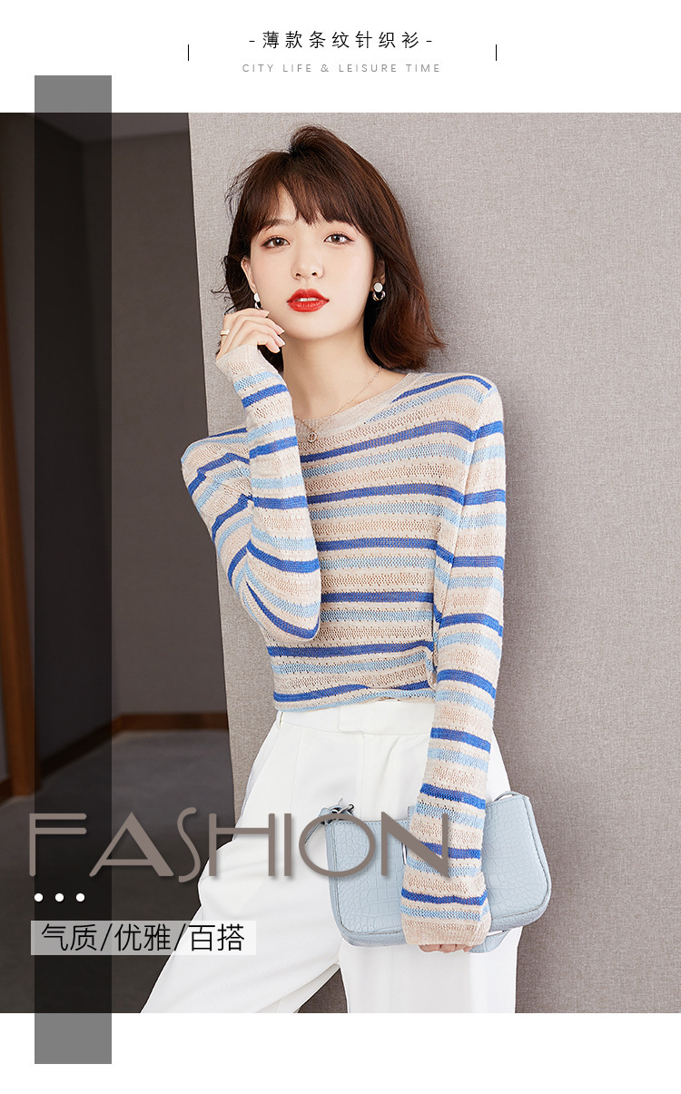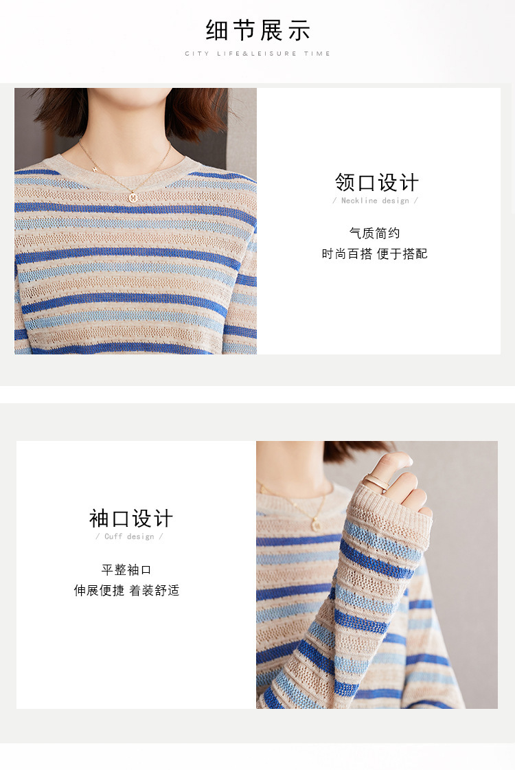 雀说新款镂空条纹针织衫防晒衣女装设计感洋气撞色拼接上衣AL37045