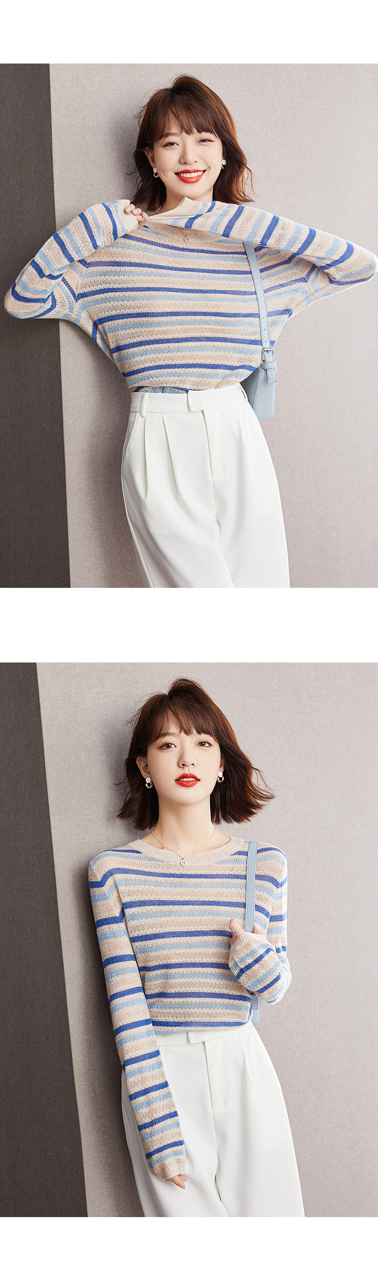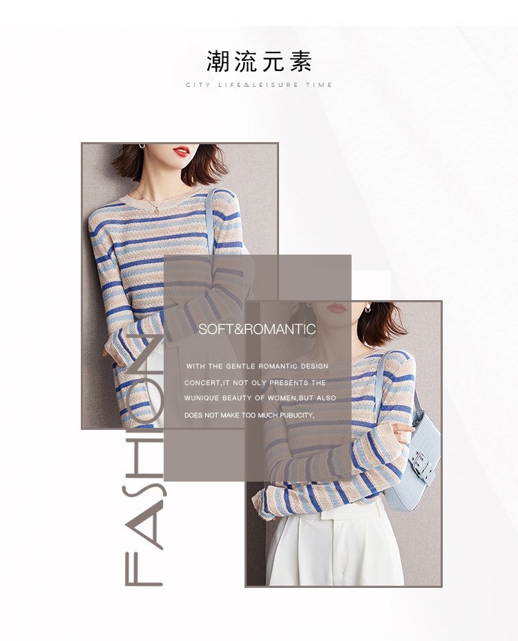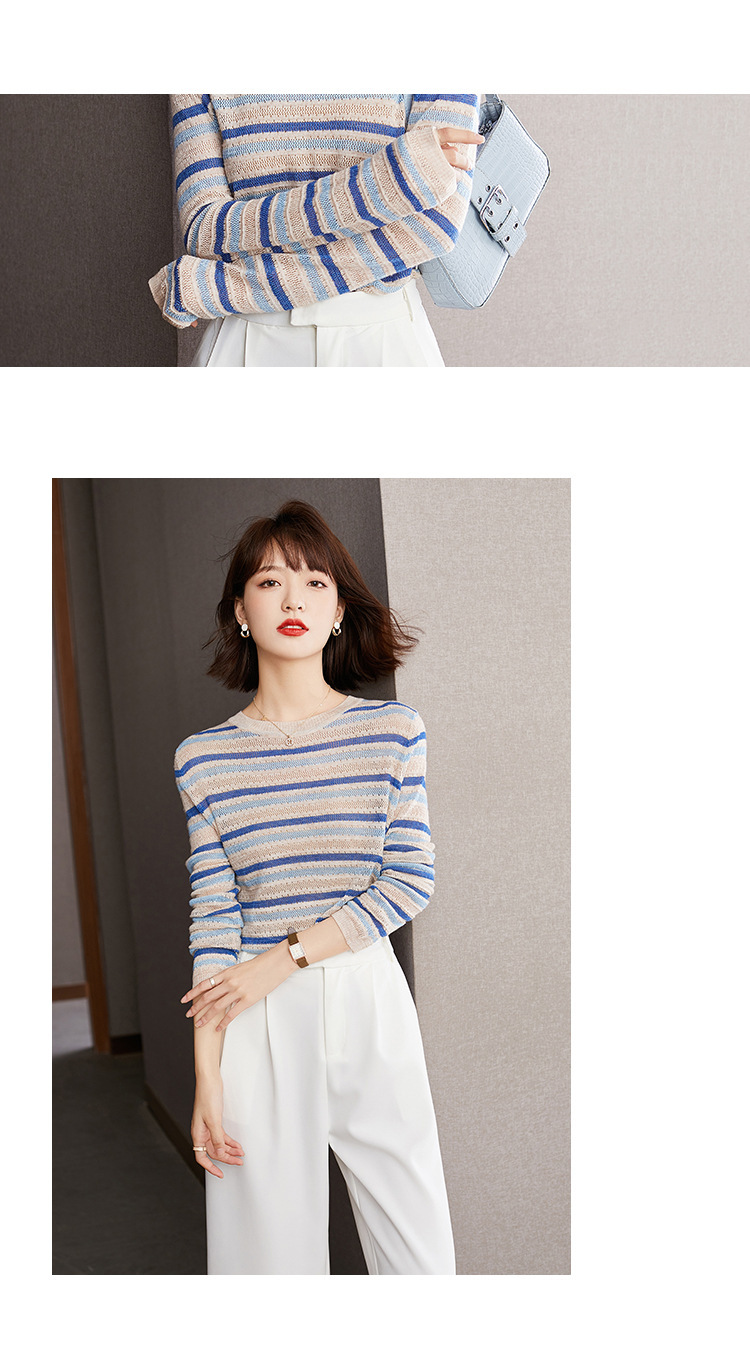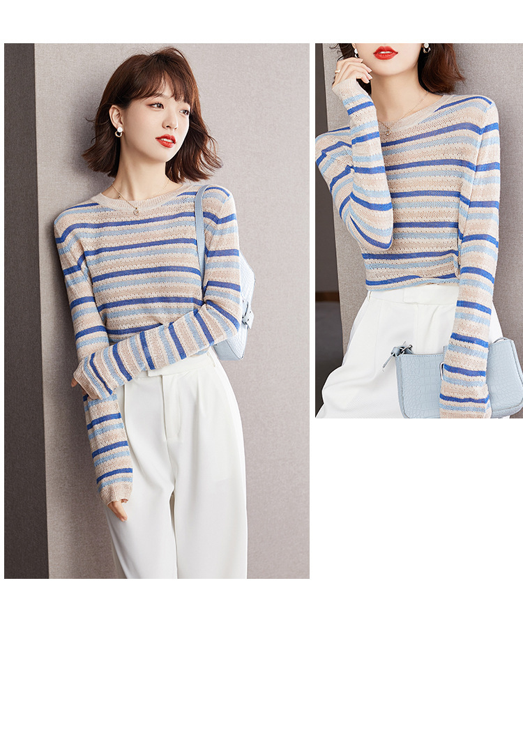 雀说新款镂空条纹针织衫防晒衣女装设计感洋气撞色拼接上衣AL37045
