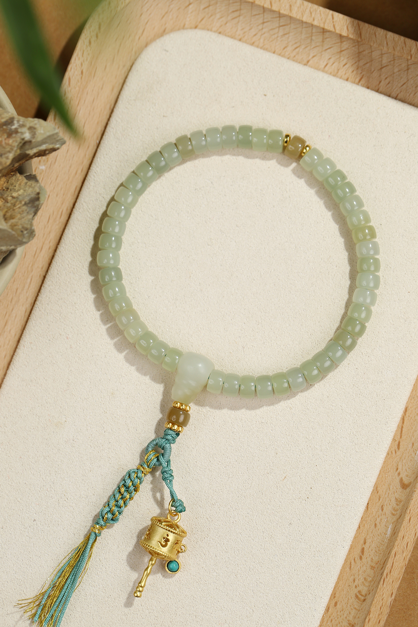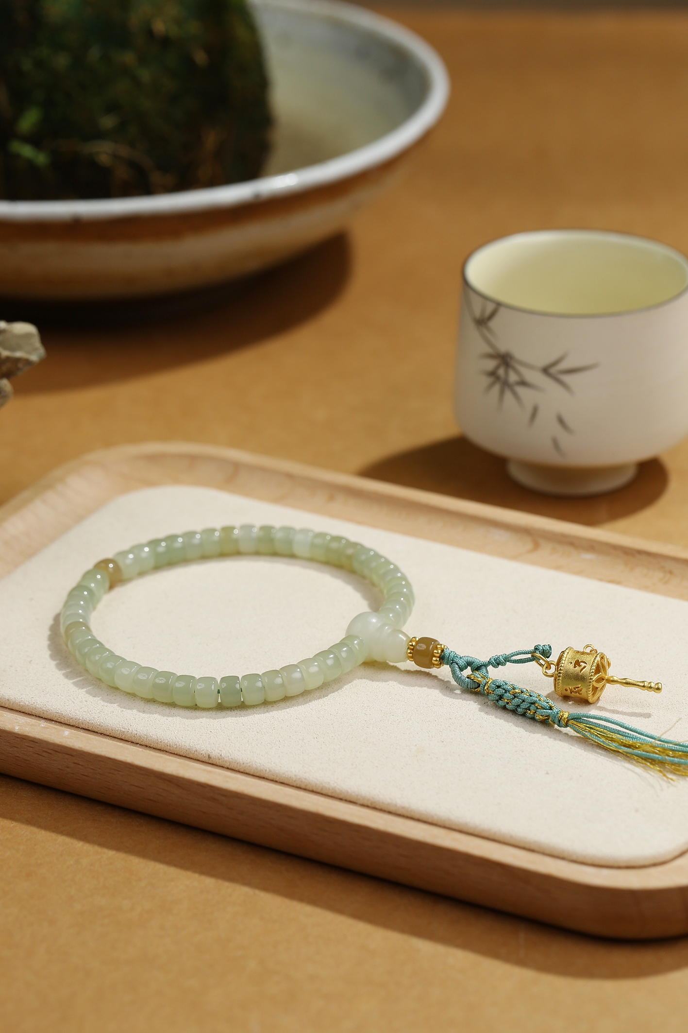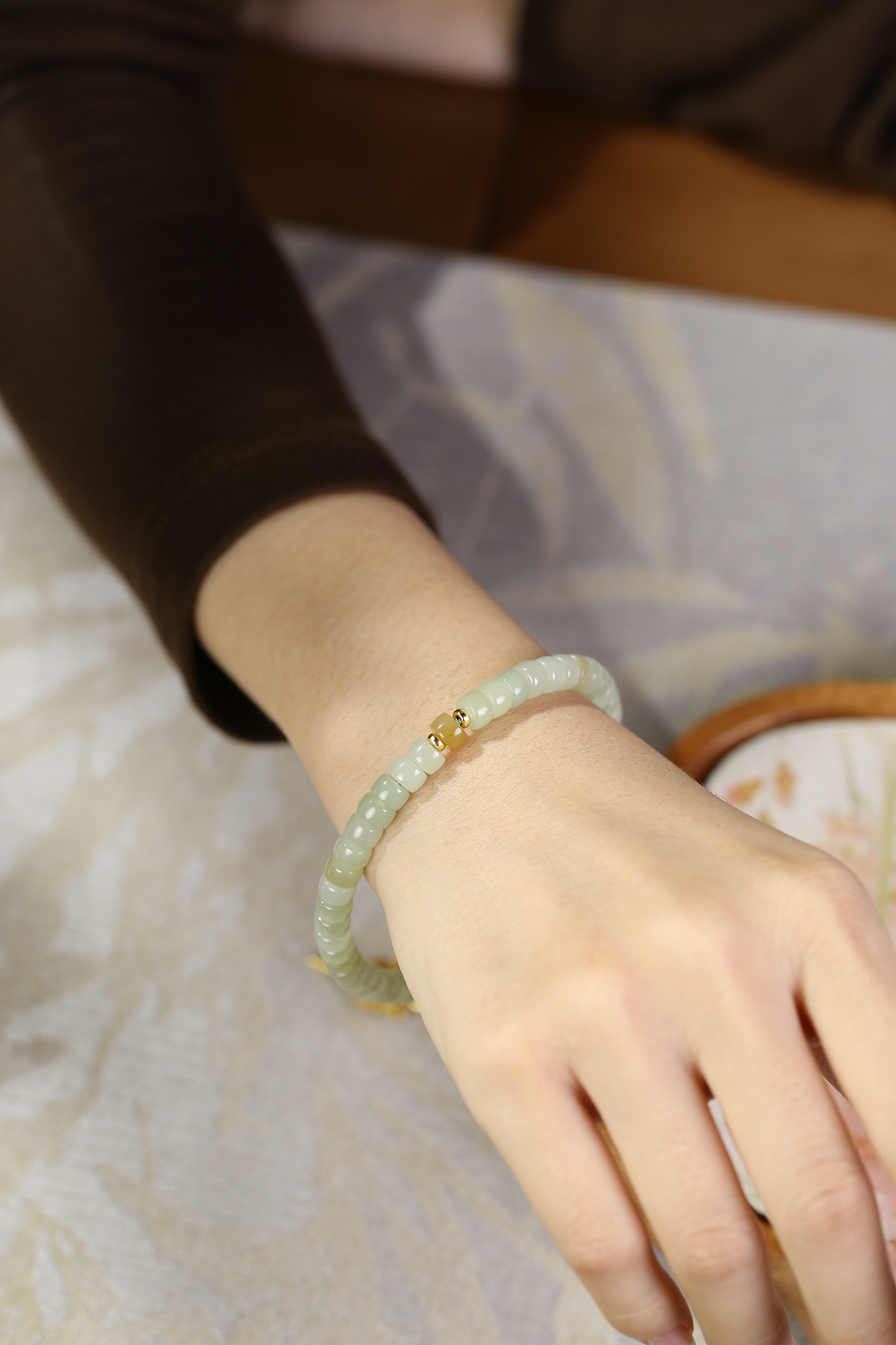 新疆料和田玉糖青白直切手链4*6mm