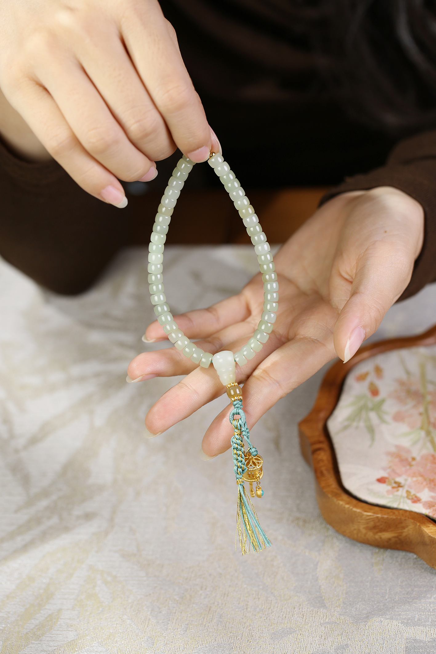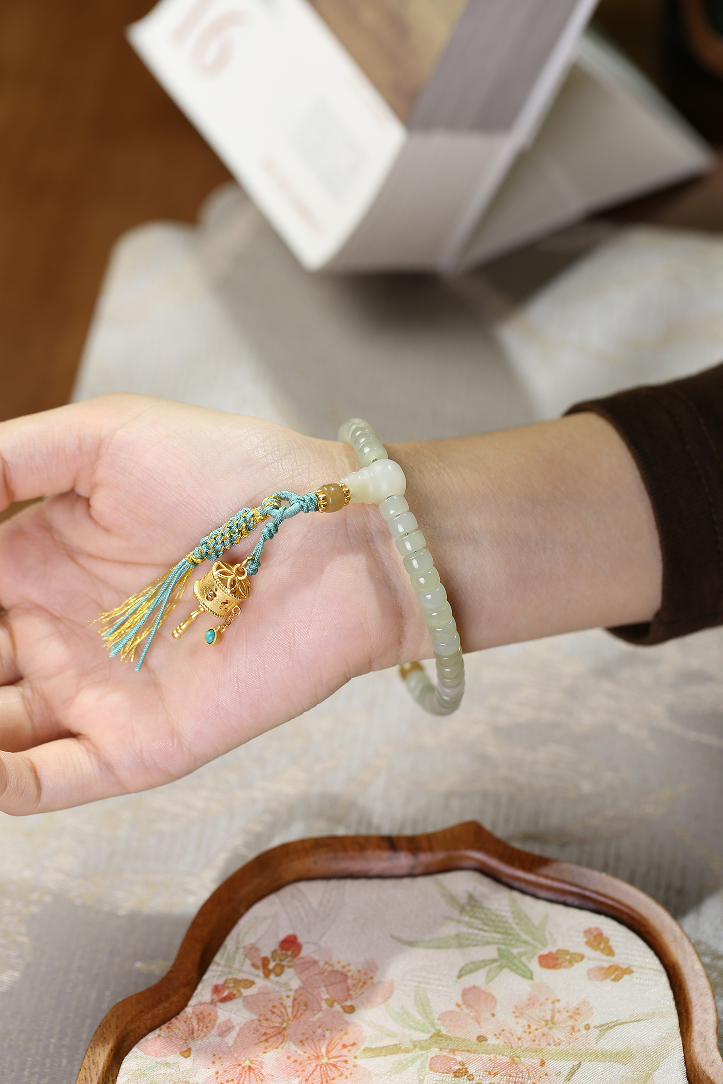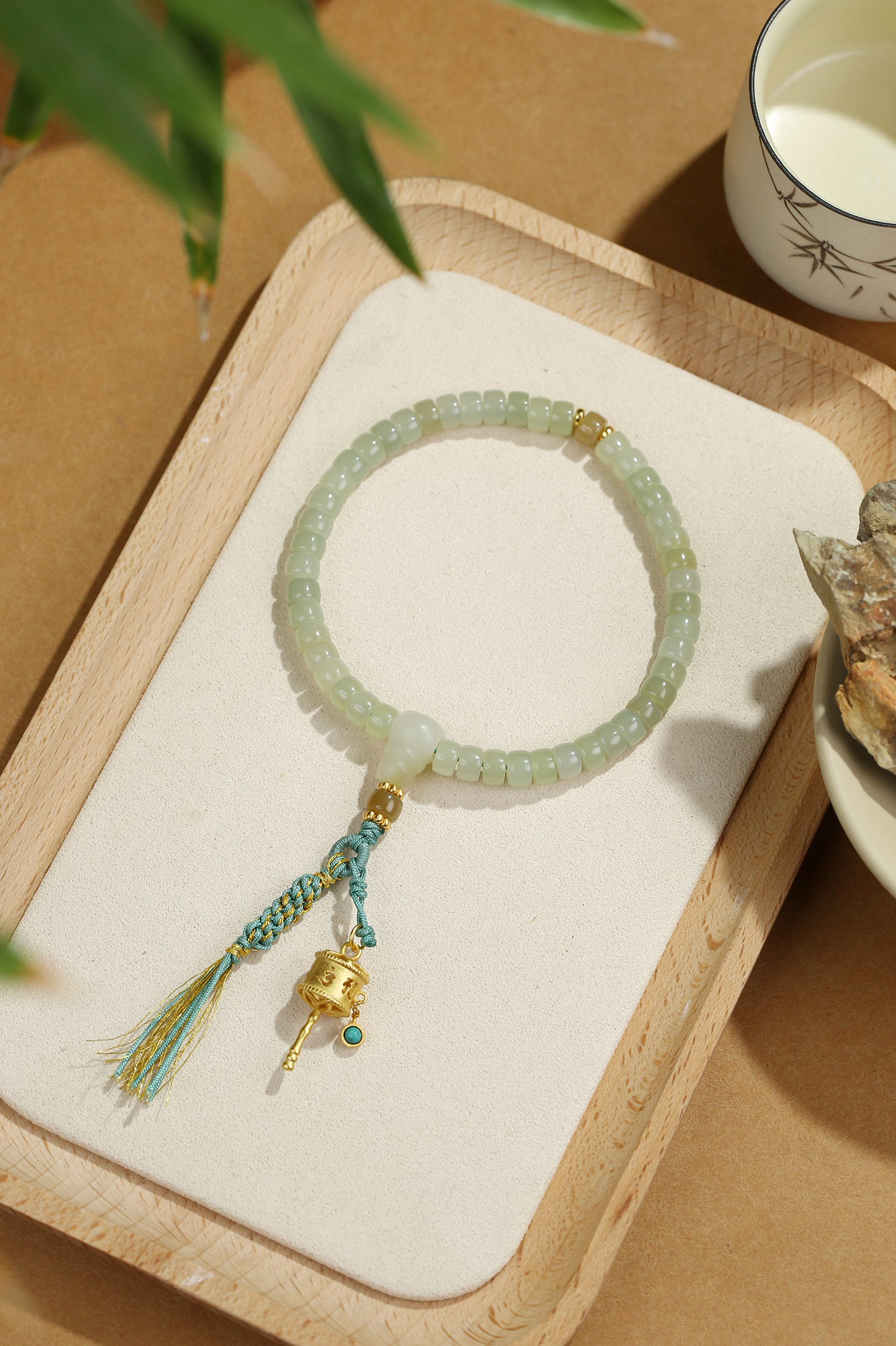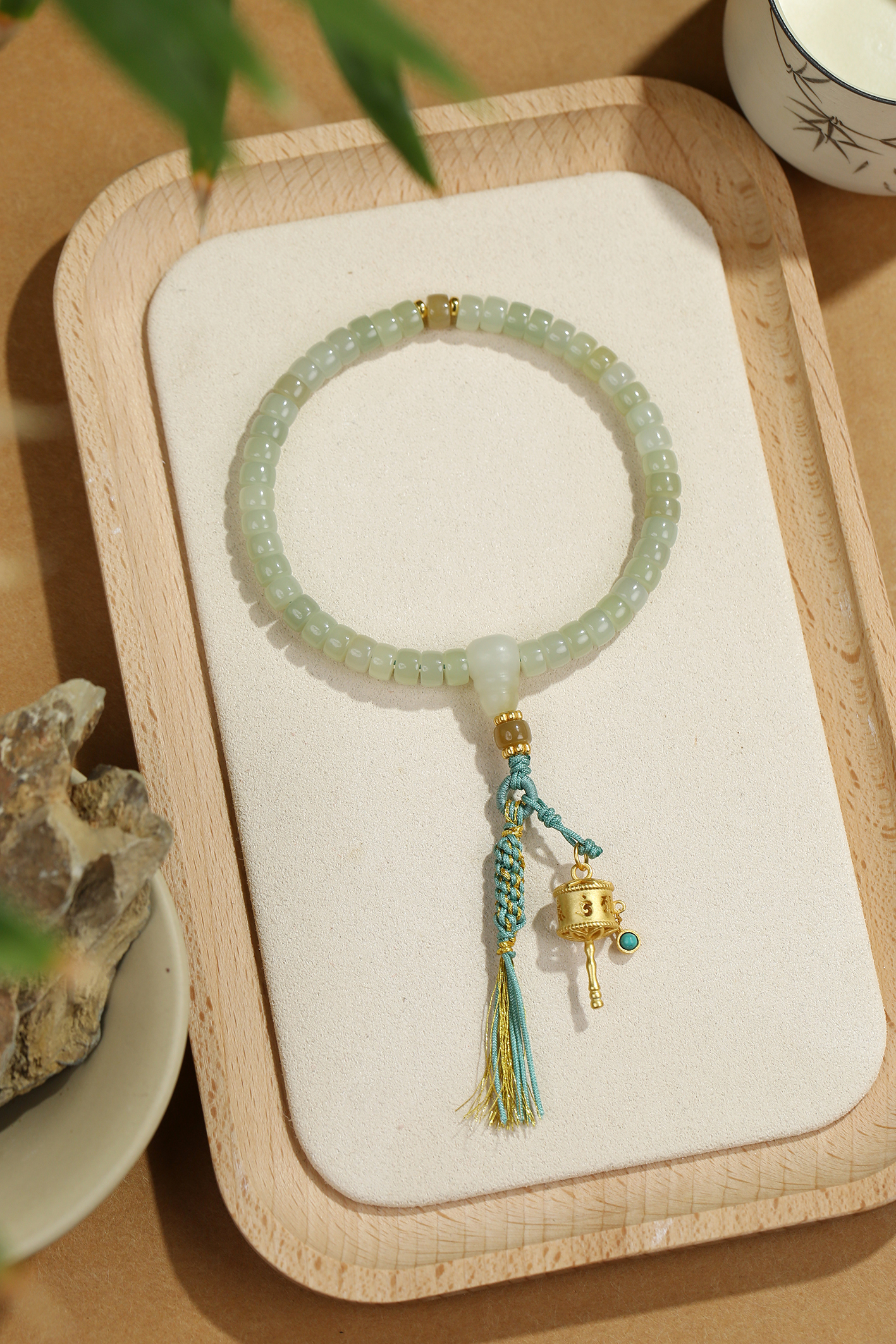 新疆料和田玉糖青白直切手链4*6mm