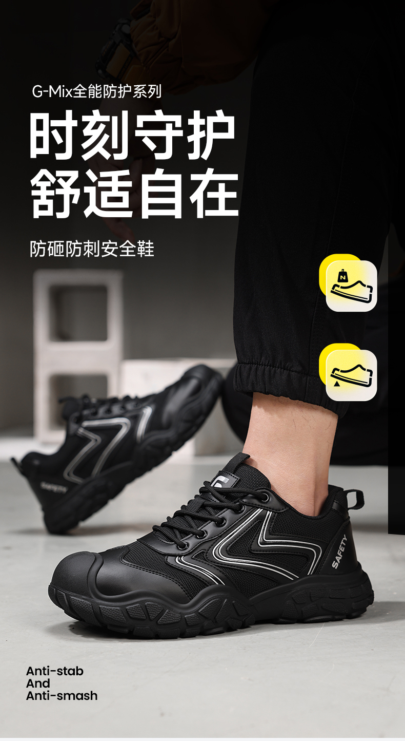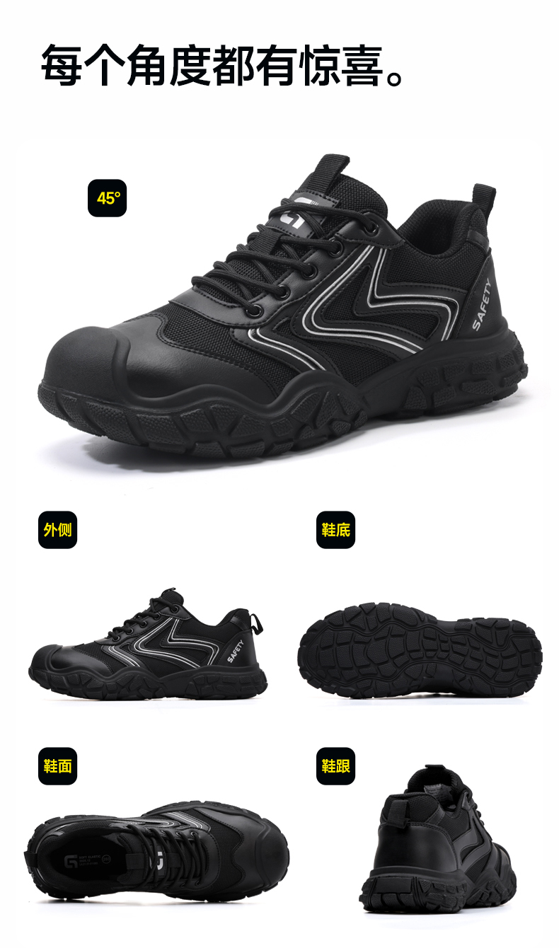 2026年新款安全鞋防砸防刺耐磨橡胶底4.0凯夫拉低帮经典黑色百搭
