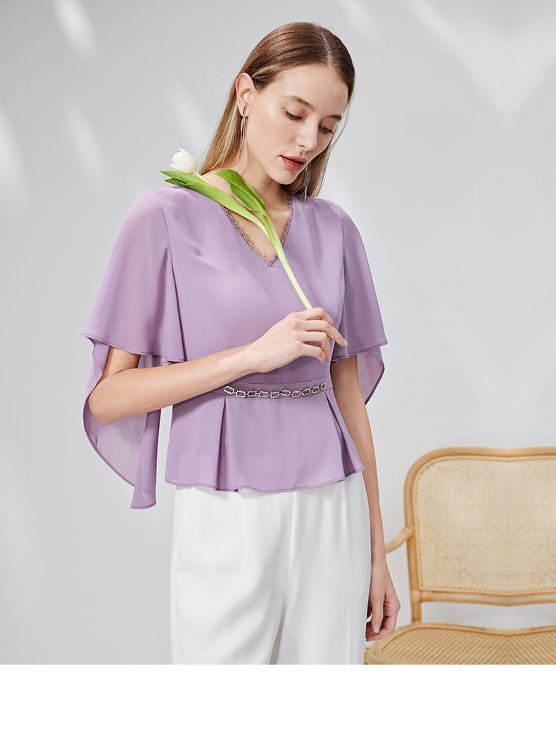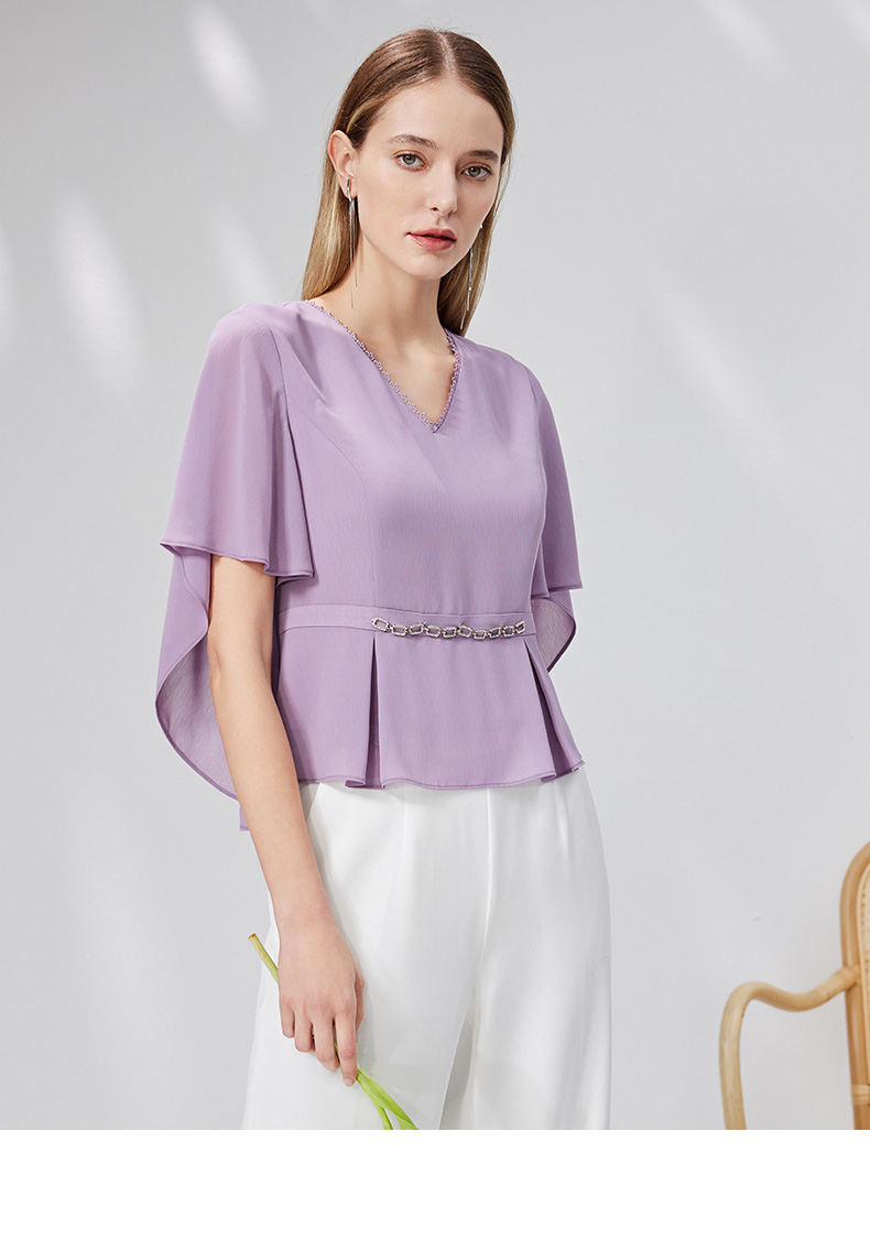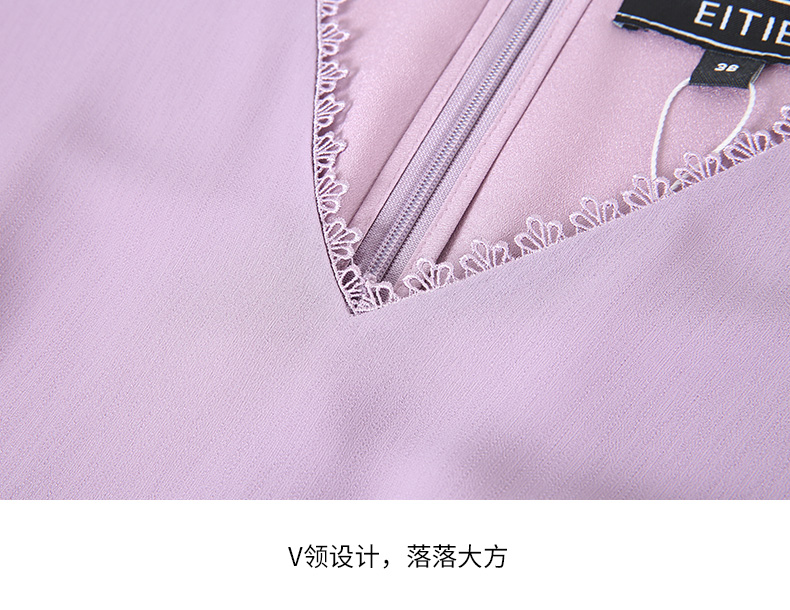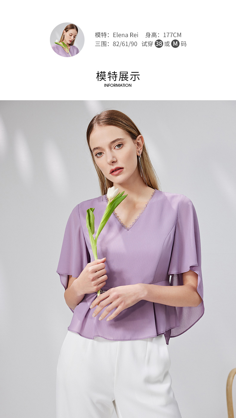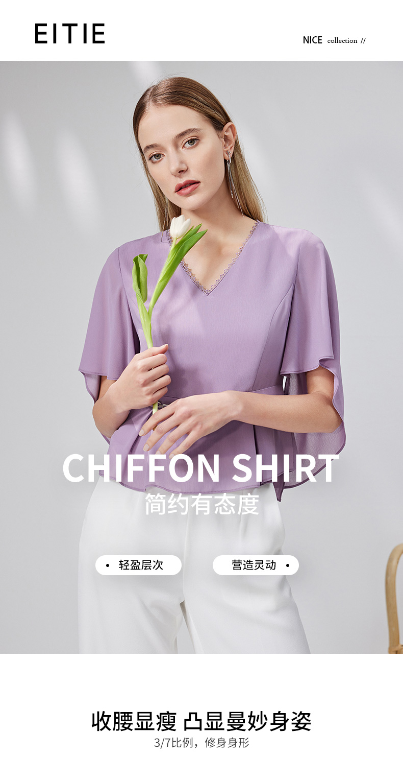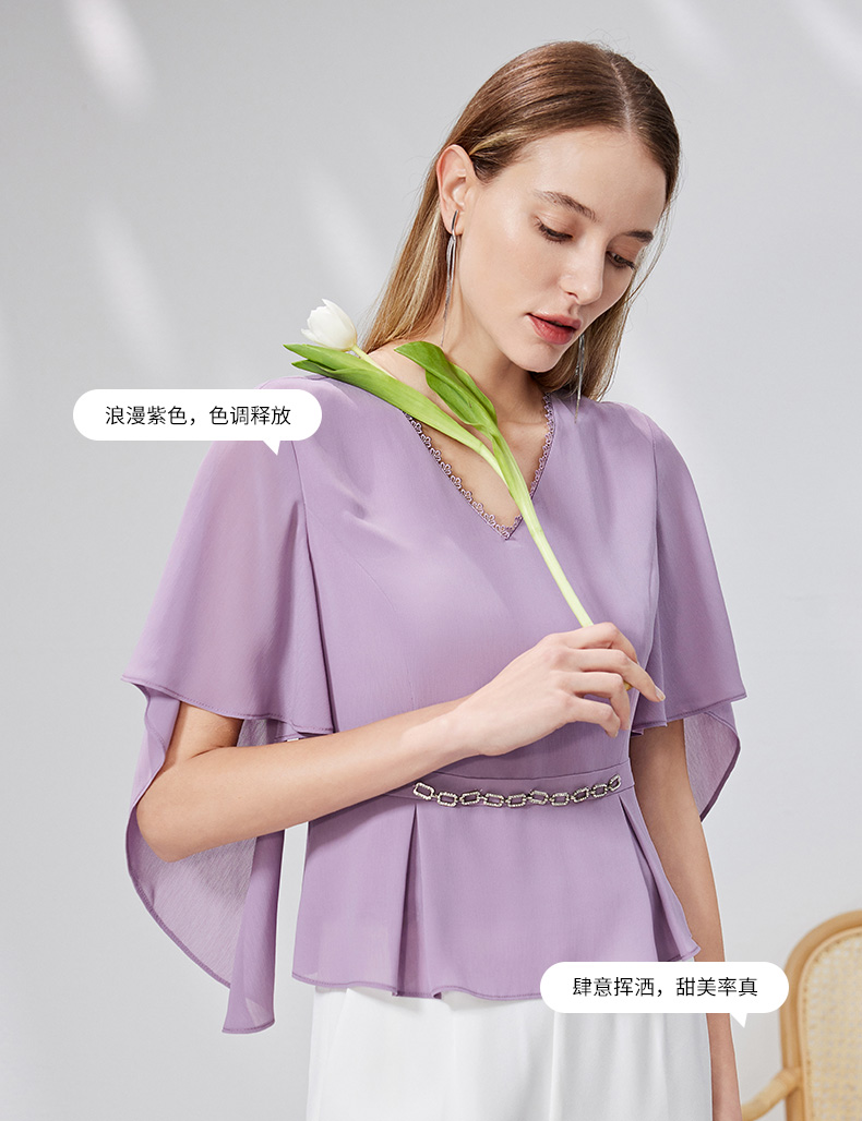 EITIE爱特爱温柔飘逸V领收腰小上衣紫色气质通勤显瘦夏新款B13128