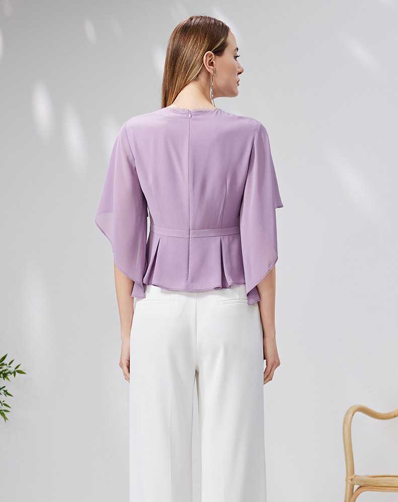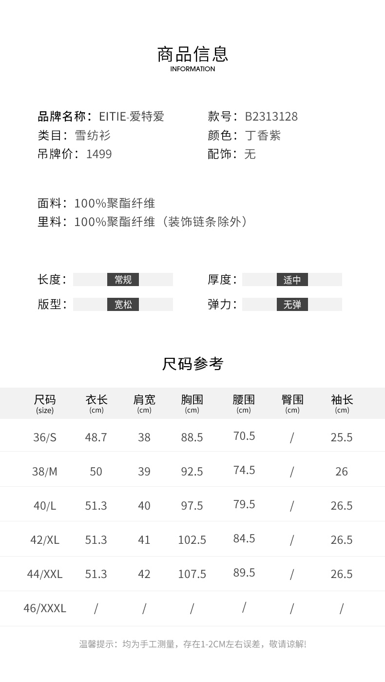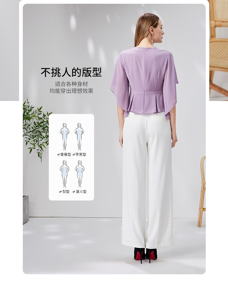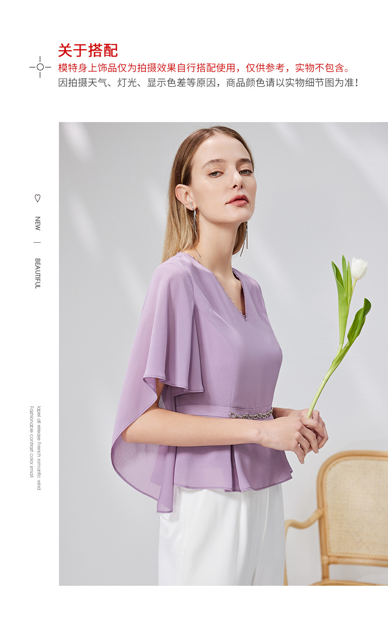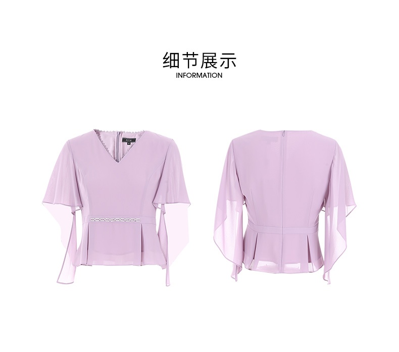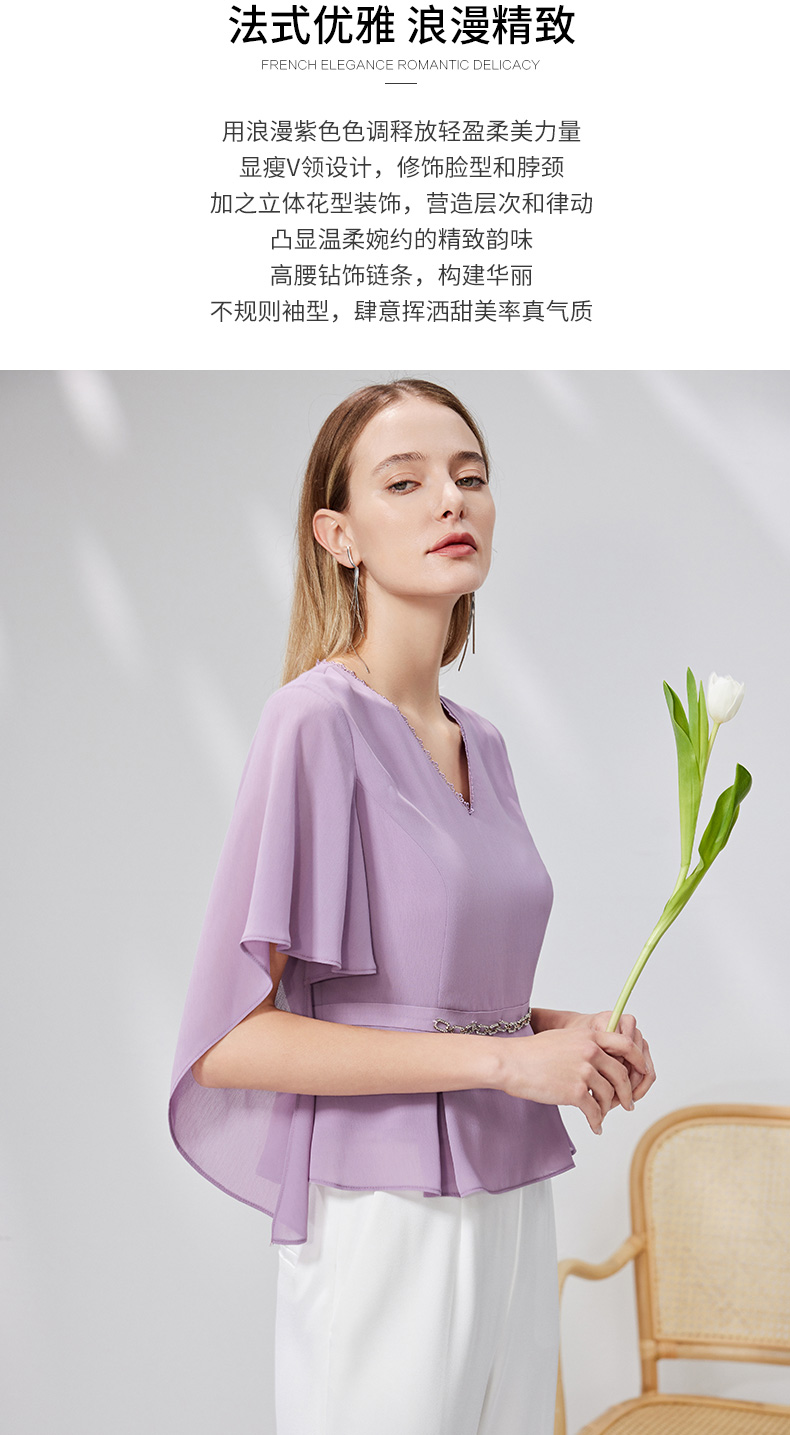 EITIE爱特爱温柔飘逸V领收腰小上衣紫色气质通勤显瘦夏新款B13128