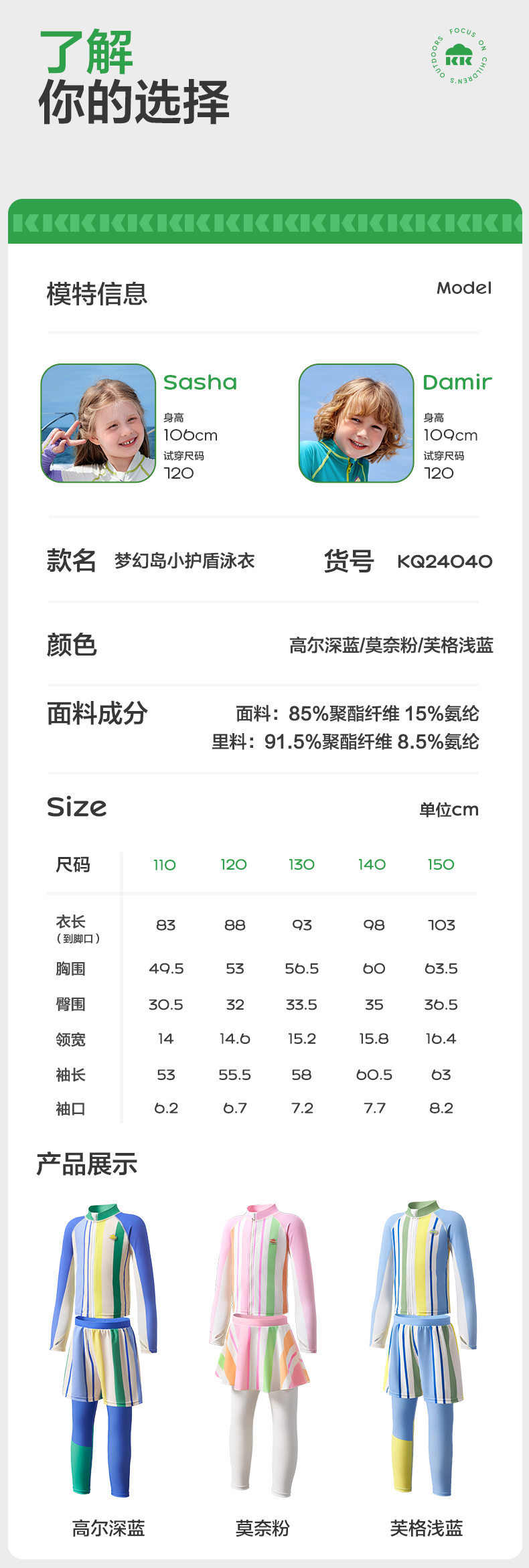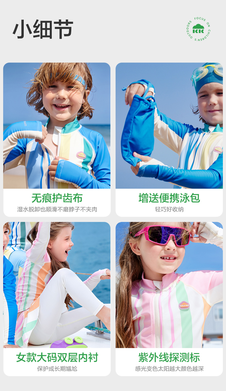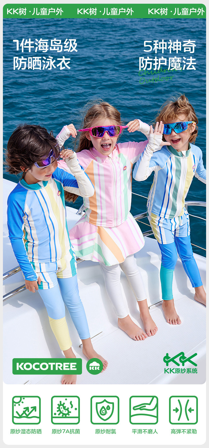 KK树专业儿童泳衣长袖男童女孩分体游泳裤2024新款防晒中大童套装梦幻岛小护盾泳衣