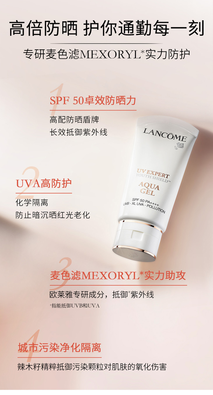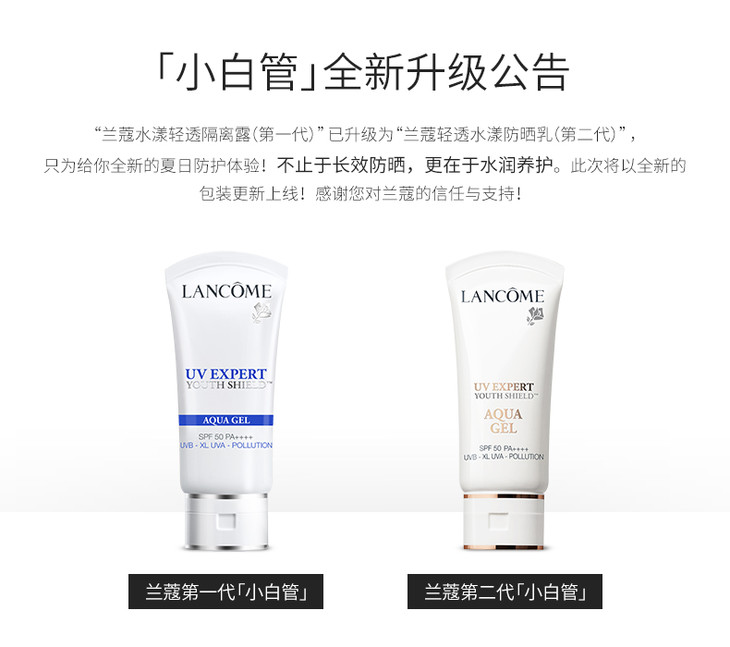 兰蔻轻透水漾防晒乳50ml UV小白管 空气感防晒