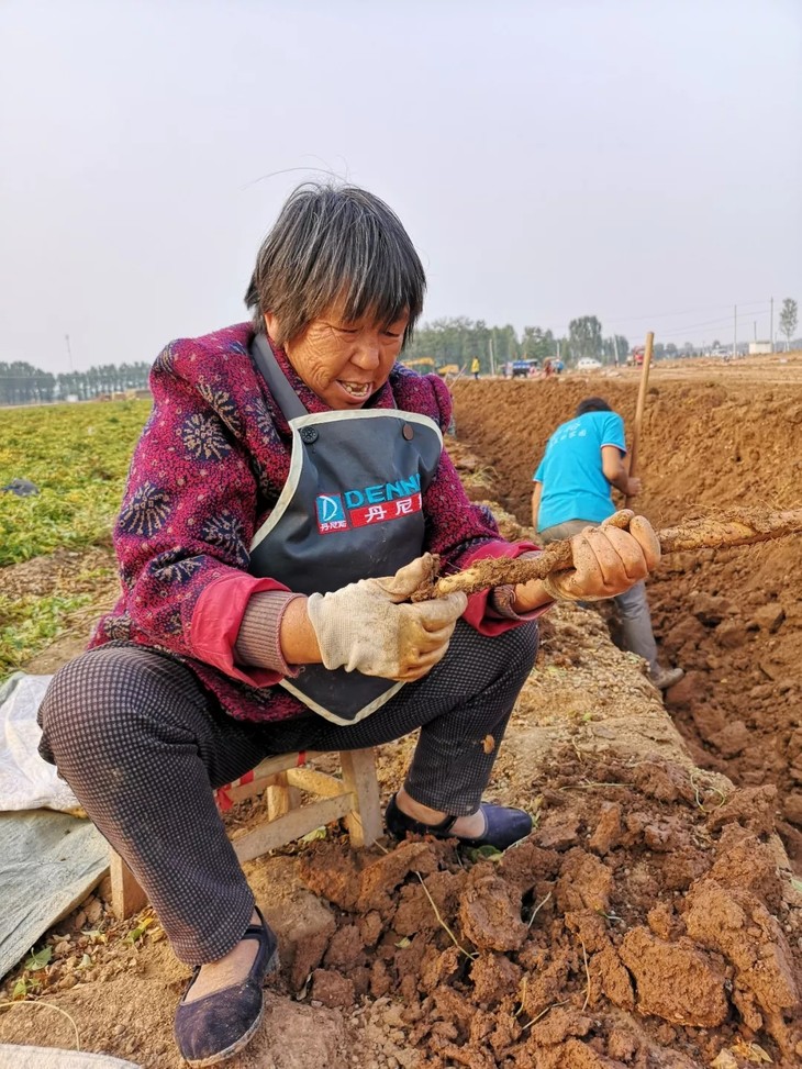 种植户大娘还说到,这山药不好挖,哪怕是有30年经验的老手都得小心翼翼。下手轻了,挖不出来,下手重了,山药断在土里就不值钱了。