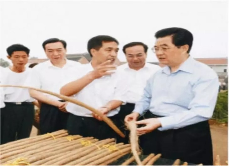 胡锦涛主席2008年在河南焦作 参观铁棍山药生产基地、