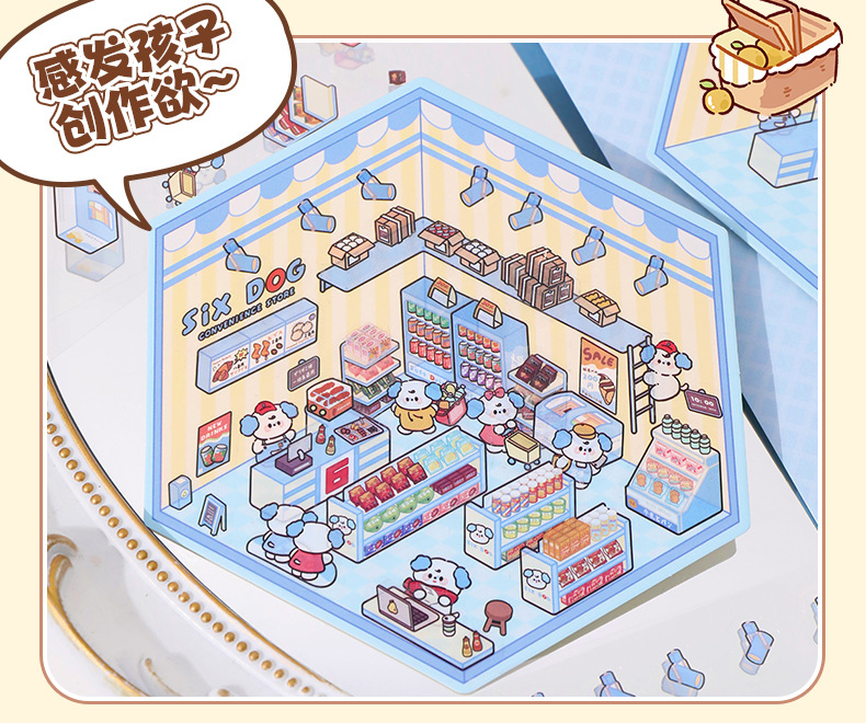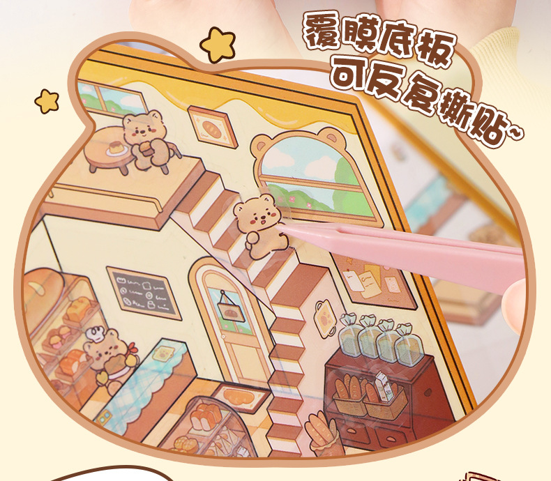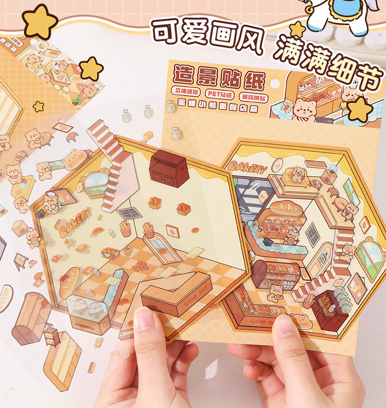【自带精准模切!贴就完事儿】越玩越上头,韩系卡通造景贴纸可爱视觉3D立体小屋小红书解压造景场景手帐贴纸。ra