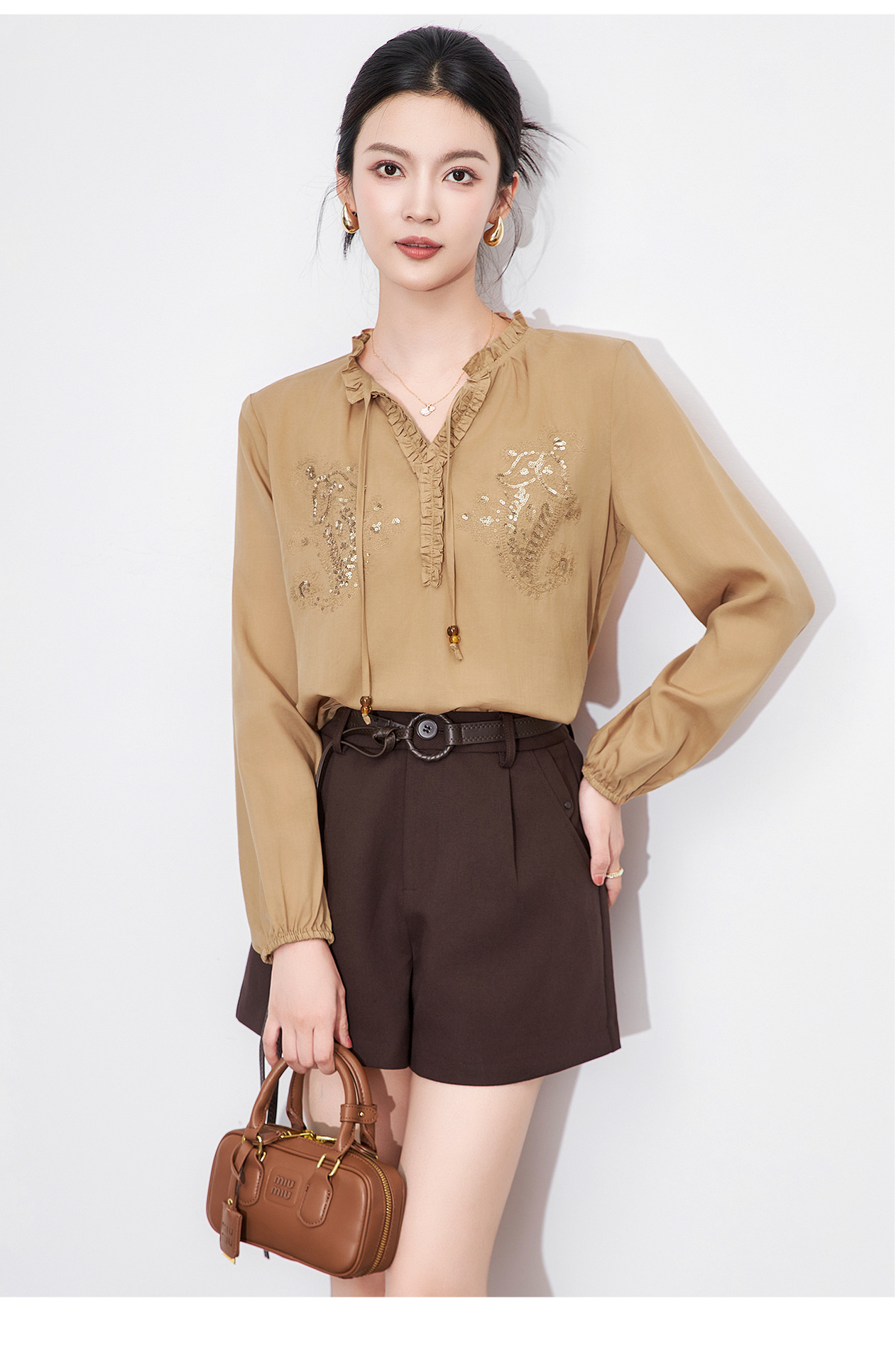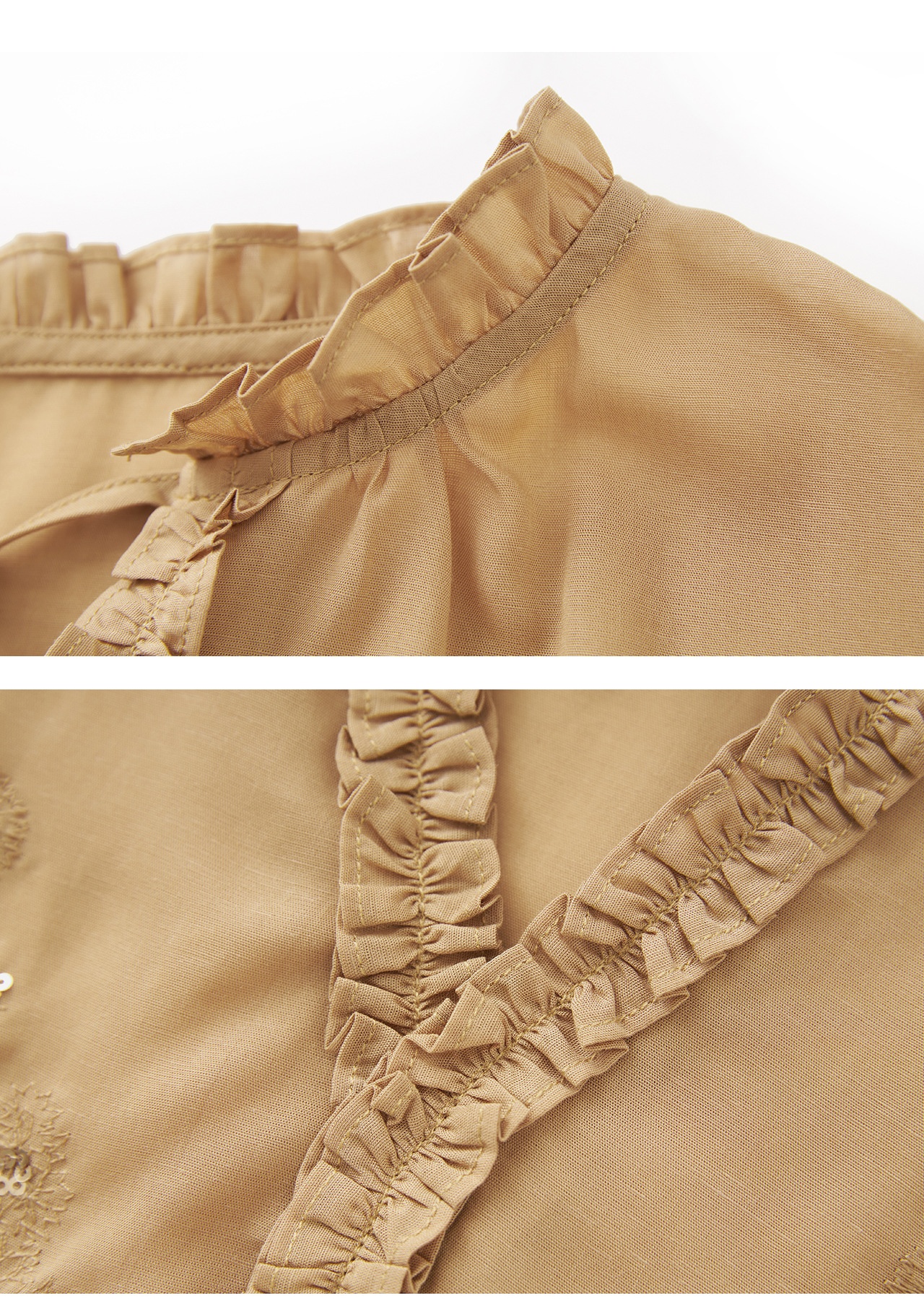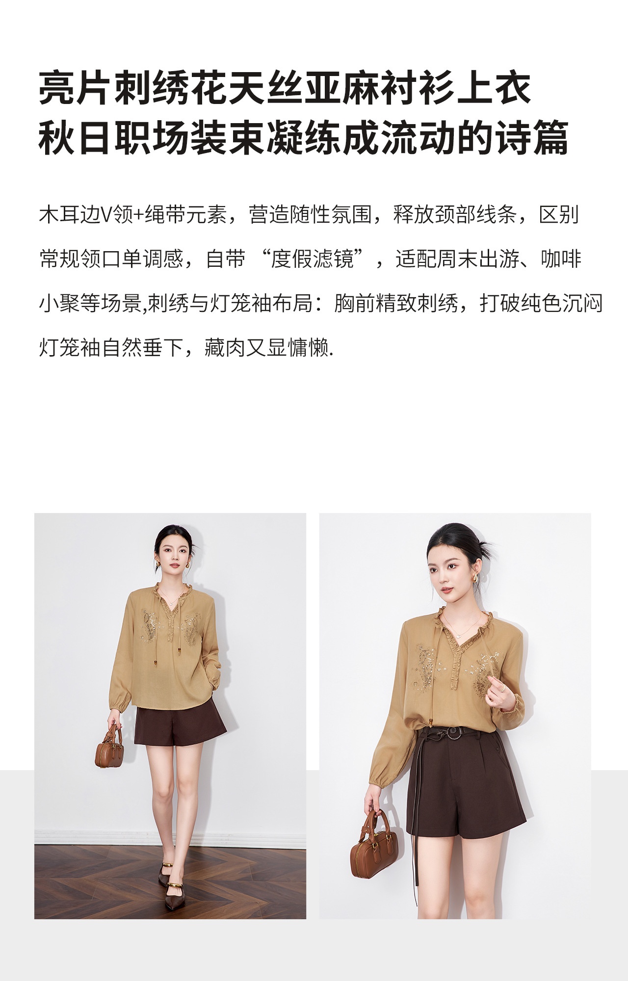 「高货wl」全新升级【铂金会员293/天猫389/差价96】(20420)洛诗琳法式重工亮片刺绣木耳边衬衫2025秋季百搭V领衬衫