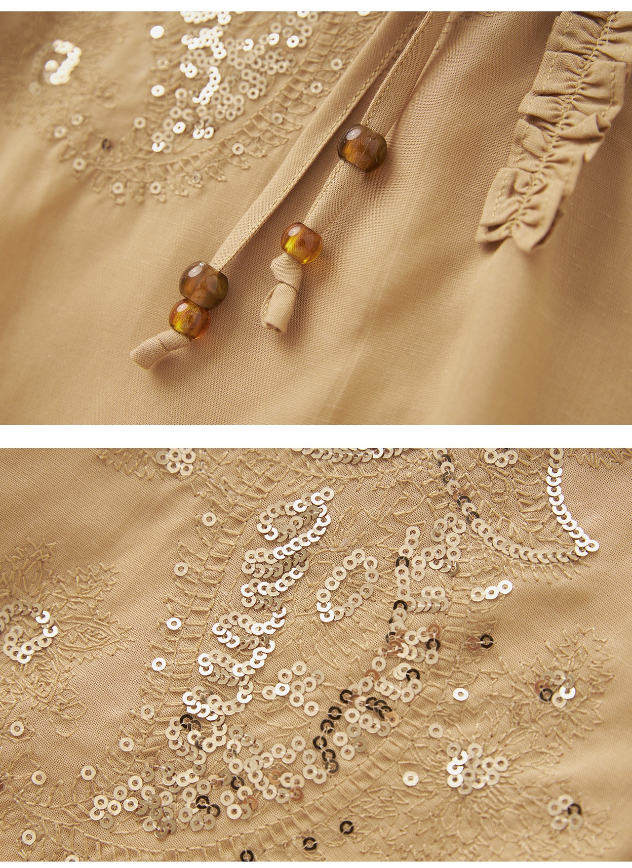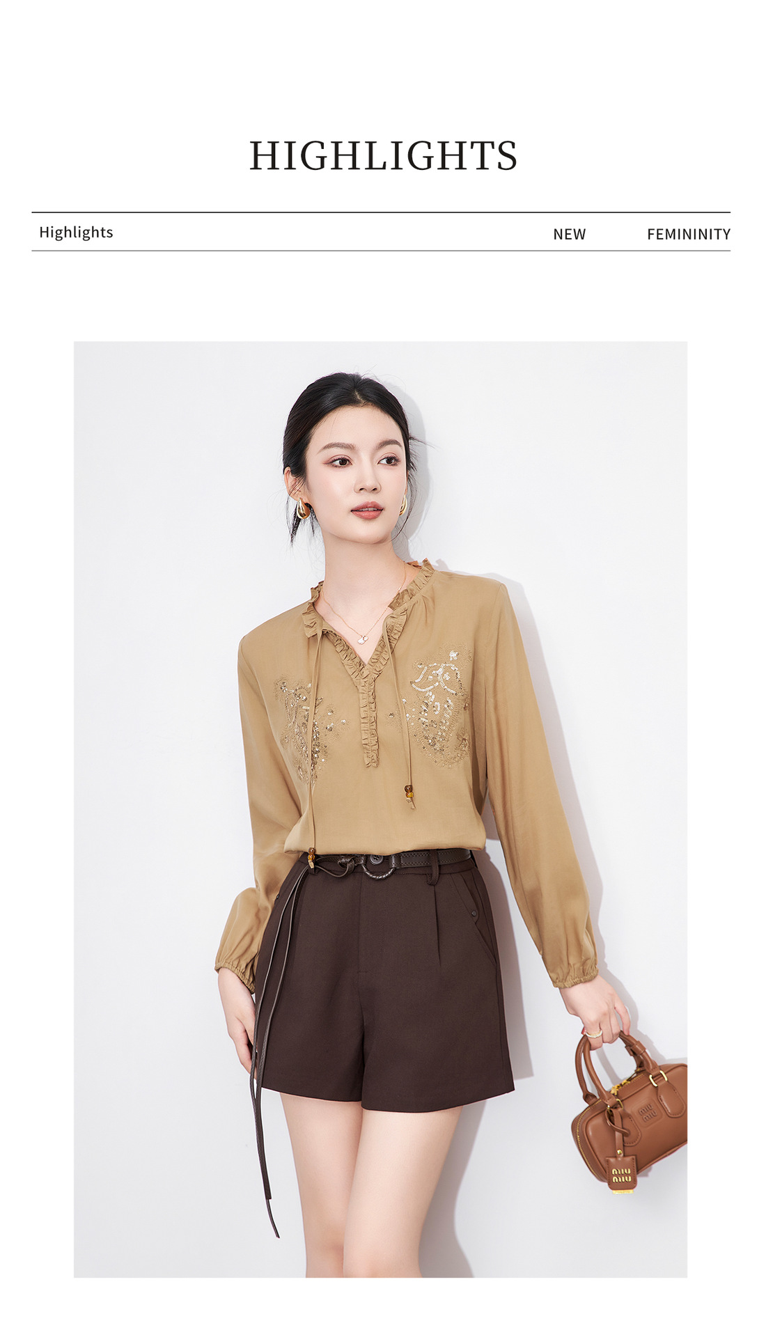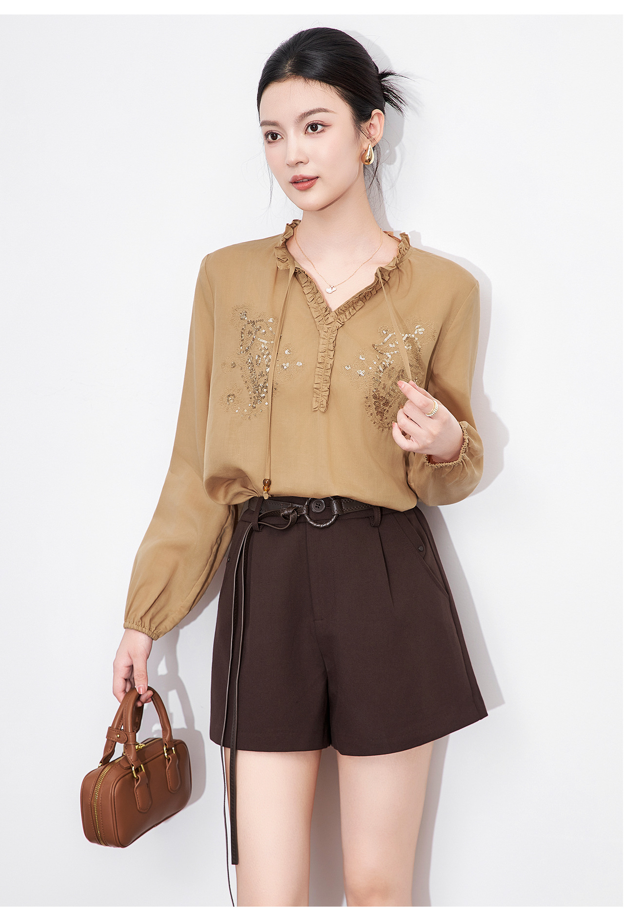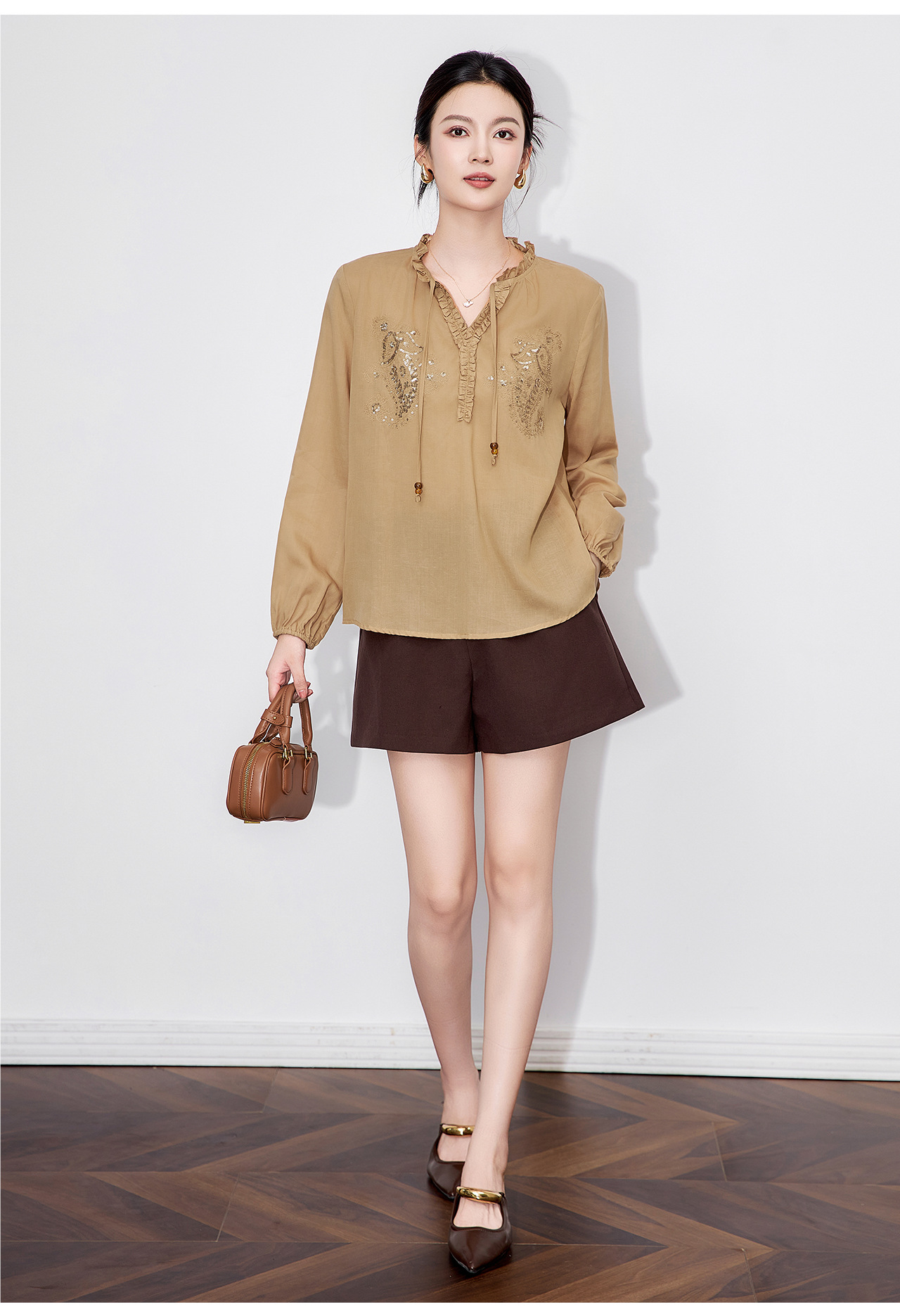 「高货wl」全新升级【铂金会员293/天猫389/差价96】(20420)洛诗琳法式重工亮片刺绣木耳边衬衫2025秋季百搭V领衬衫
