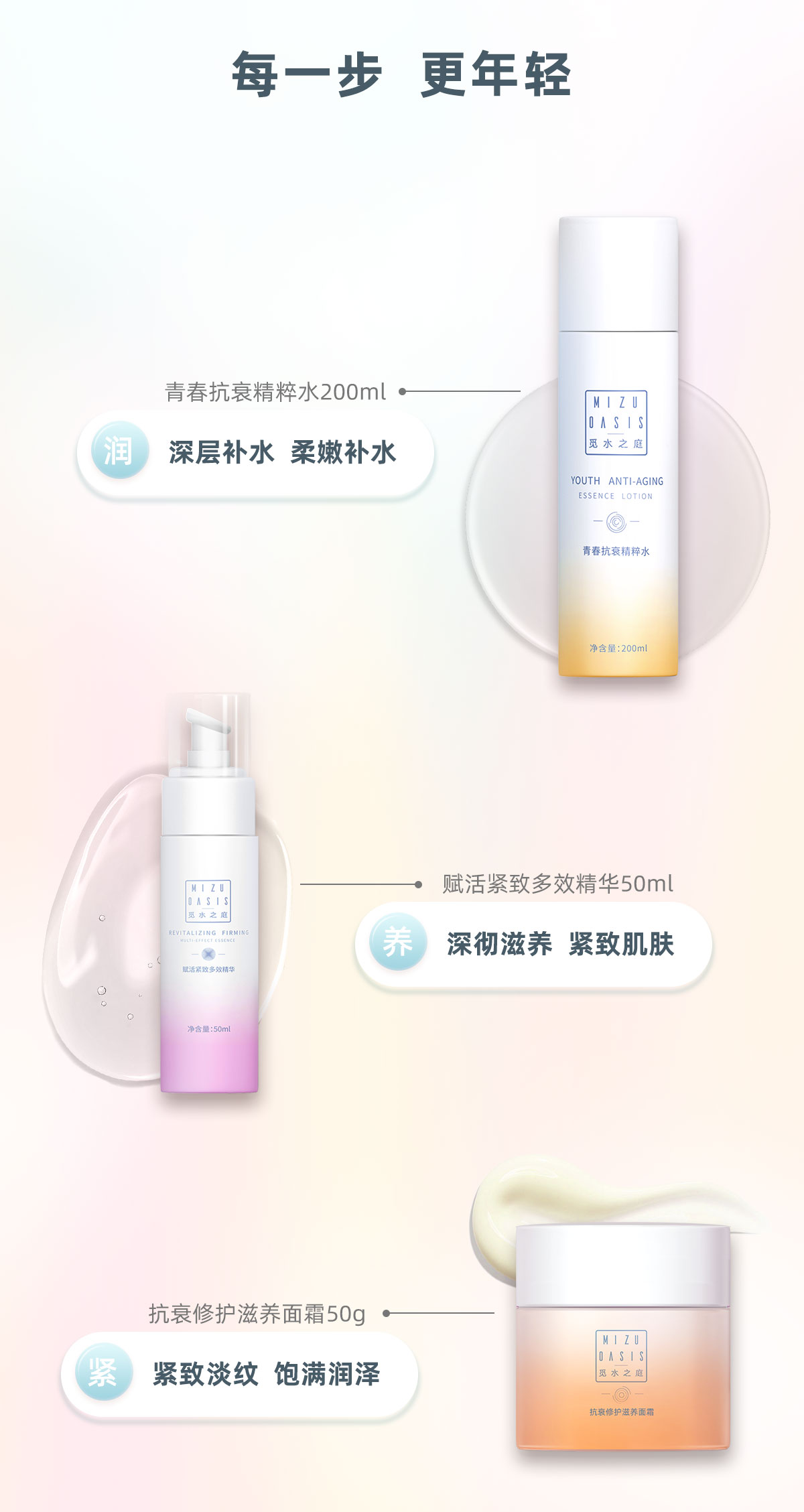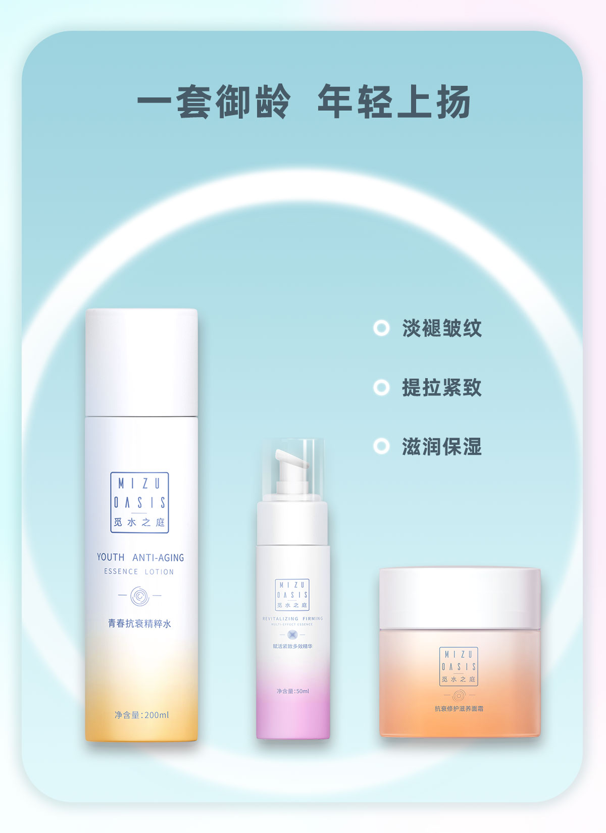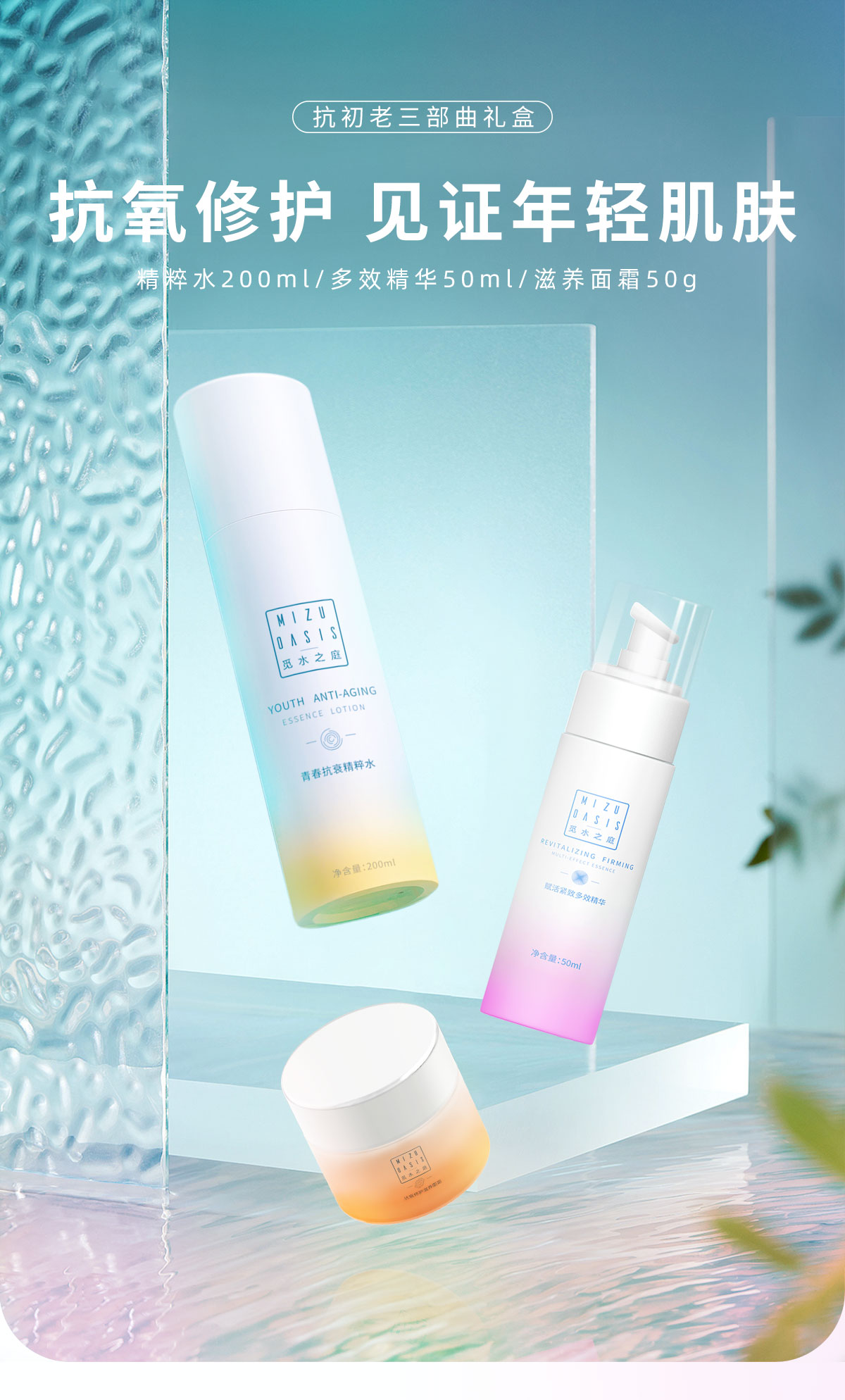 【抗初老三部曲】MIZUOASIS/觅水之庭抗衰修护三件套精粹水+精华液+面霜