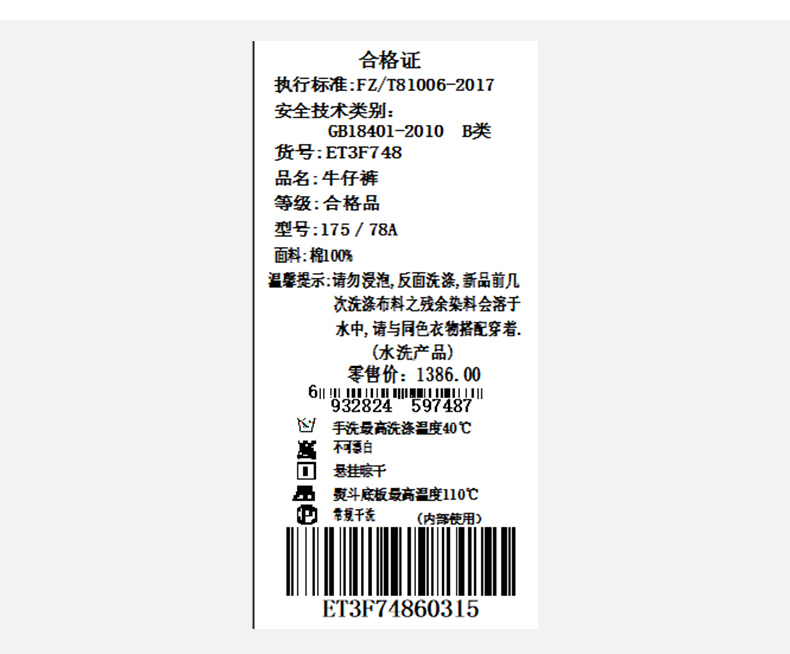 乔万尼时尚新品直筒裤牛仔裤ET3F748