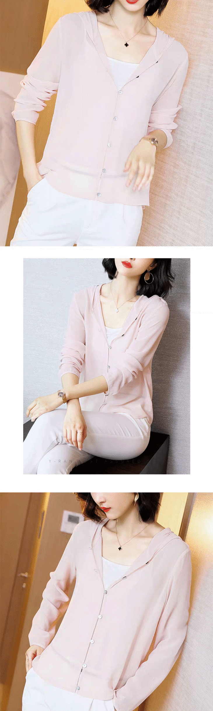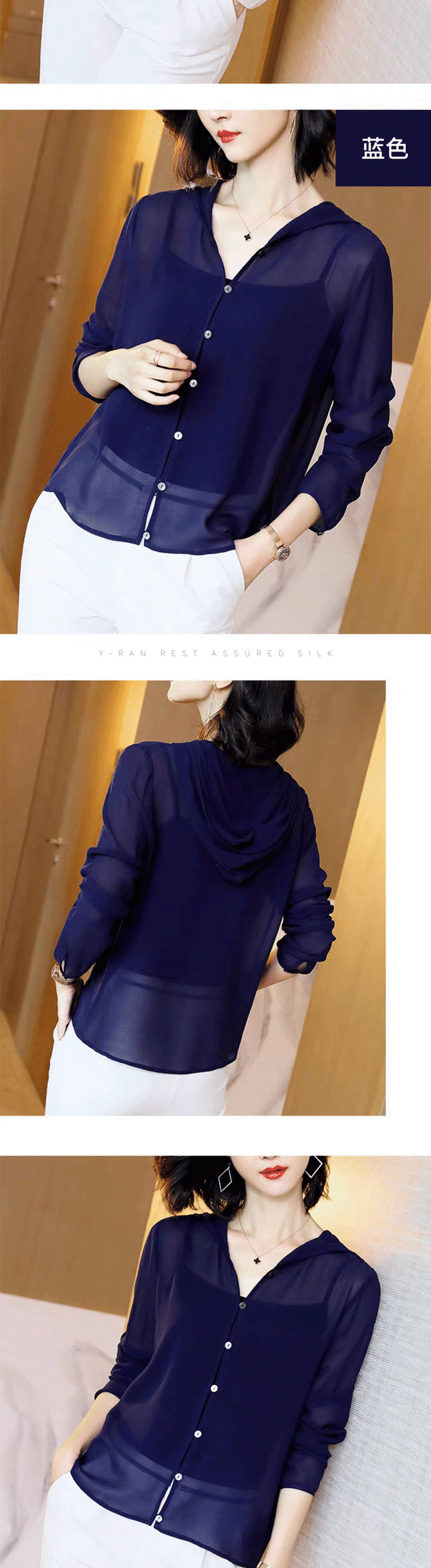 丁摩 纯色真丝开衫连帽衬衫小外套19-137-HS-DB399240531