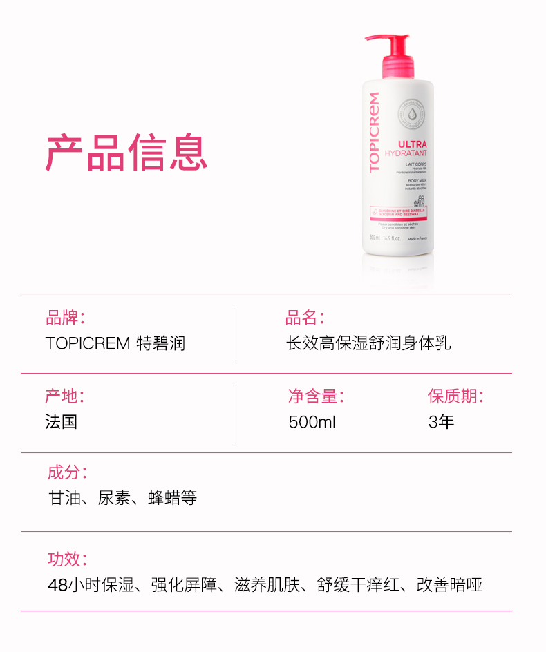 10%高纯度甘油 宝宝&全家可用 高保湿身体乳500ml 特碧润 国内发货
