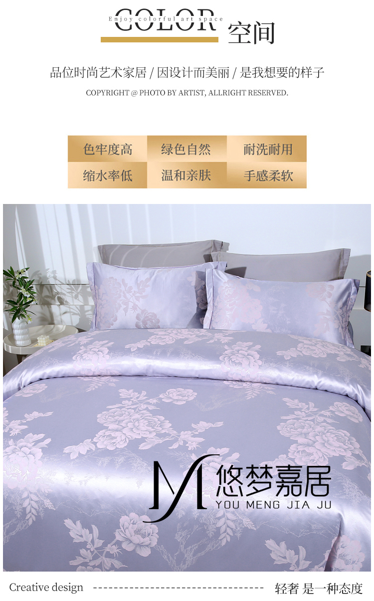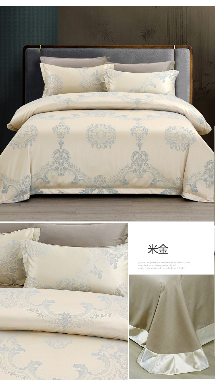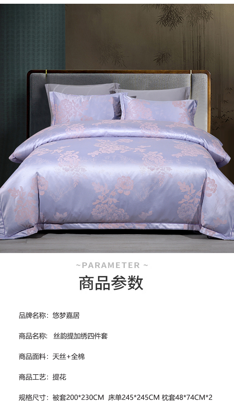 丝韵提加绣四件套【悠梦嘉居奢华提加绣四件套,优质丝+棉组合,配以优质古典工艺,贴肤部分为优质全棉,可折叠裙边设计,尽显奢华1.5/1.8床通用,米金/绸兰】