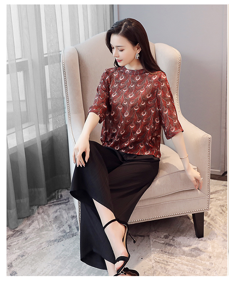 WZNH-DFYM69022夏新款欧美时尚大码系带上衣T恤+纯色阔腿裤套装