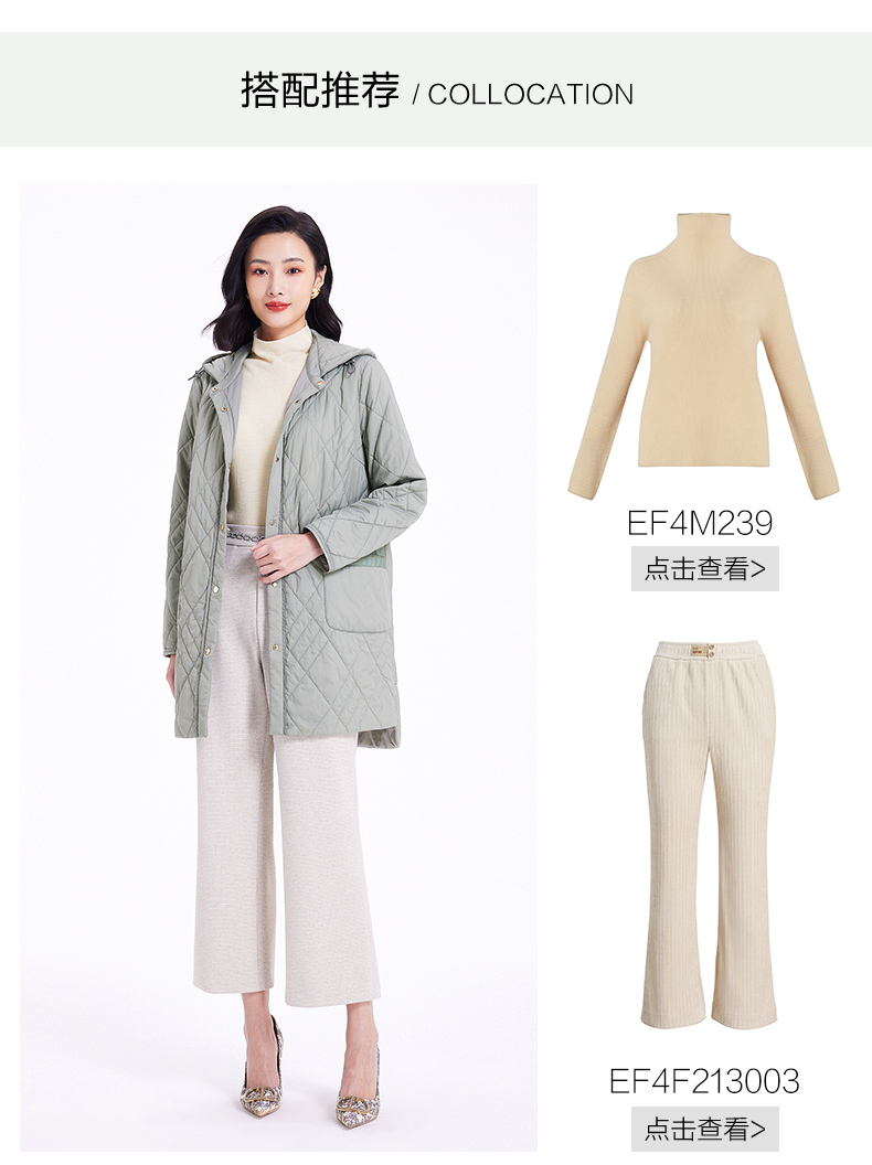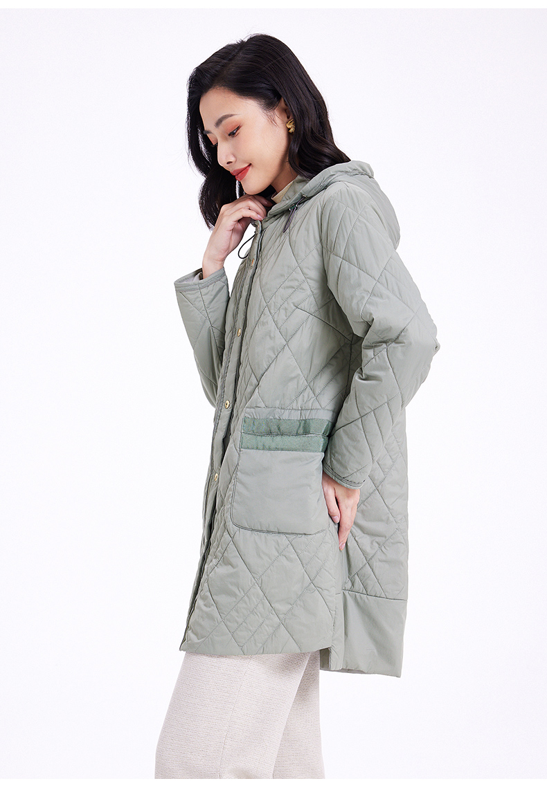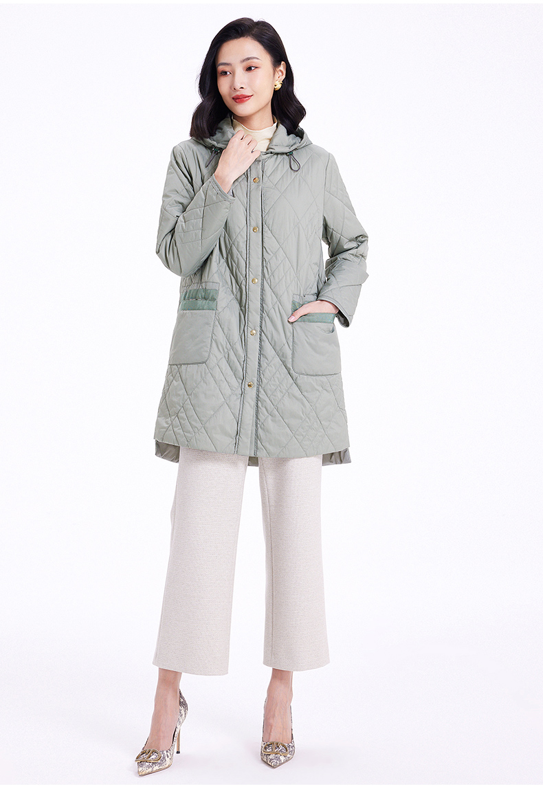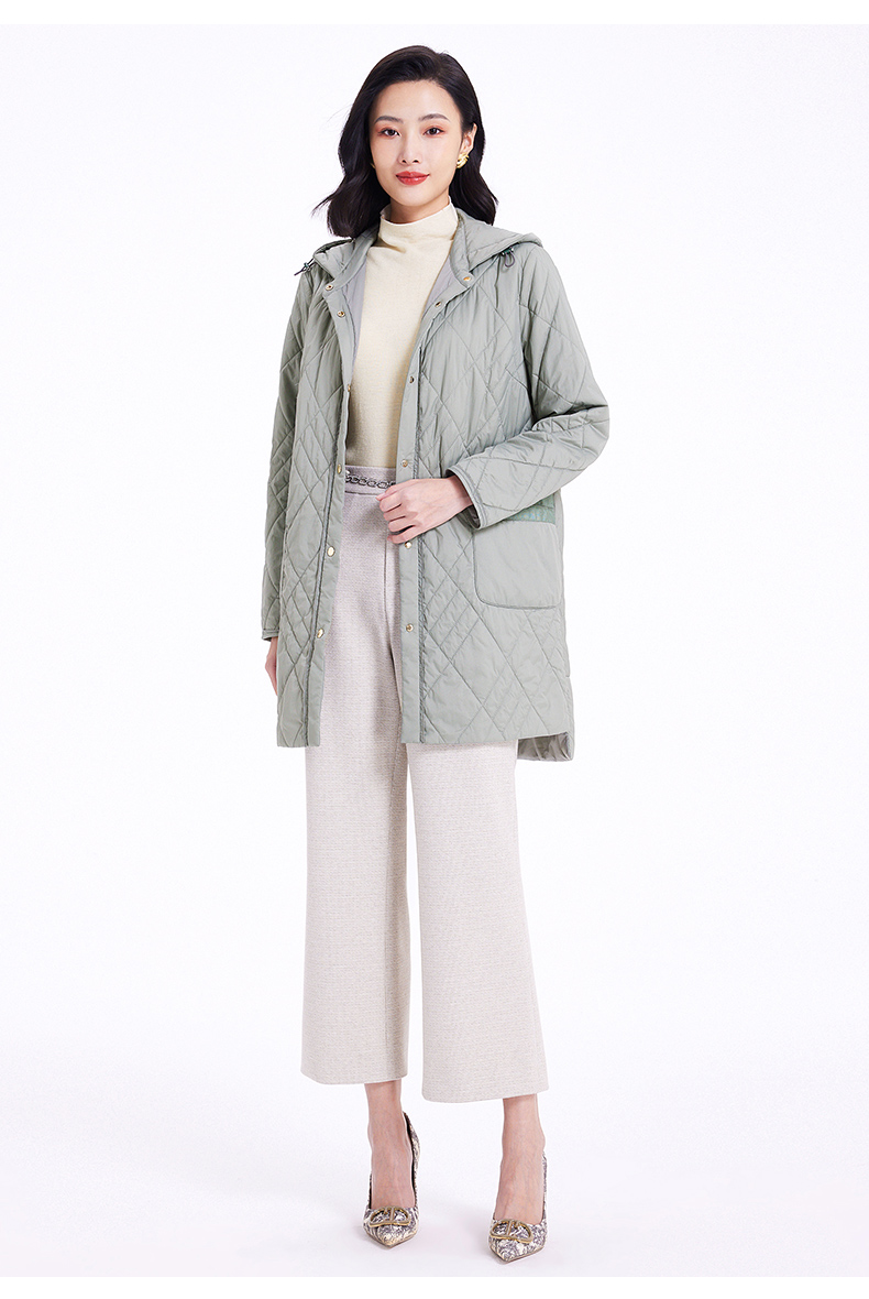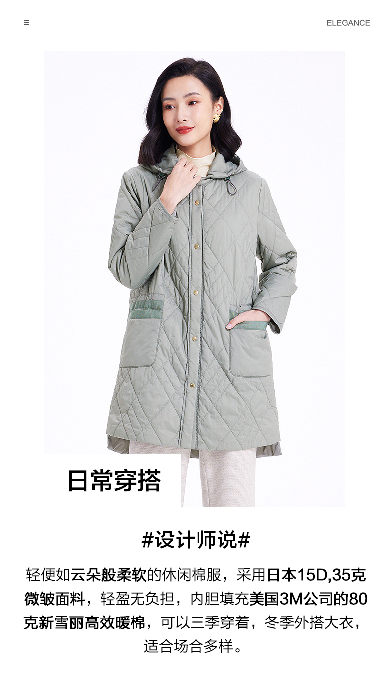 乔万尼云朵棉服女冬季新款菱格纹中长款轻盈保暖EF4T168