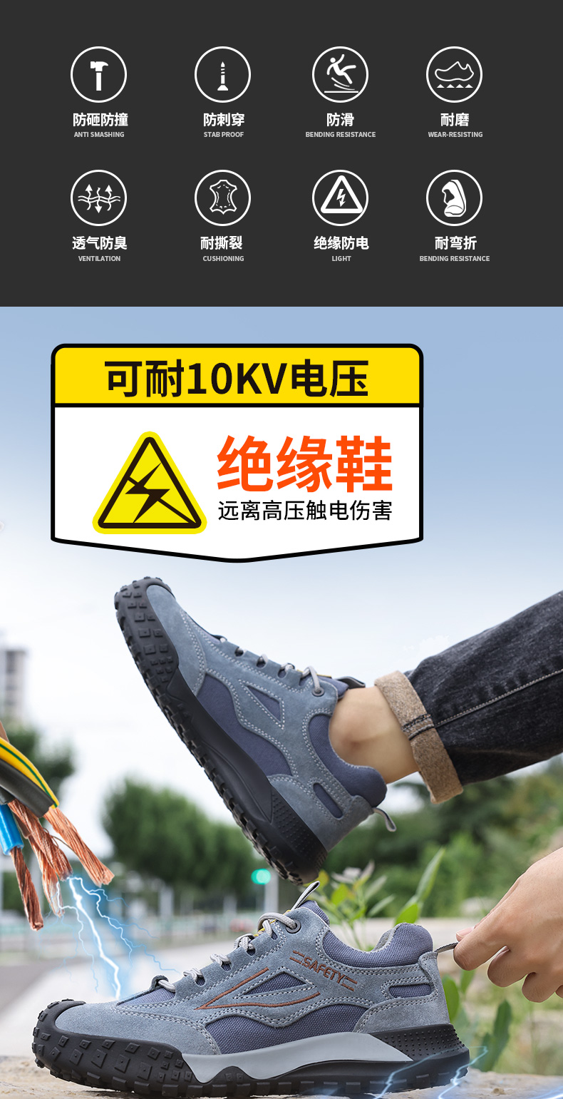 劳保鞋男防砸防刺绝缘10KV塑包头橡胶底安全鞋工作鞋