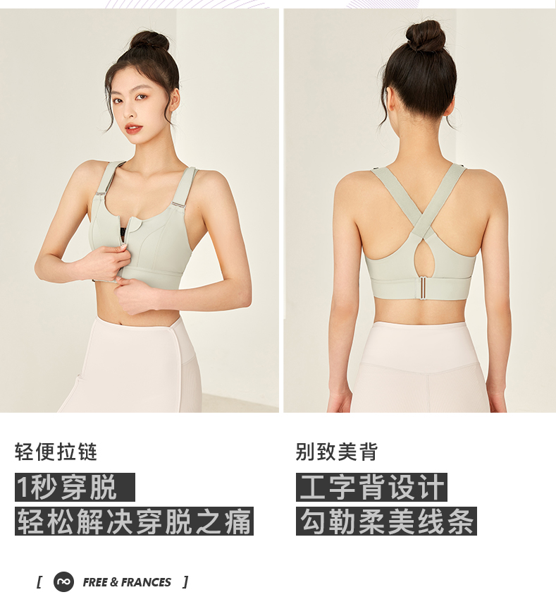 跃牌(呗咪纷纷系列)大码交叉美背魔术贴运动内衣 魔术贴文胸
