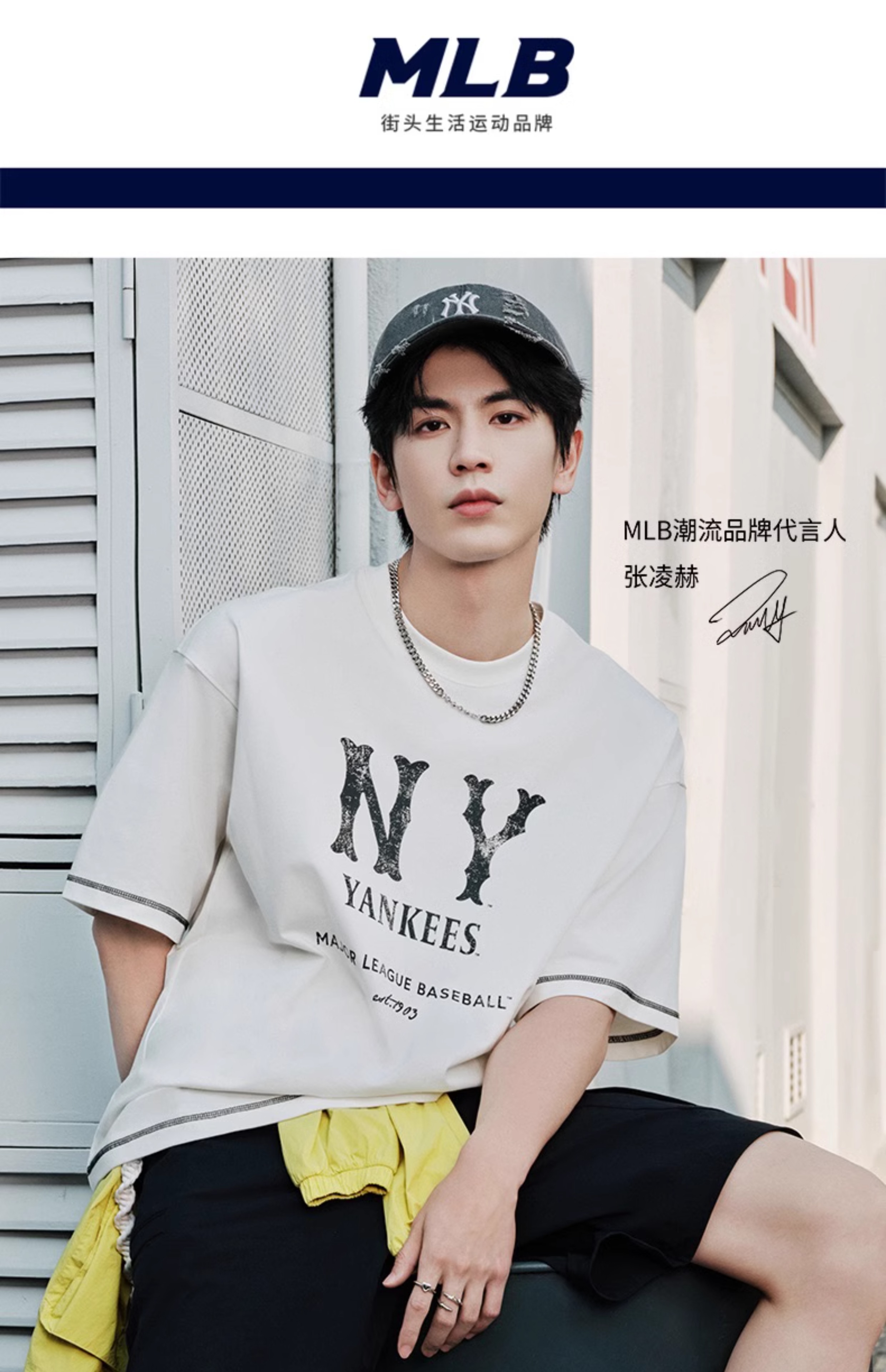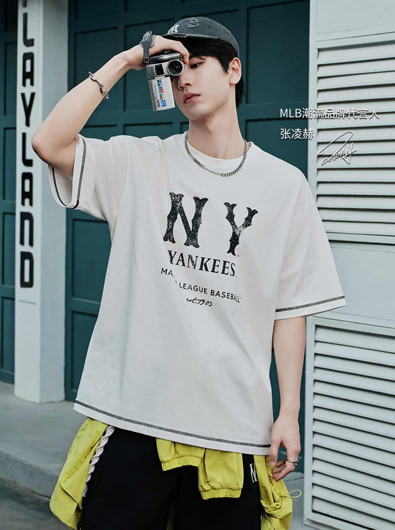 MLB张凌赫同款男女复古COOPERS凉感防晒T恤25夏季新款3ATSB1153