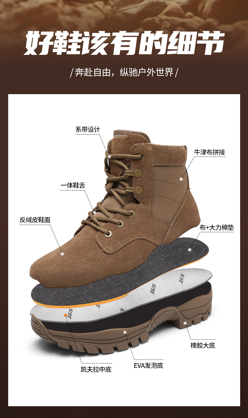【凯夫拉防穿刺 防风阻沙一体鞋舌】强人3515户外训练越野登山战术靴